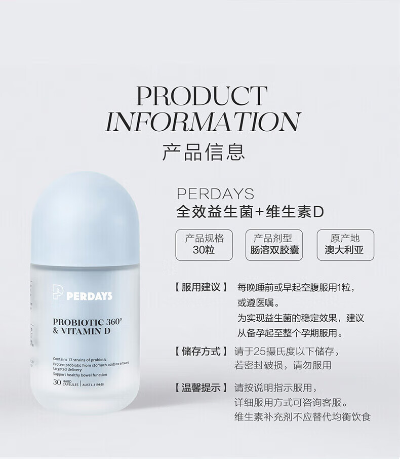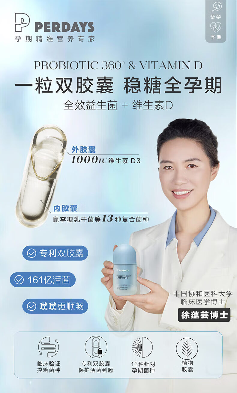 PERDAYS孕期/孕妇控糖益生菌 增强免疫 调理肠道菌群改善胀气便秘30粒