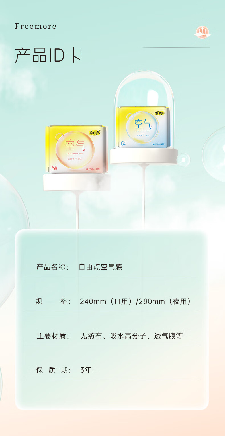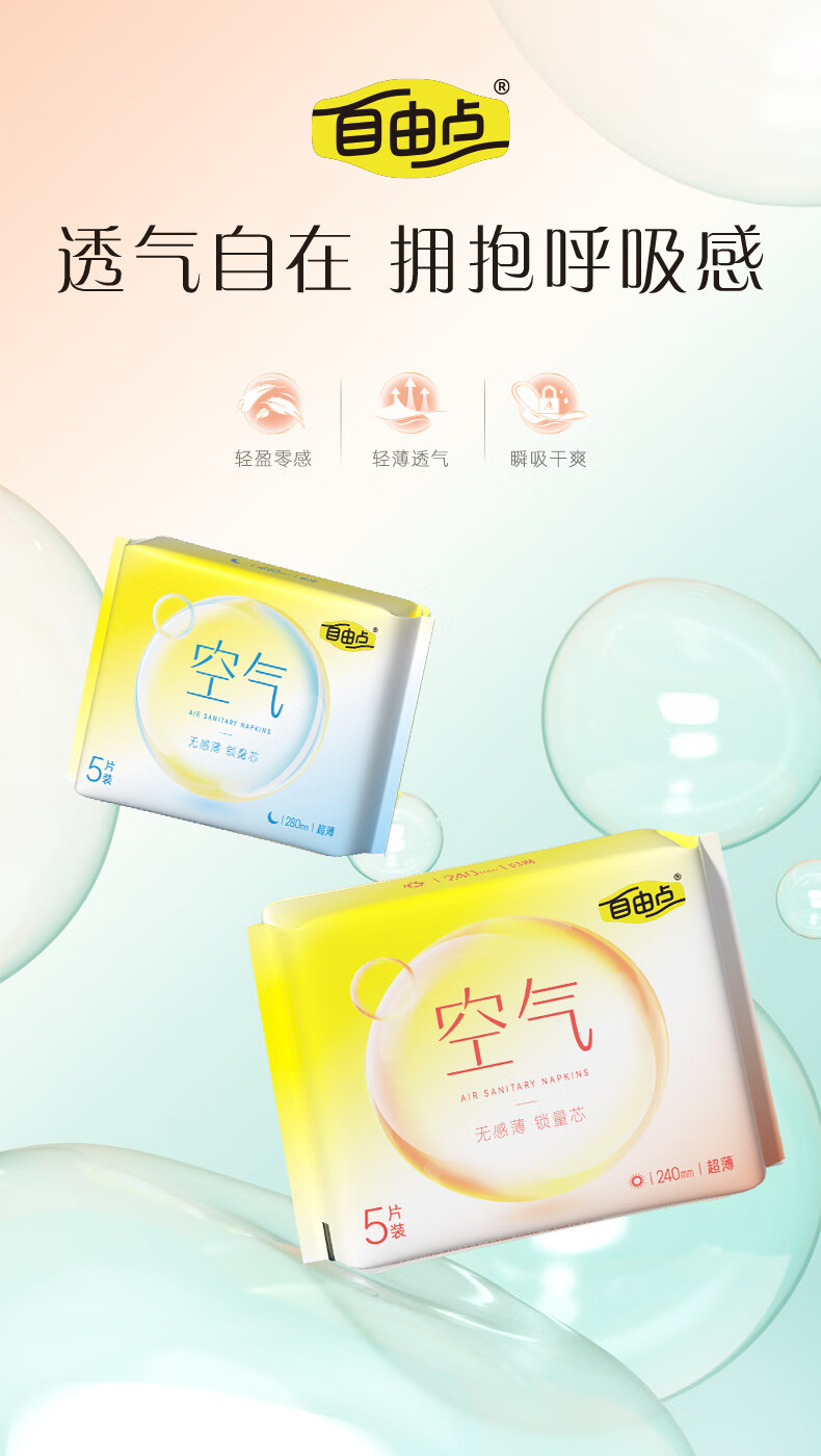 自由点空气系列卫生巾 超薄透气日夜组合姨妈巾组合【安心品质】 日夜组合13包98片