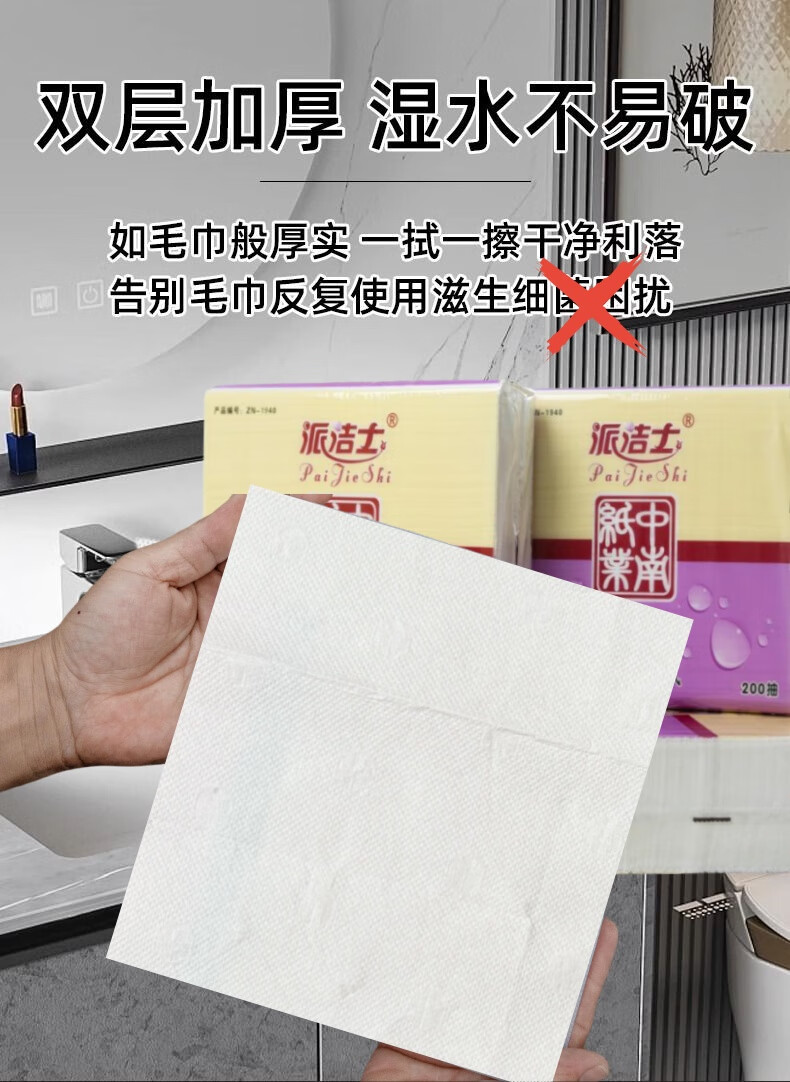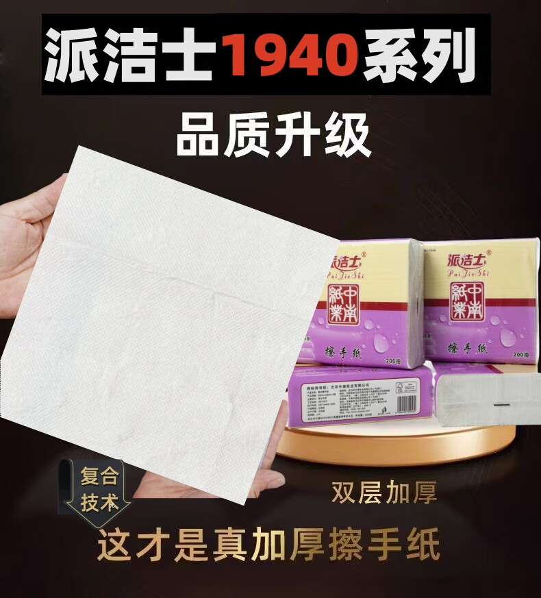 派洁士双层复合擦手纸办公桌办公室银行专用纸巾厕纸吸水吸油厕所纸 20包派洁士1940【4000抽】