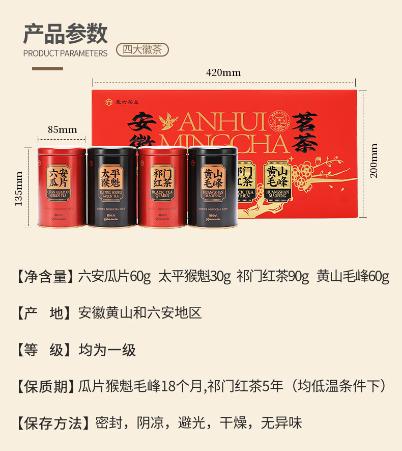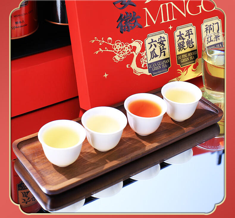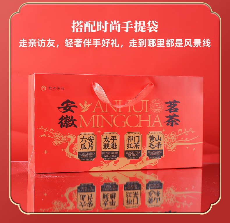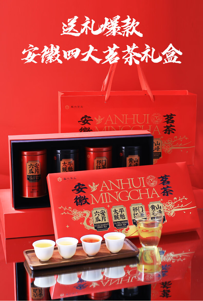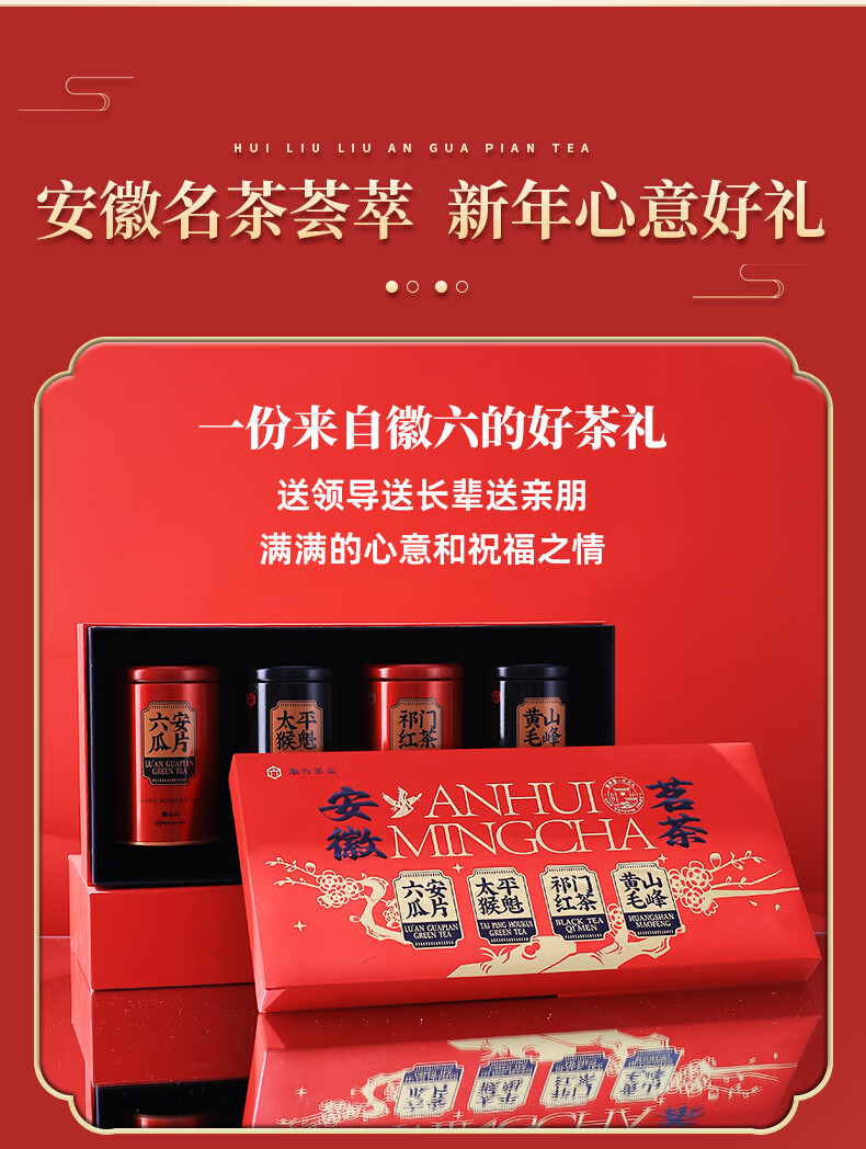 徽六绿茶六安瓜片太平猴魁黄山毛峰祁门红茶 2025年货节礼盒240g