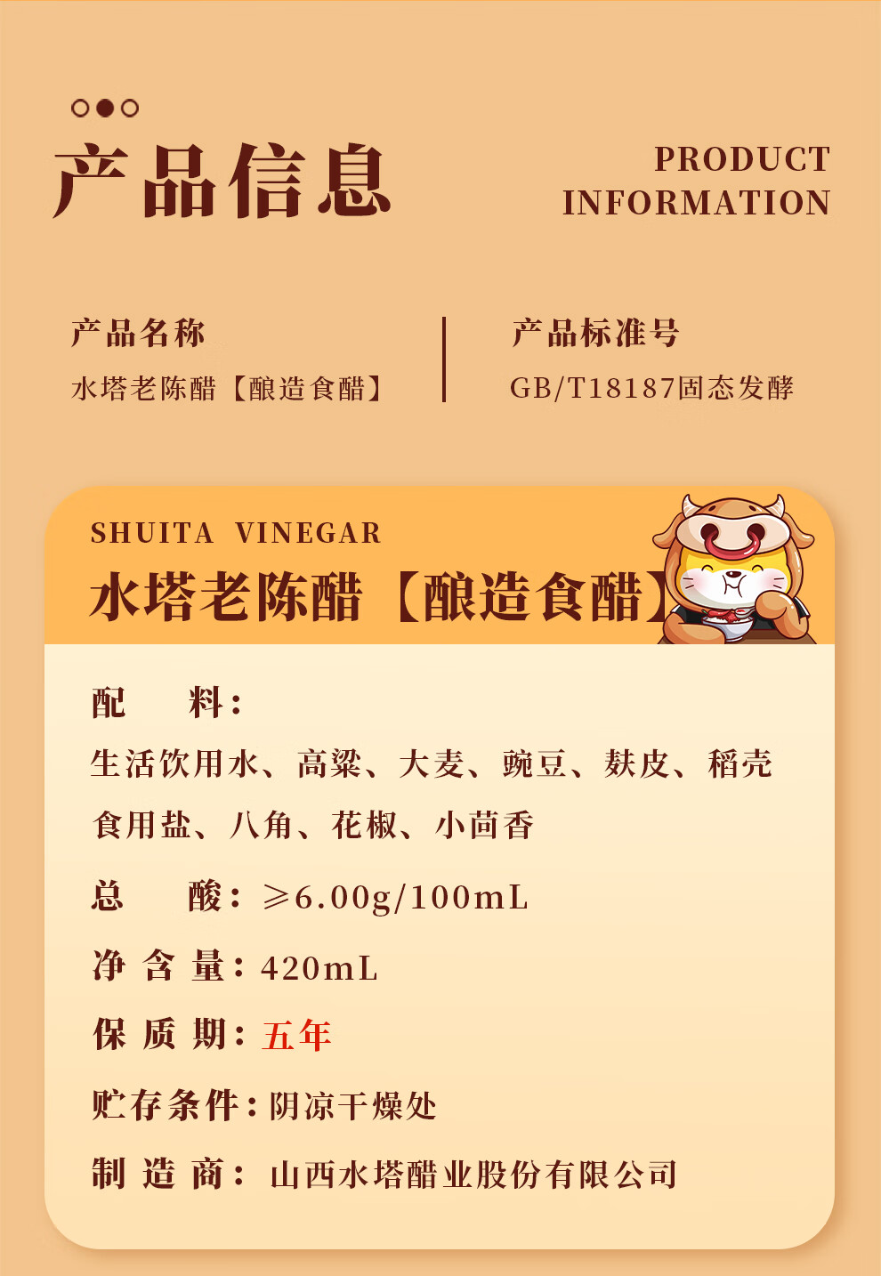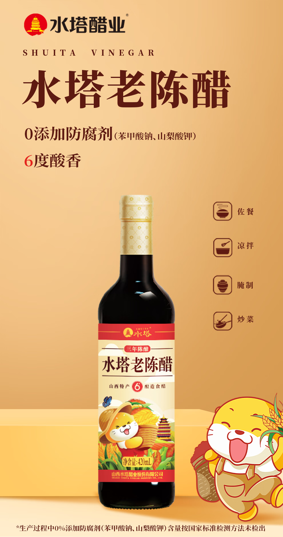 水塔老陈醋6度420ml【3陈酿 山西醋】家用食醋凉拌调味饺子蘸料
