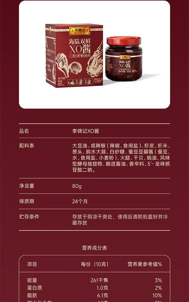 李锦记 海陆双鲜XO酱80g 三重口感 嚼出惊喜 干贝火腿褐虾海鲜 京东专供