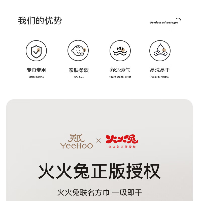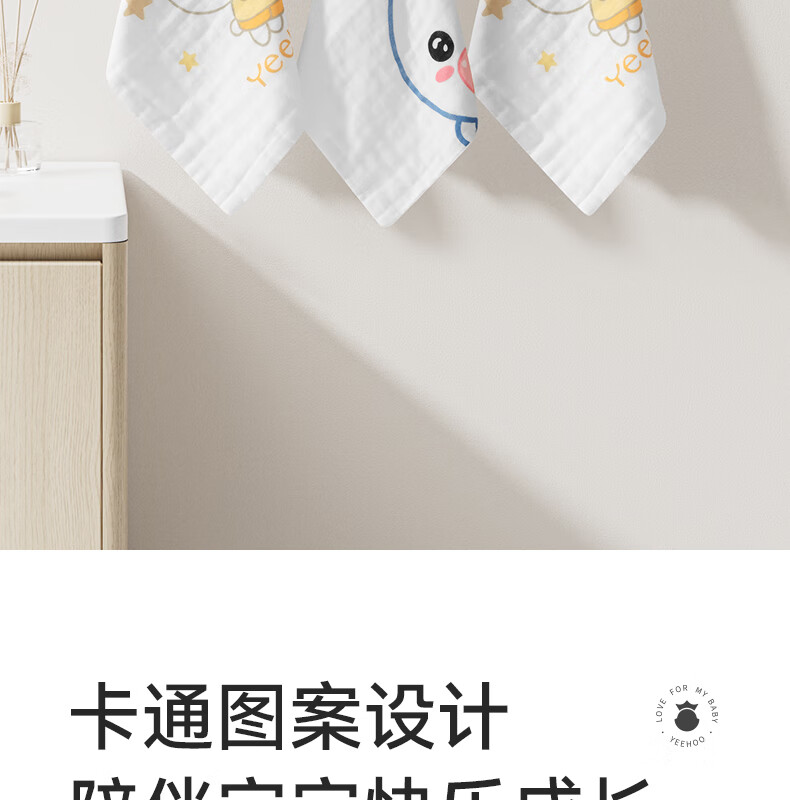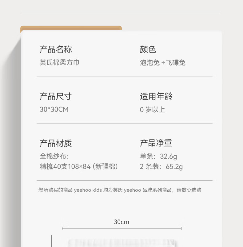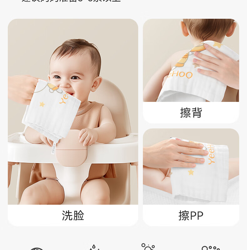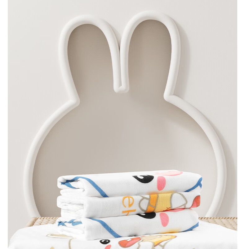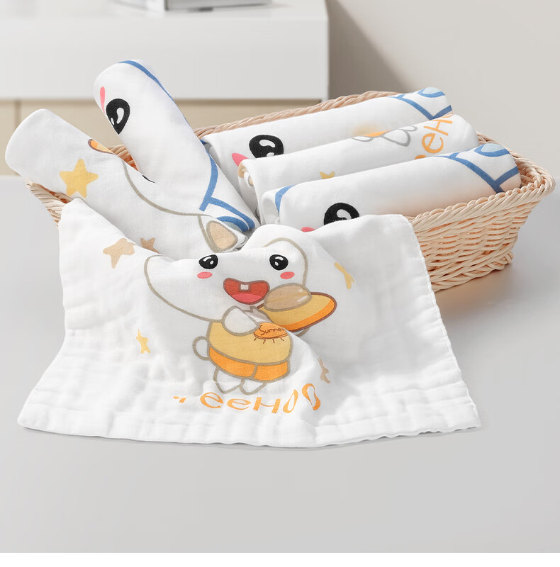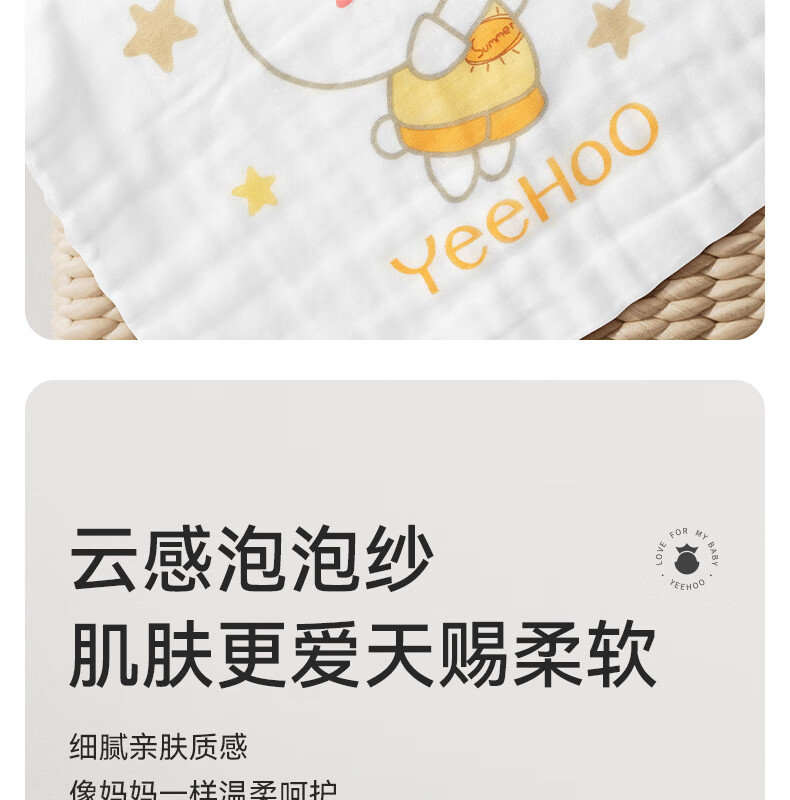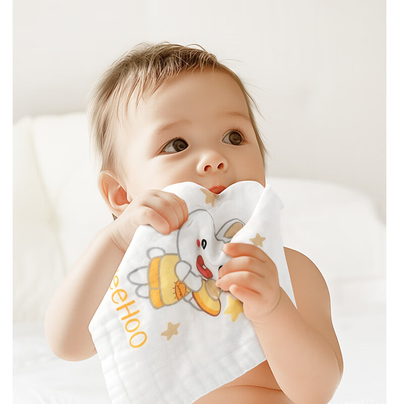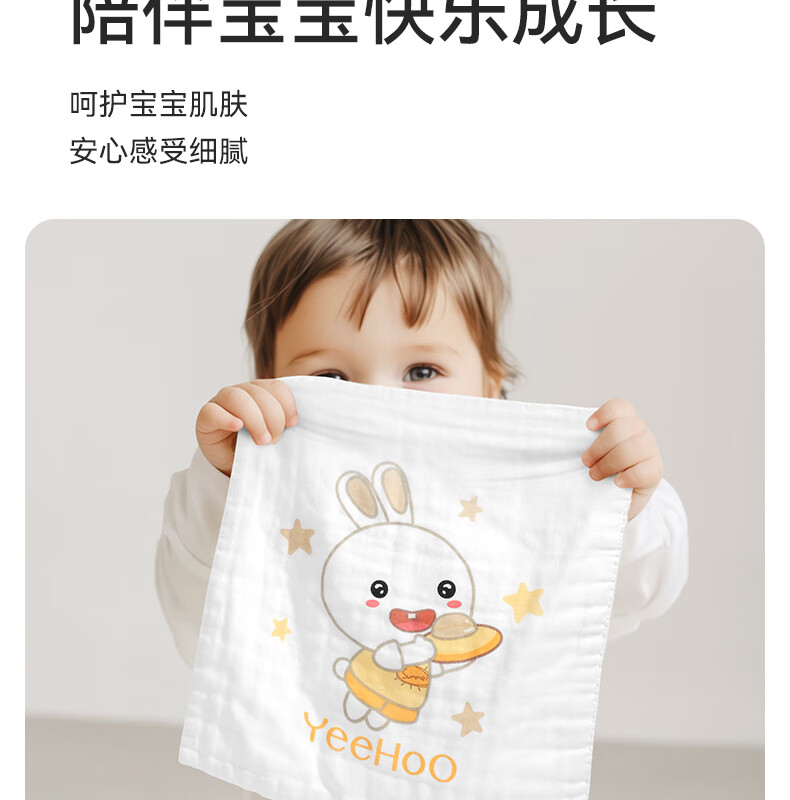 英氏(YEEHOO)婴儿口水巾新生儿纯棉超软小方巾宝宝专用洗脸巾儿童纱布毛巾 开心兔+泡泡兔【2条装】