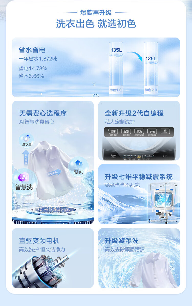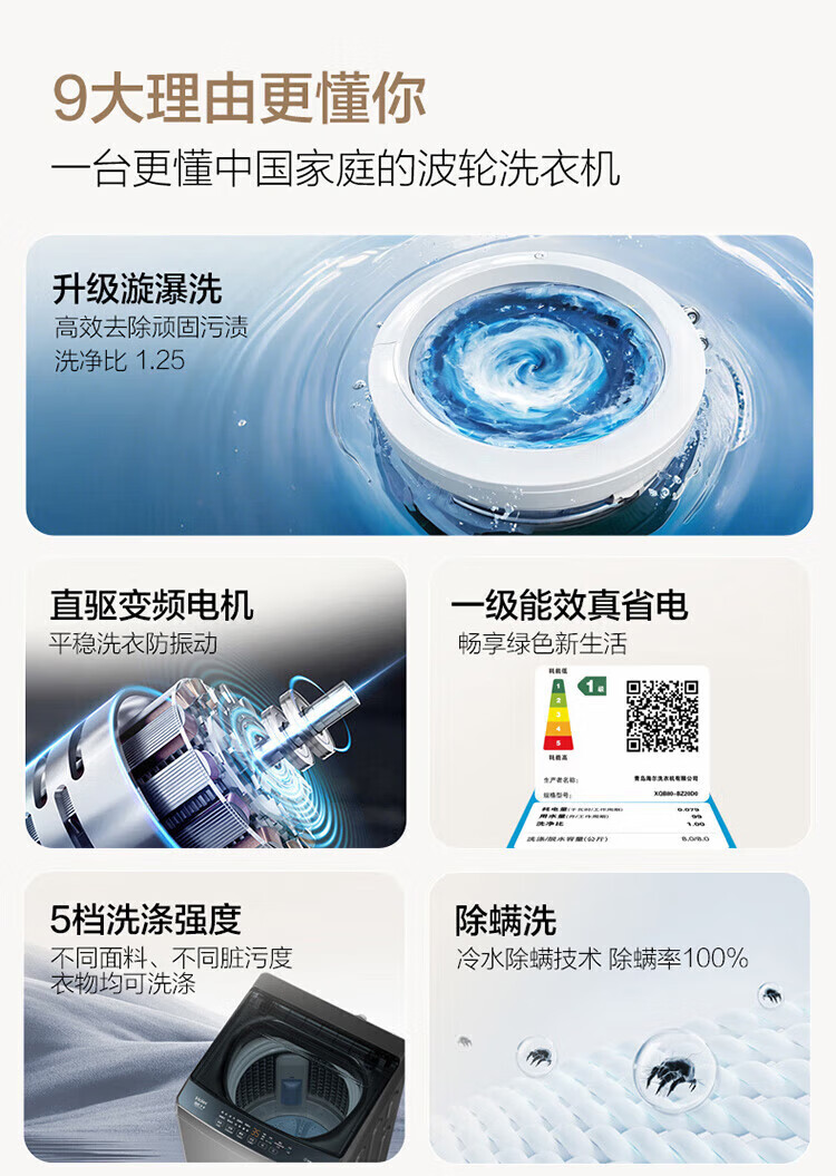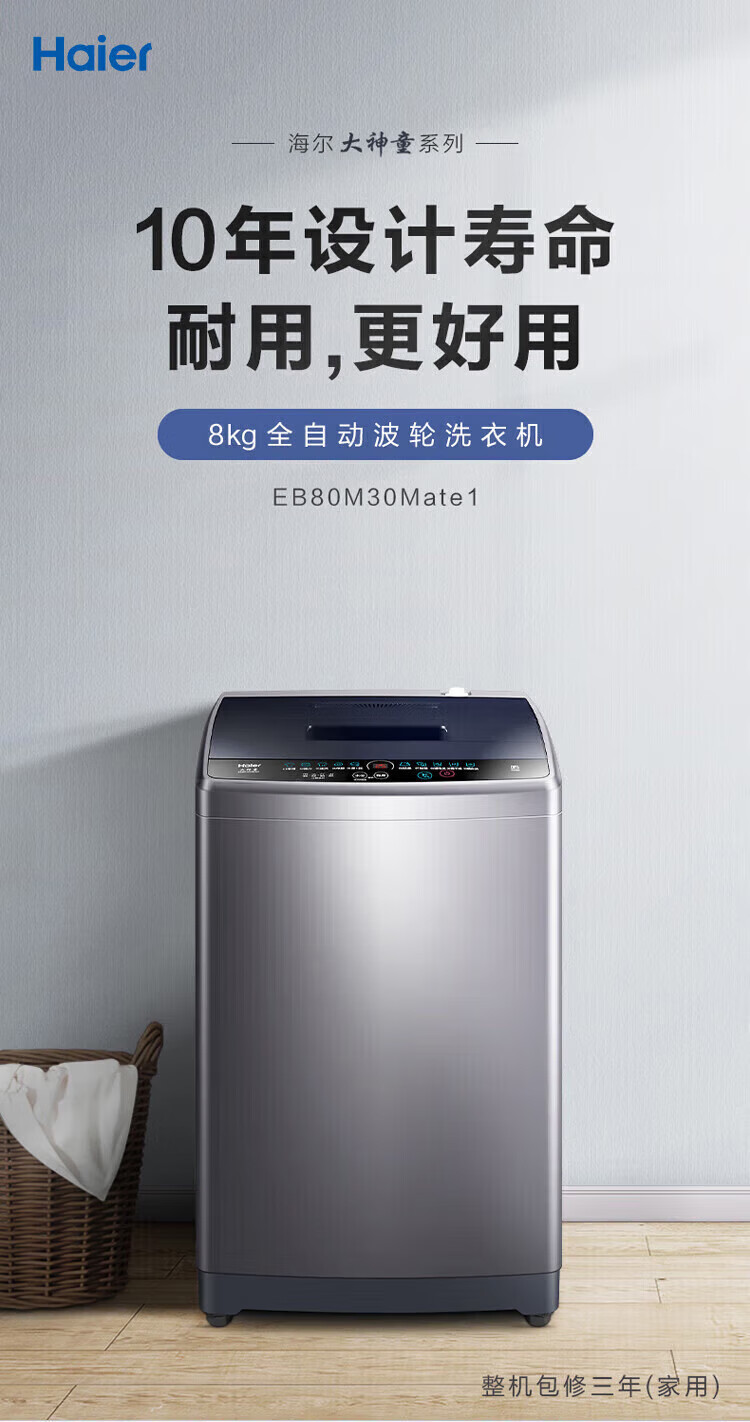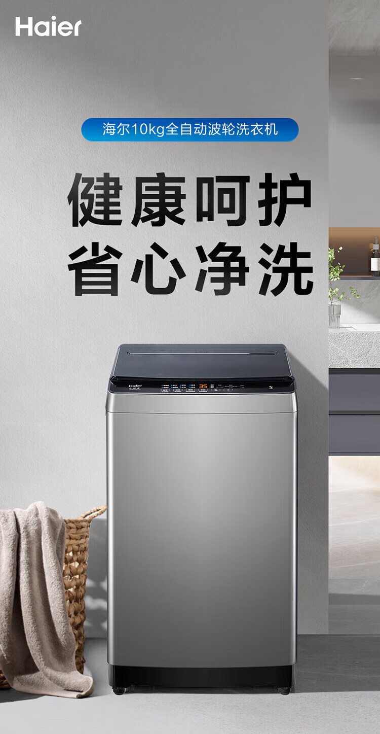 海尔(Haier)波轮洗衣机全自动国家补贴 7/8/10公斤小型一体机家用宿舍出租房内衣内裤袜子机 以旧换新家电 10KG畅销款+冷水除螨 波轮 -Z33Mate1