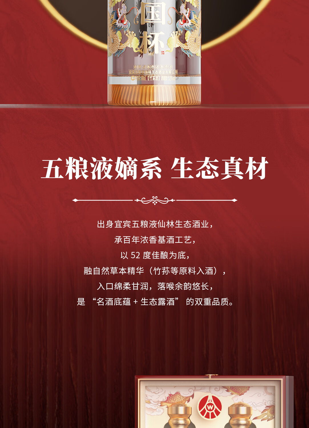 五粮液仙林生态出品 收藏赠礼年货佳品 52度 500mL 2瓶 国杯 龙纹 双瓶礼盒装