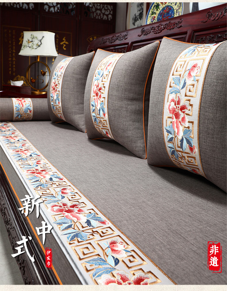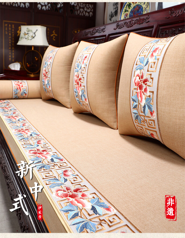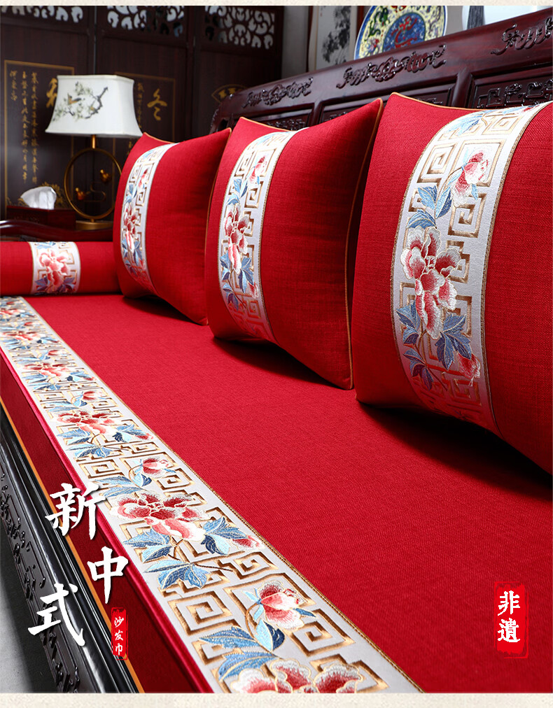 大唐梦沙发巾高级感2026新款一整张全盖红色盖布客厅喜庆结婚沙发盖巾 白浅 红色【多丽丝麻/刺绣/防水/防滑】 60cm*60cm【单人坐垫/靠背巾/扶手巾】不含内芯
