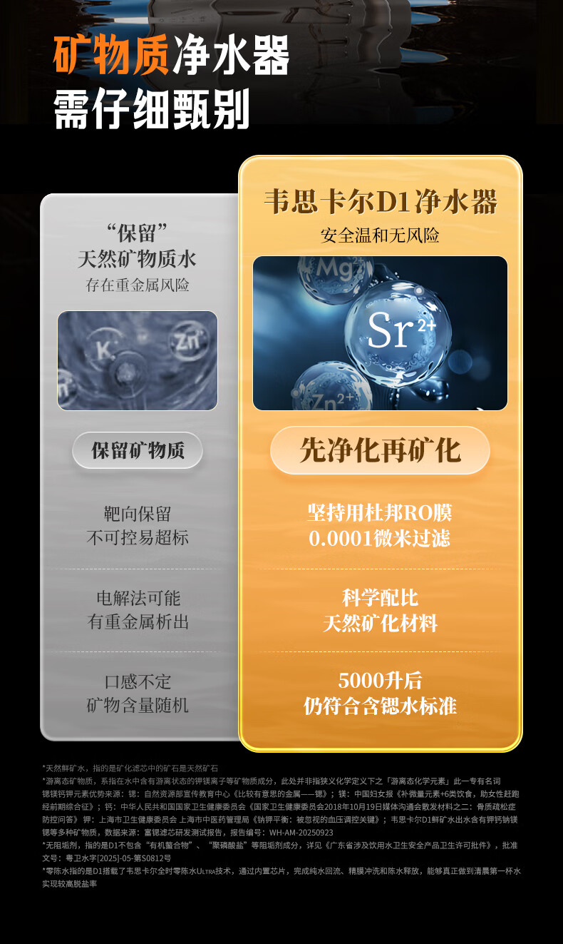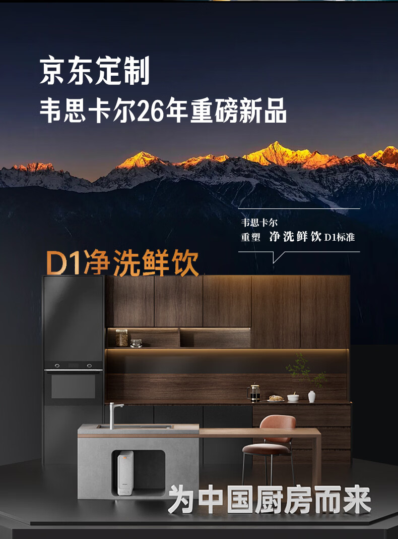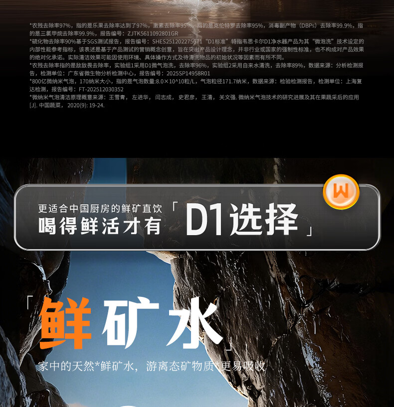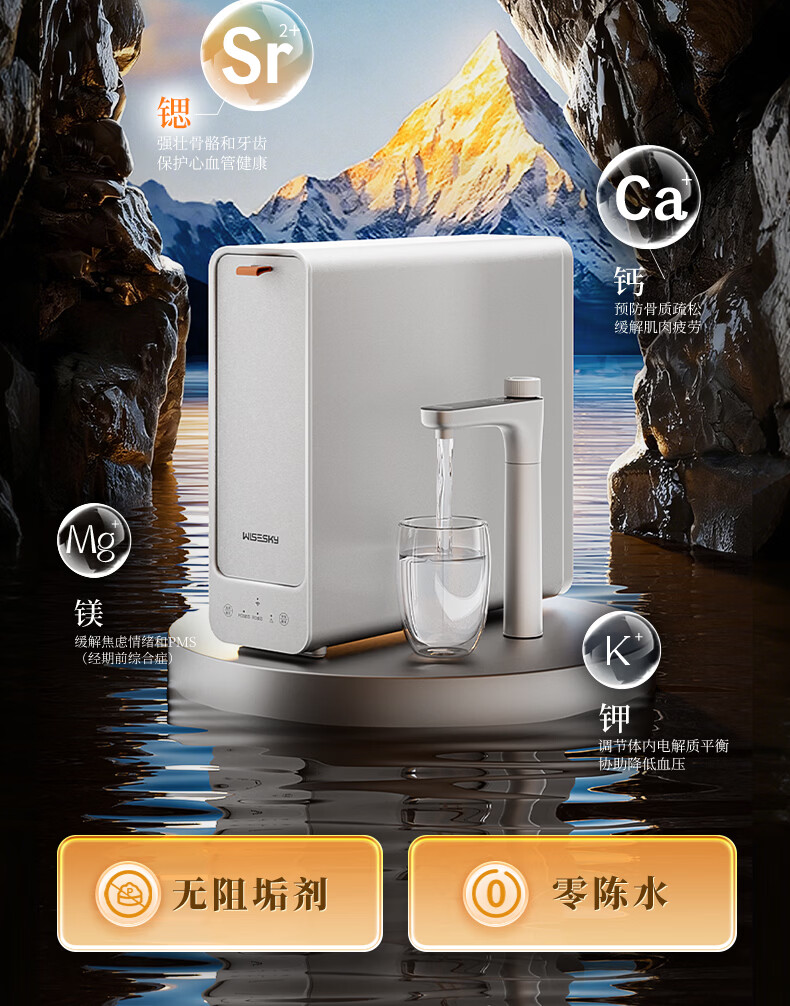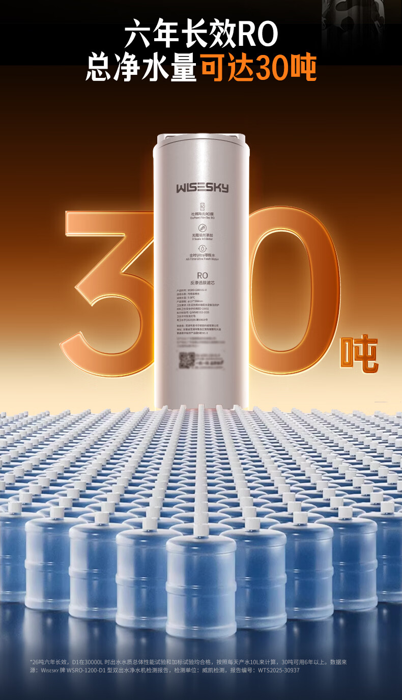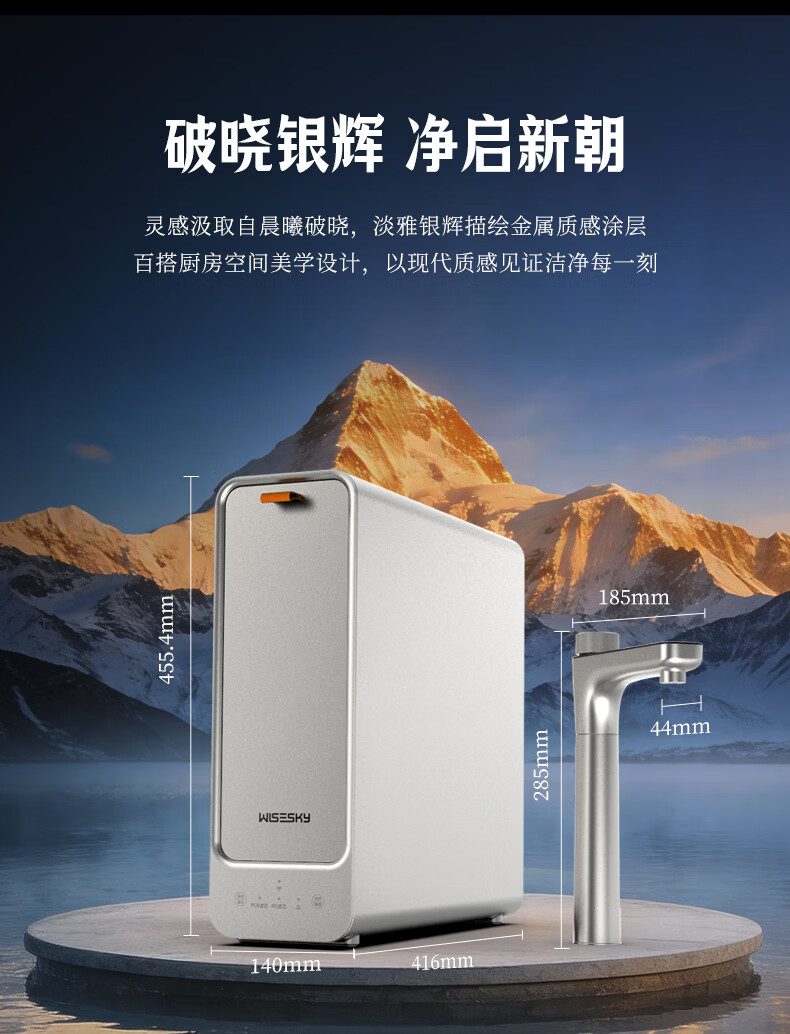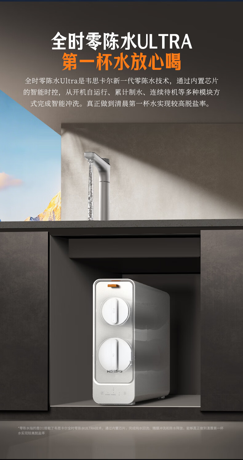 WISESKY韦思卡尔家用净水器D1双出水净矿1200G杜邦陶氏RO膜0阻垢剂破晓银