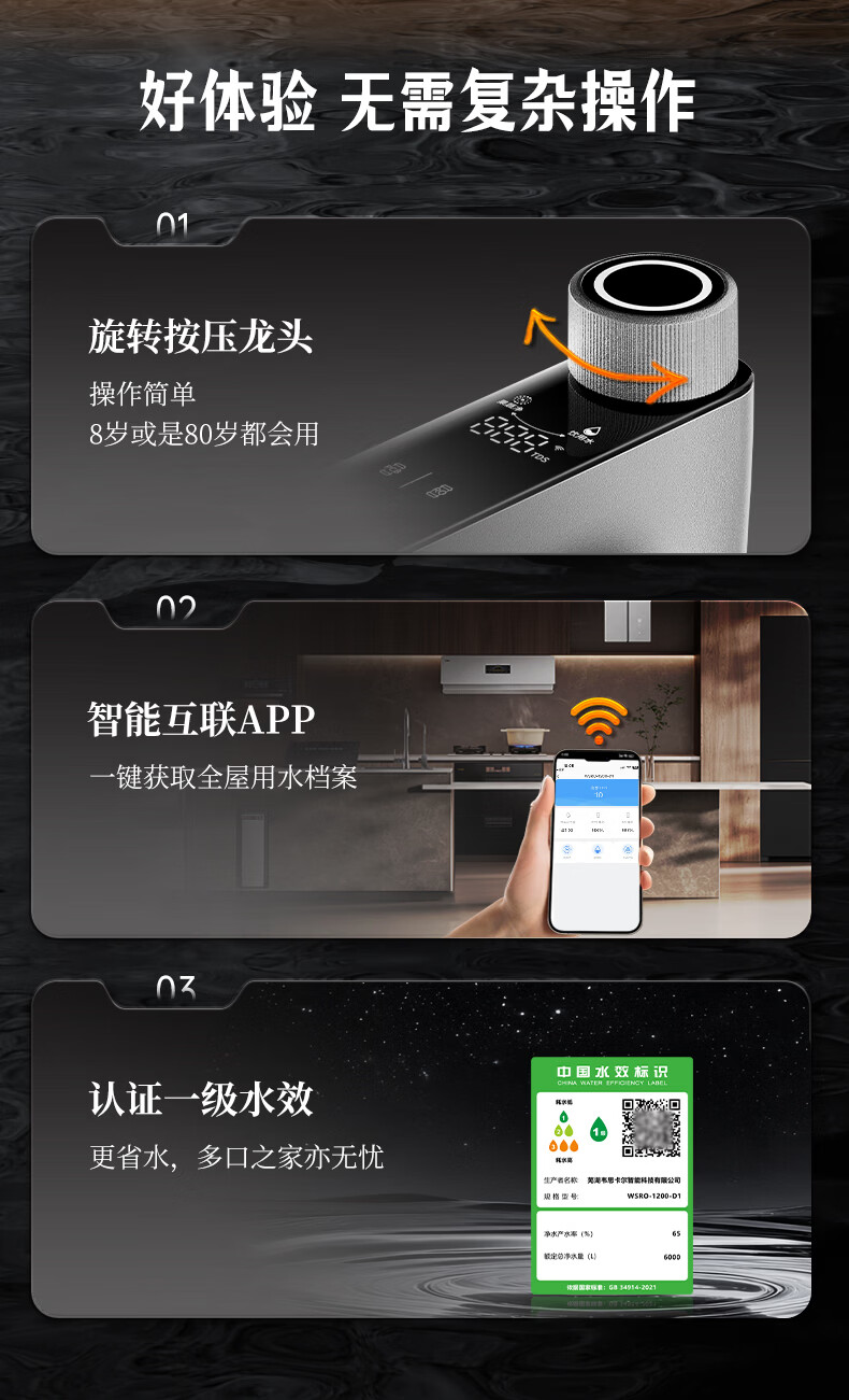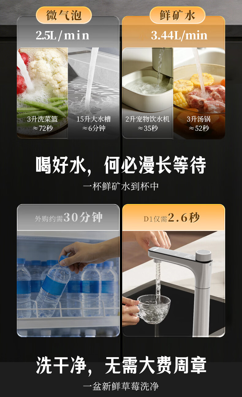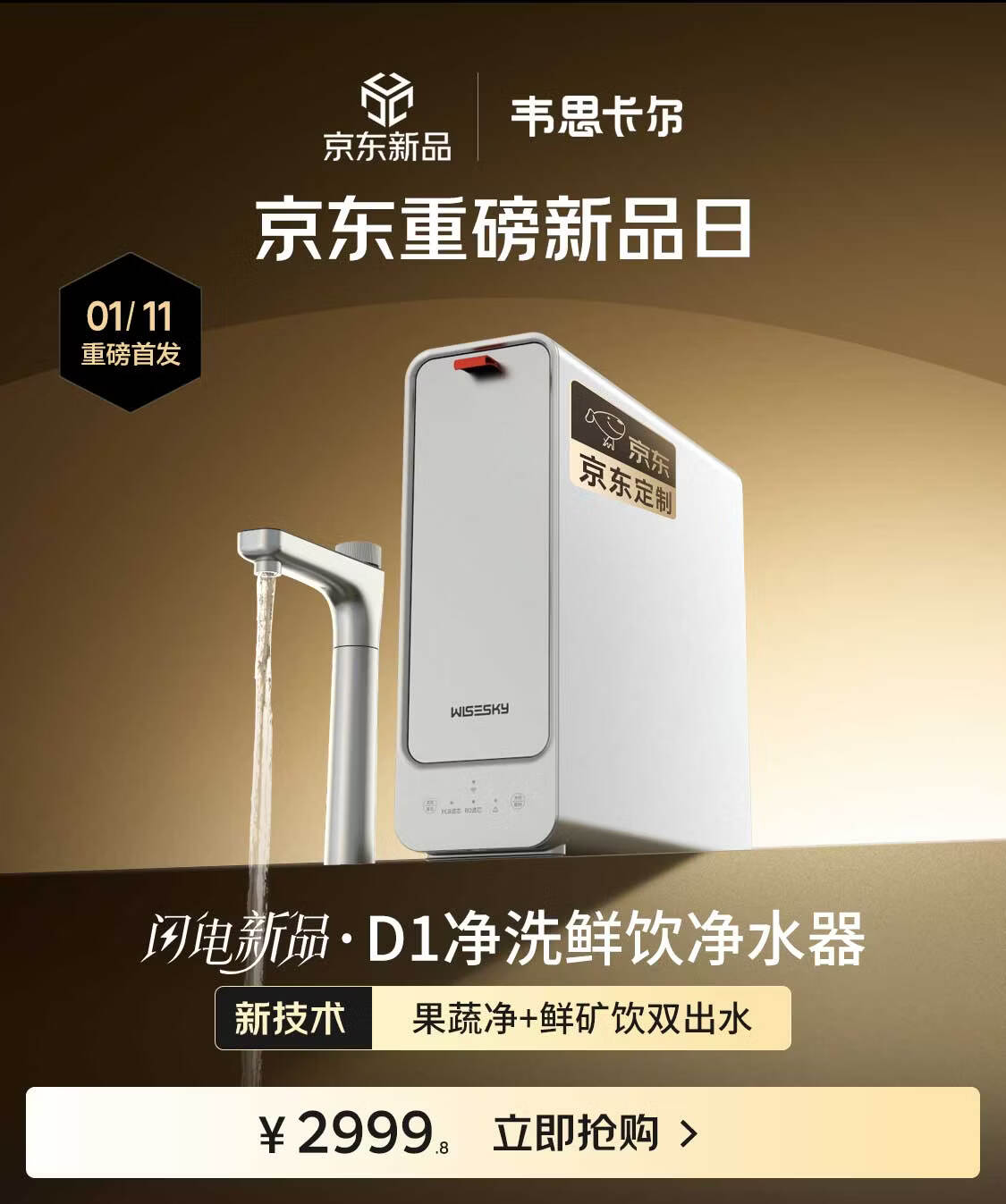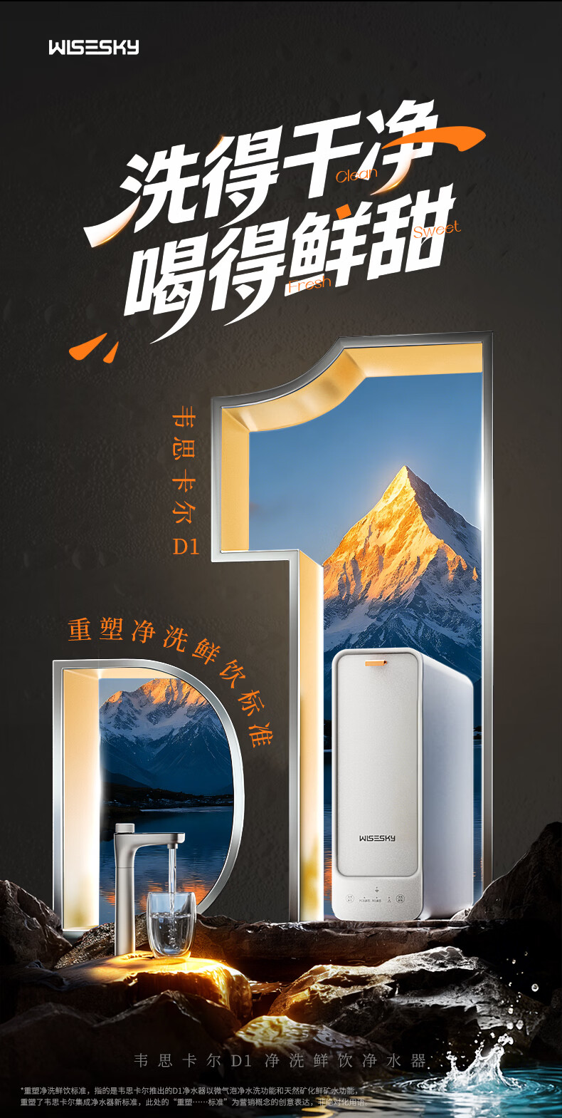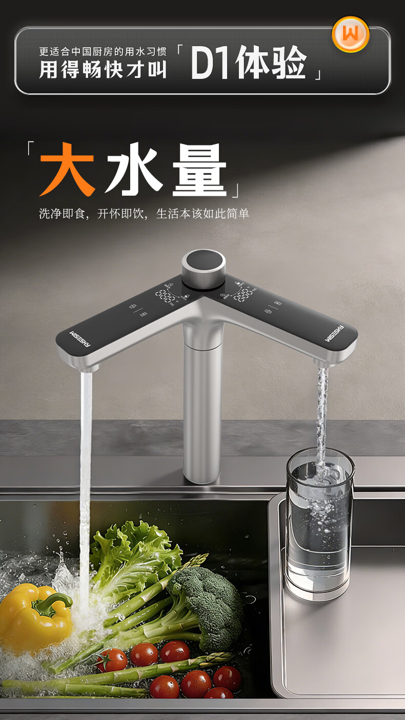 WISESKY韦思卡尔家用净水器D1双出水净矿1200G杜邦陶氏RO膜0阻垢剂破晓银