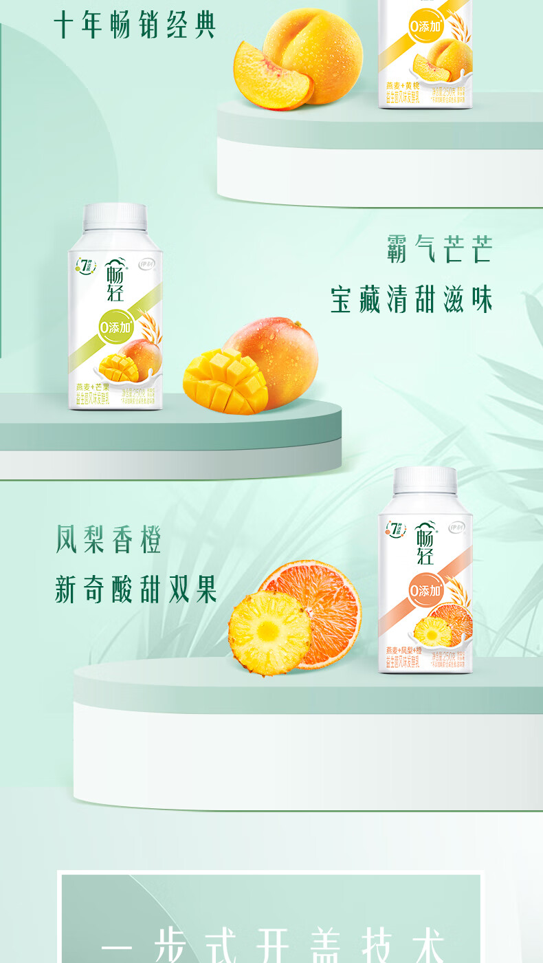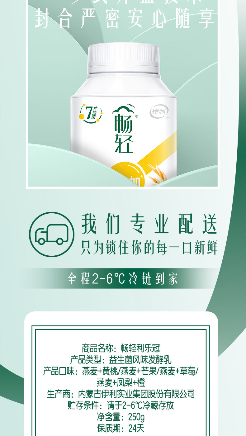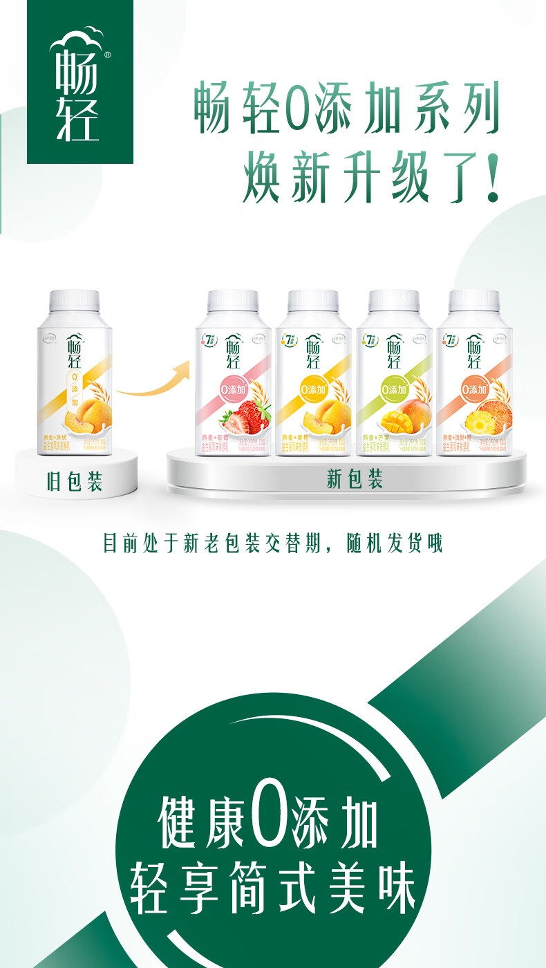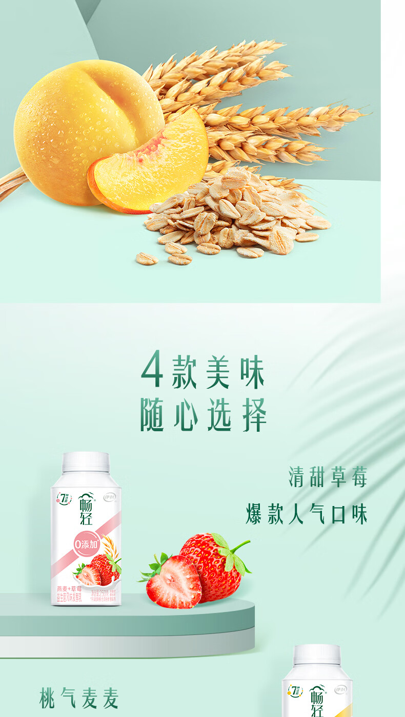 伊利畅轻低温酸奶 0添加 燕麦黄桃酸牛奶250g*4瓶 风味发酵乳