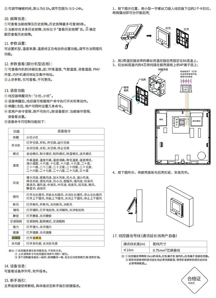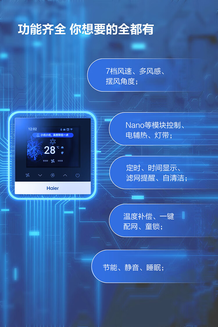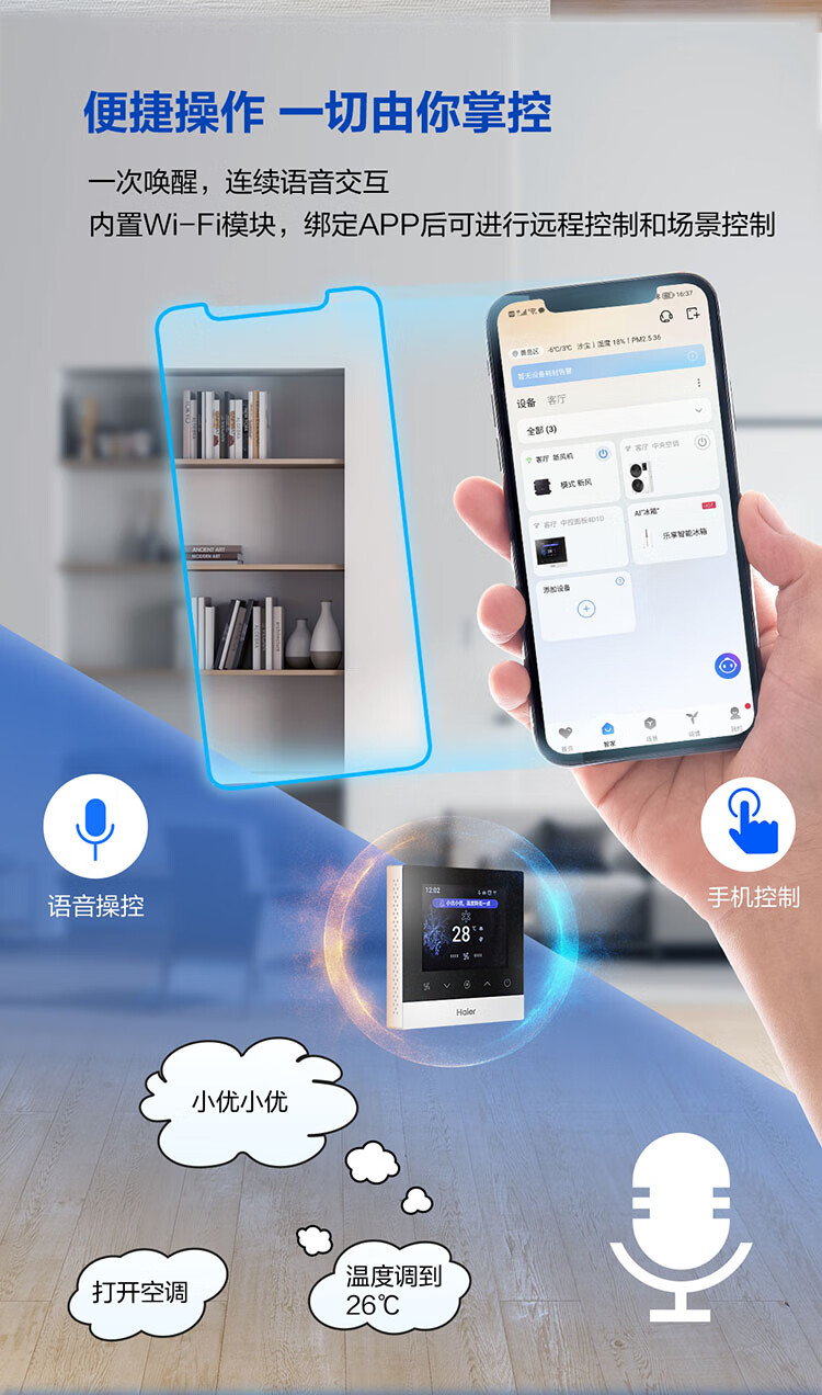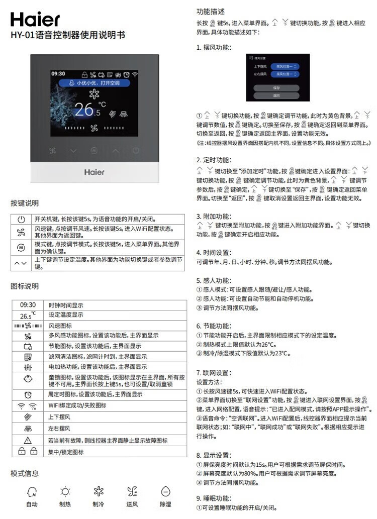 海尔中央空调配件语音线控器HY-01语音(智慧语音线控器)