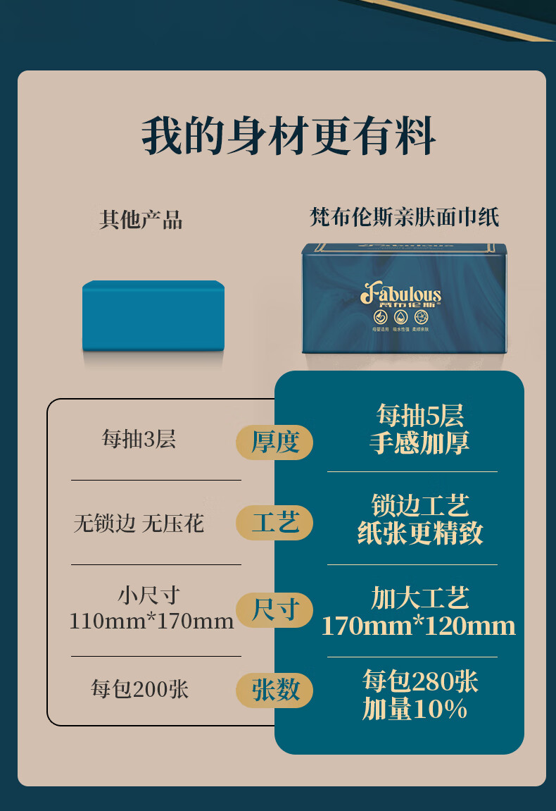 梵布伦斯抽纸家用纸巾原木母婴用餐巾纸实惠 5层 280张*6包