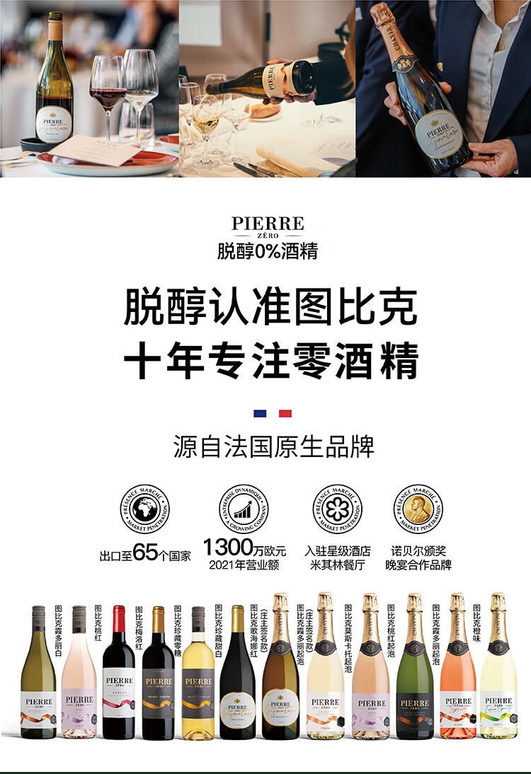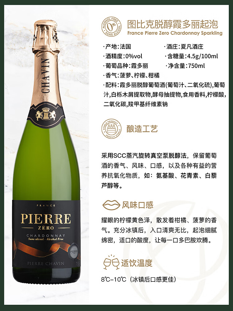 图比克法国进口霞多丽无醇起泡酒无酒精脱醇0度气泡酒750ml*2瓶礼袋装