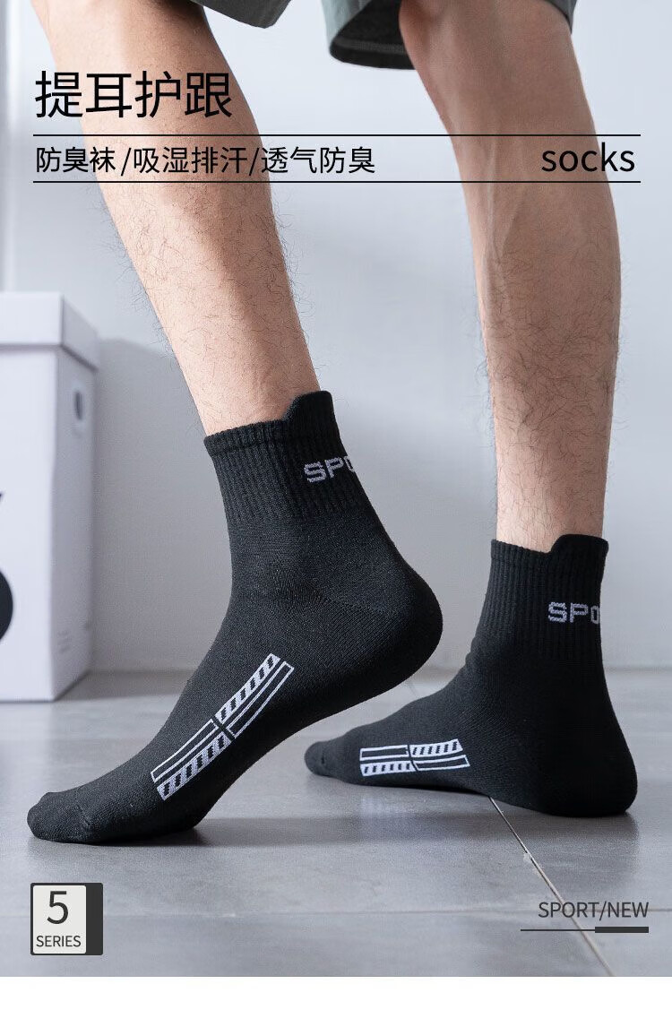 男士袜子中筒四季款防臭潮流运动休闲韩版抗菌吸汗提耳袜 24025随机1双 均码