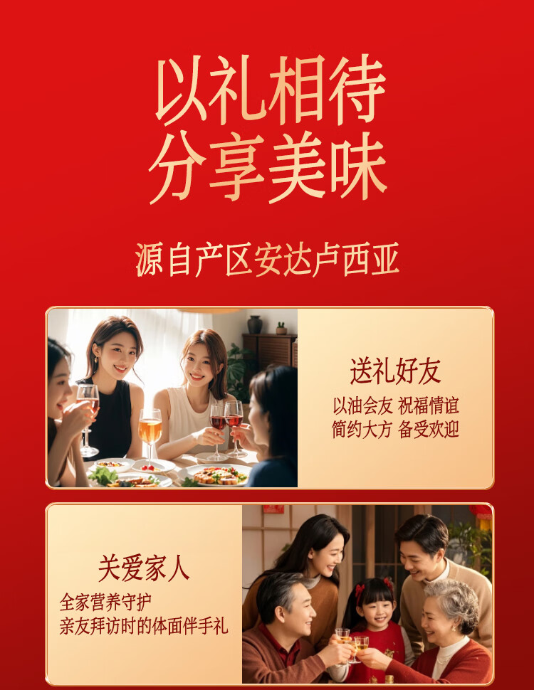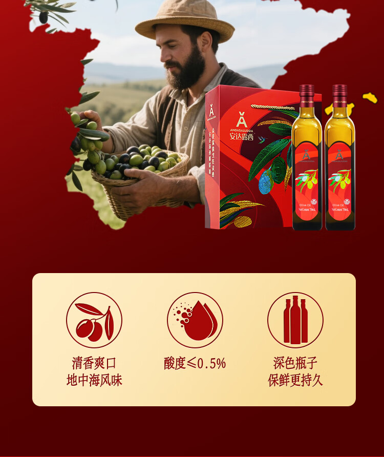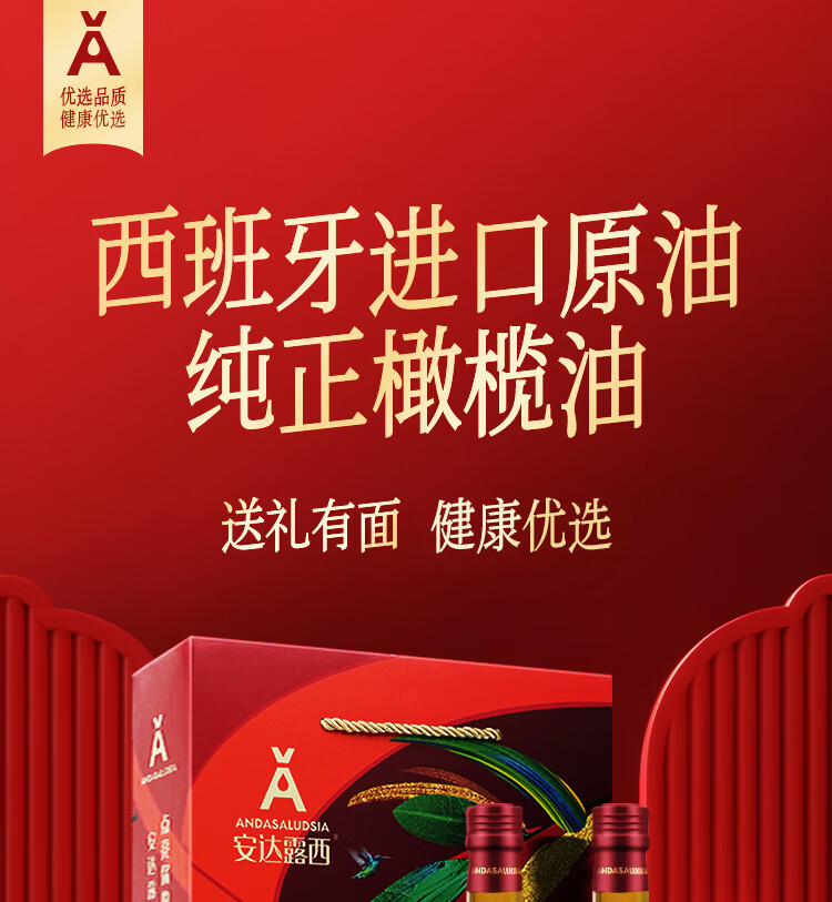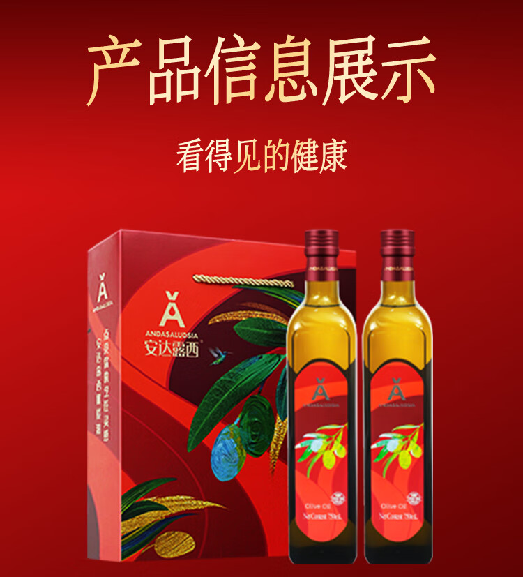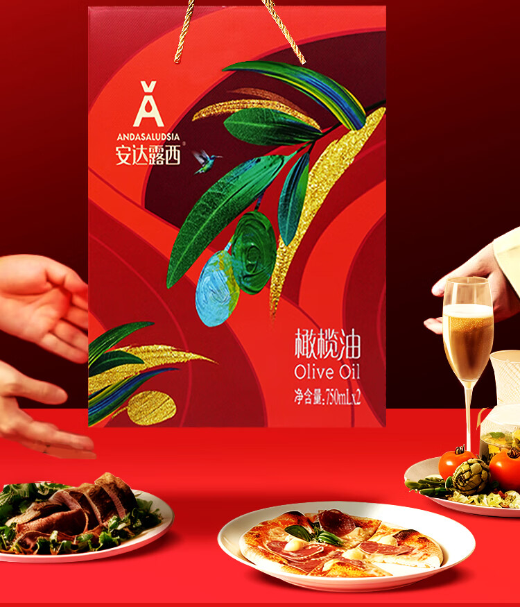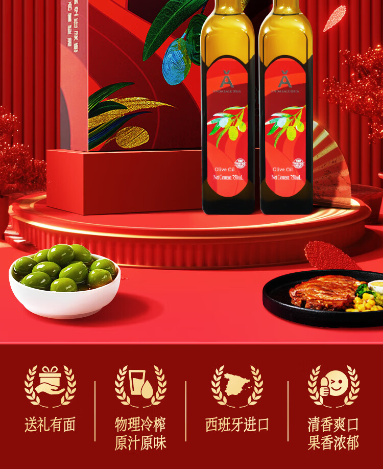 安达露西食用油进口纯正【保真】橄榄油礼盒750ML*2团购福利礼品健康烹饪