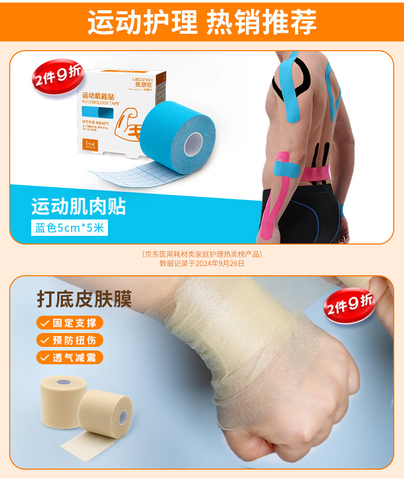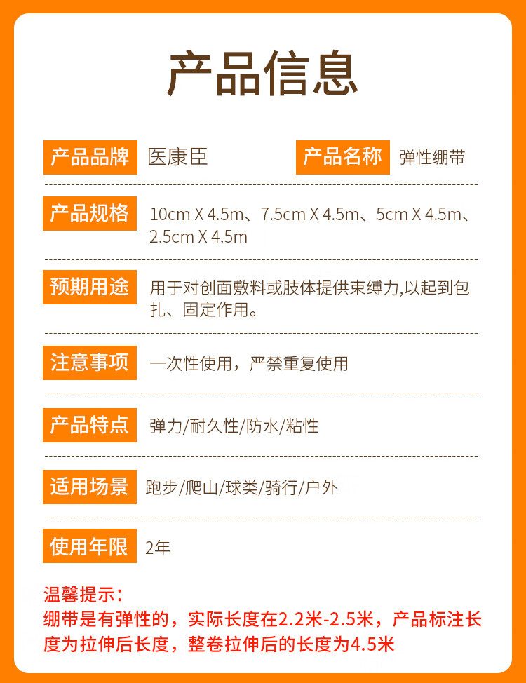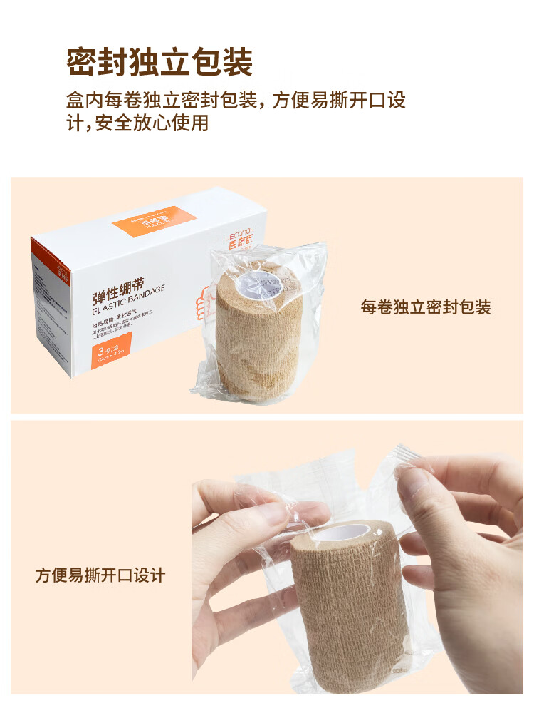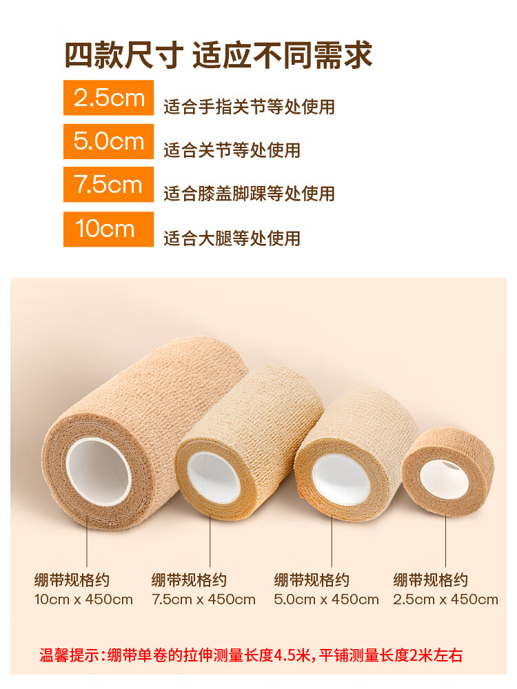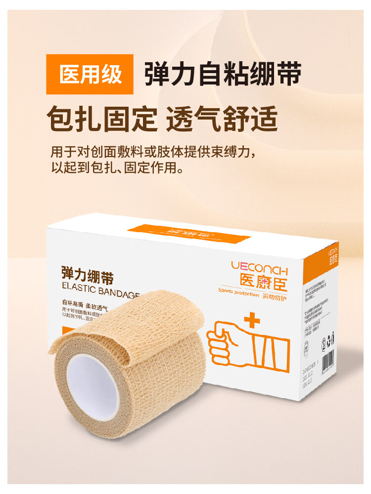 医康臣(UECONCH)自粘弹力绷带透气弹性运动绷带医用伤口包扎绑带2.5cm*4.5m3卷