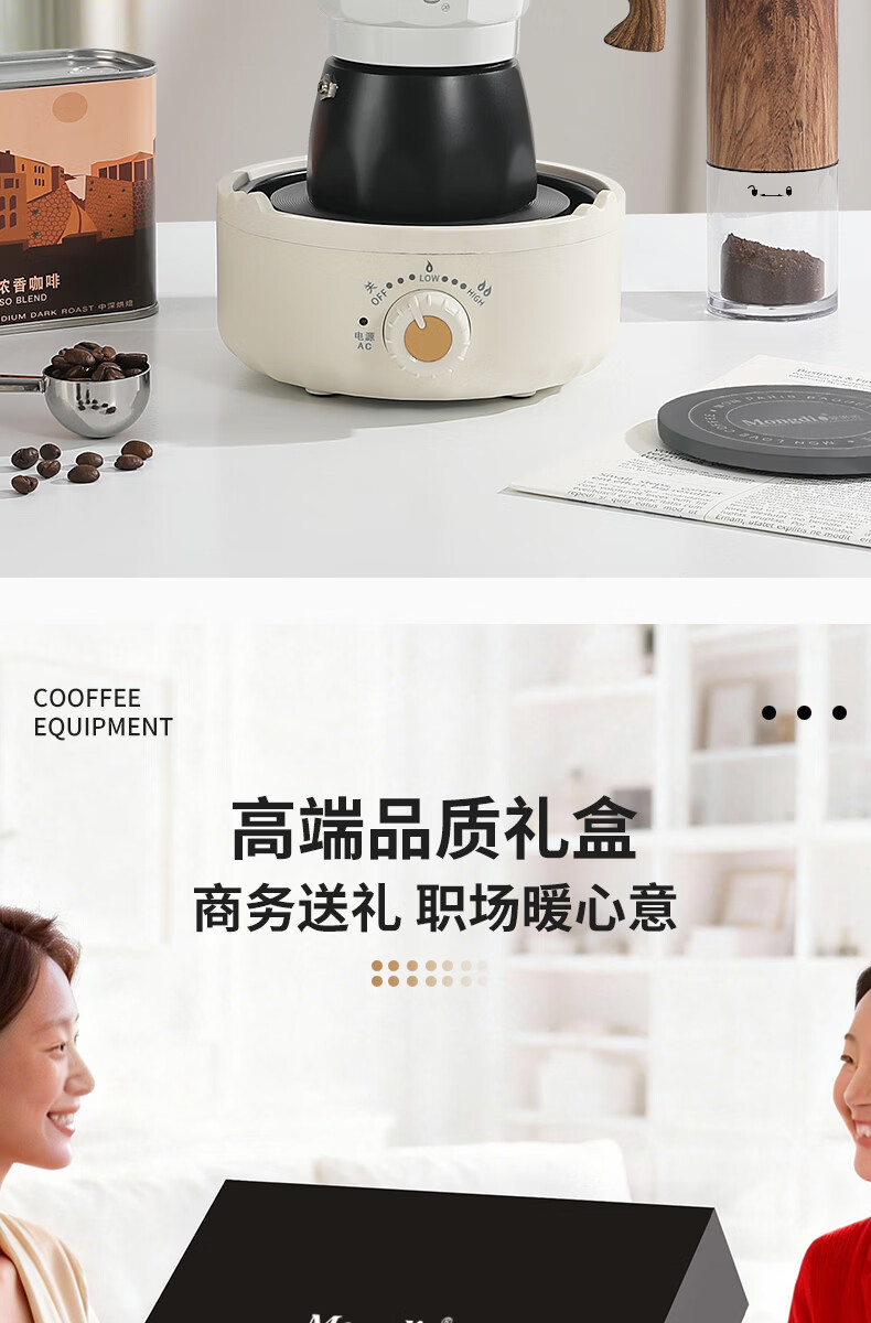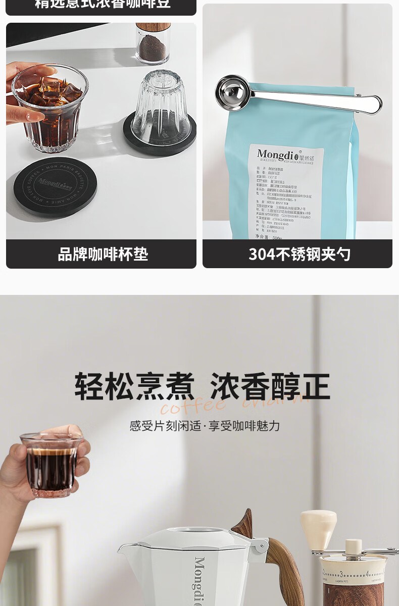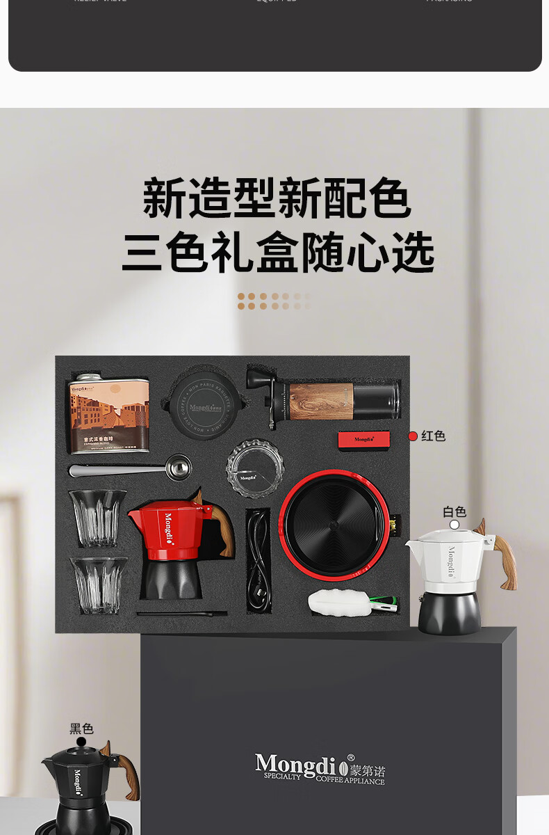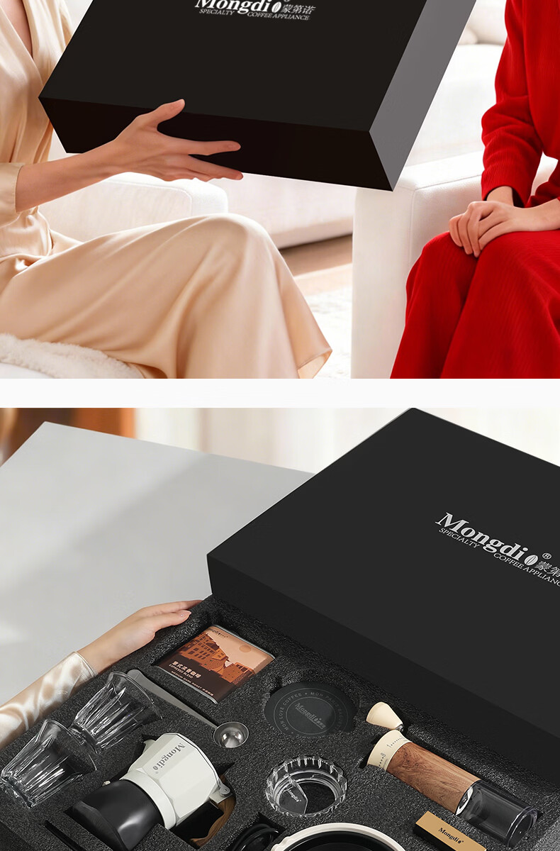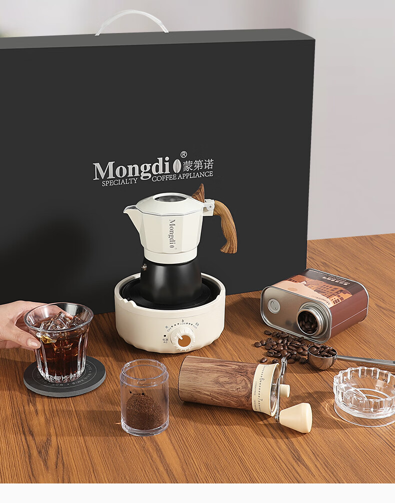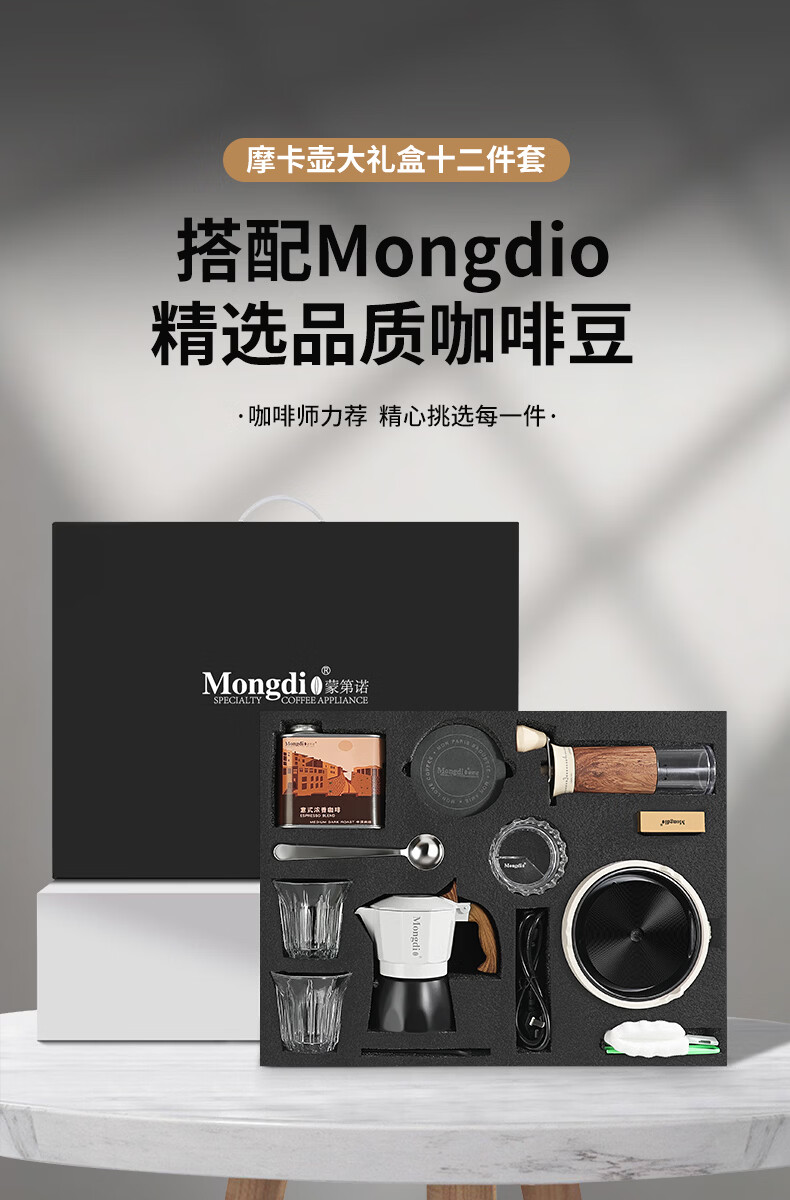 Mongdio摩卡壶礼盒手冲咖啡壶套装便携意式煮咖啡机生日礼物节日伴手礼 摩卡壶大礼盒黑色12件套-精选意式咖啡豆