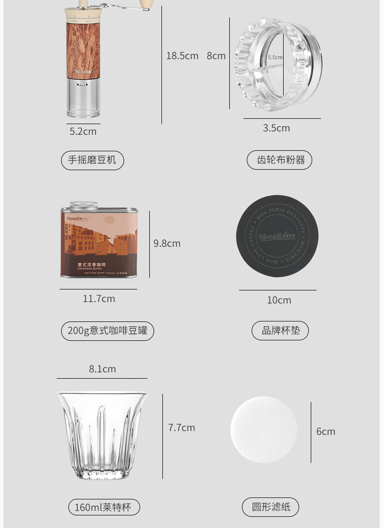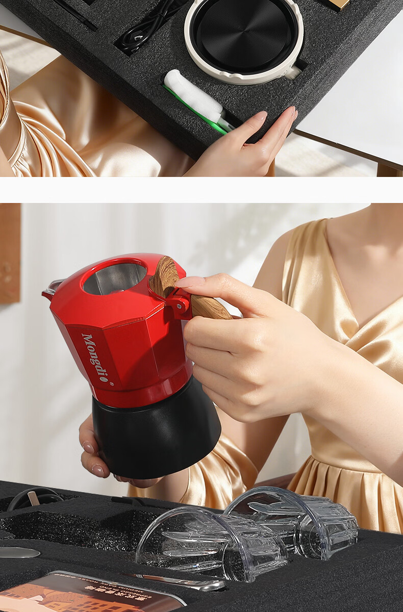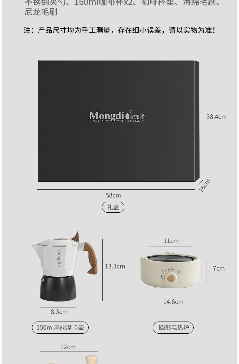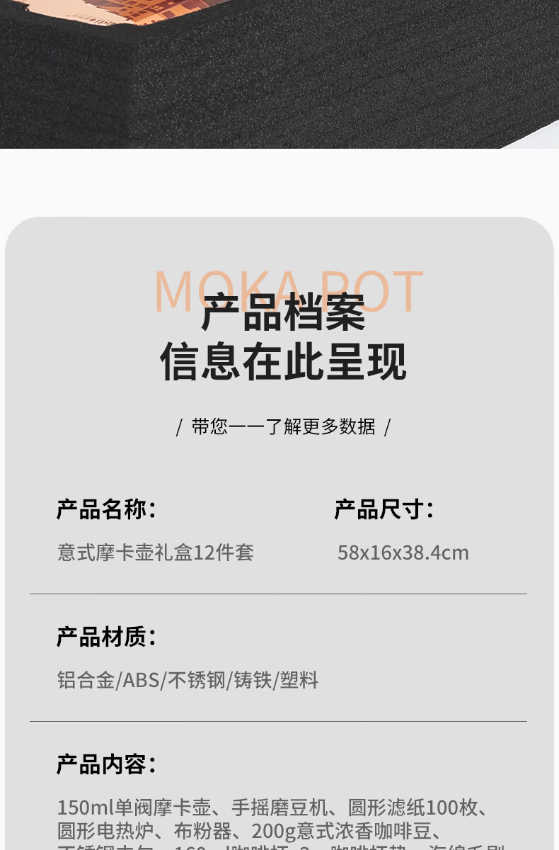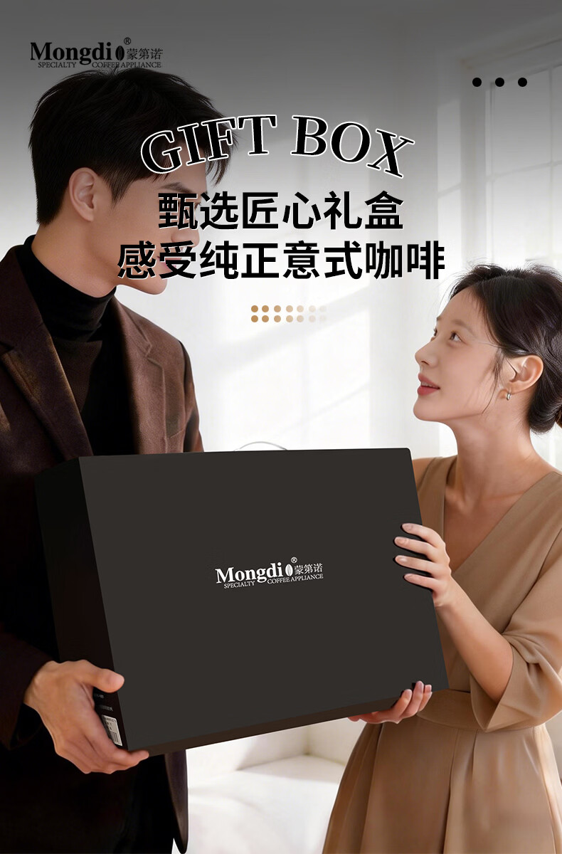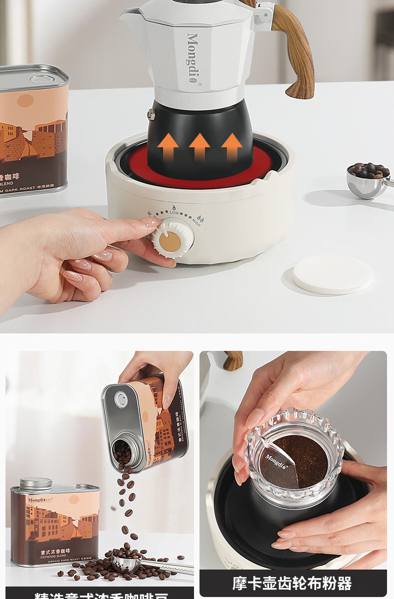 Mongdio摩卡壶礼盒手冲咖啡壶套装便携意式煮咖啡机生日礼物节日伴手礼 摩卡壶大礼盒黑色12件套-精选意式咖啡豆