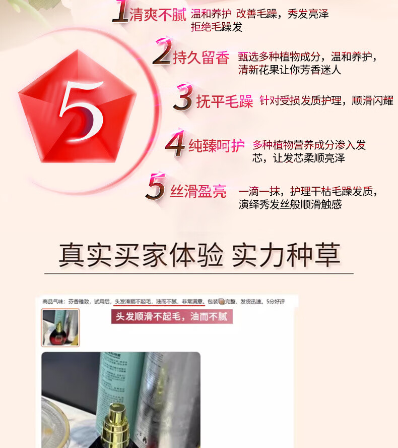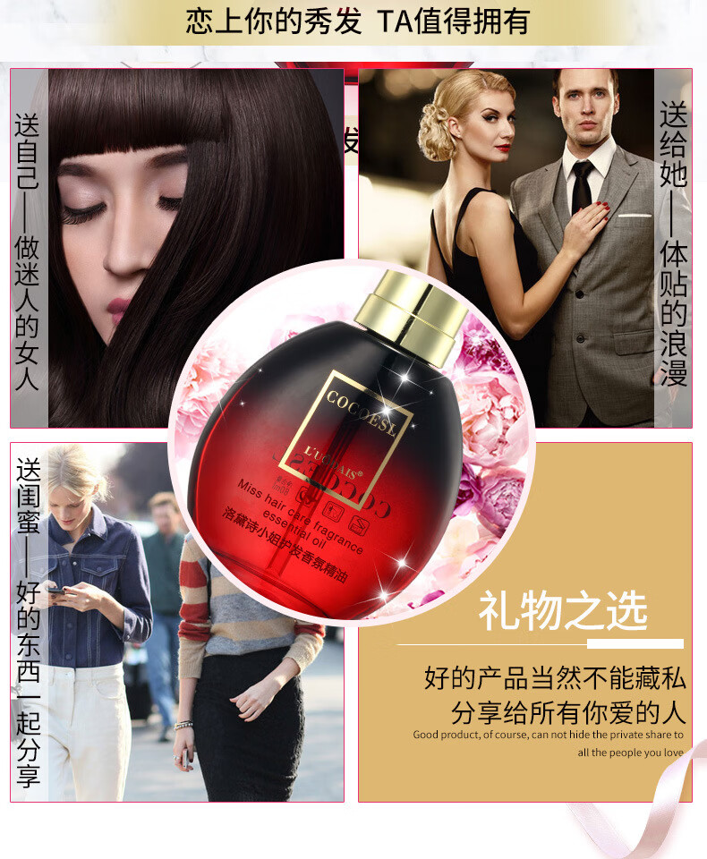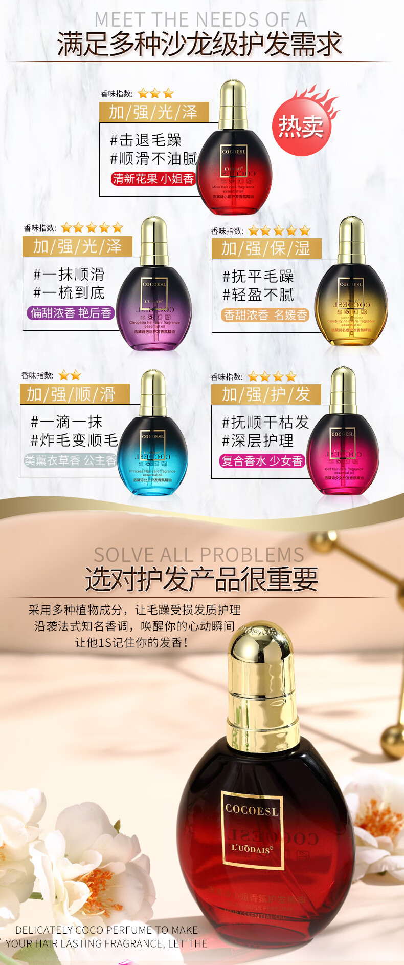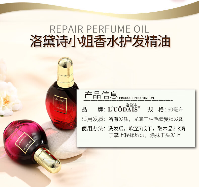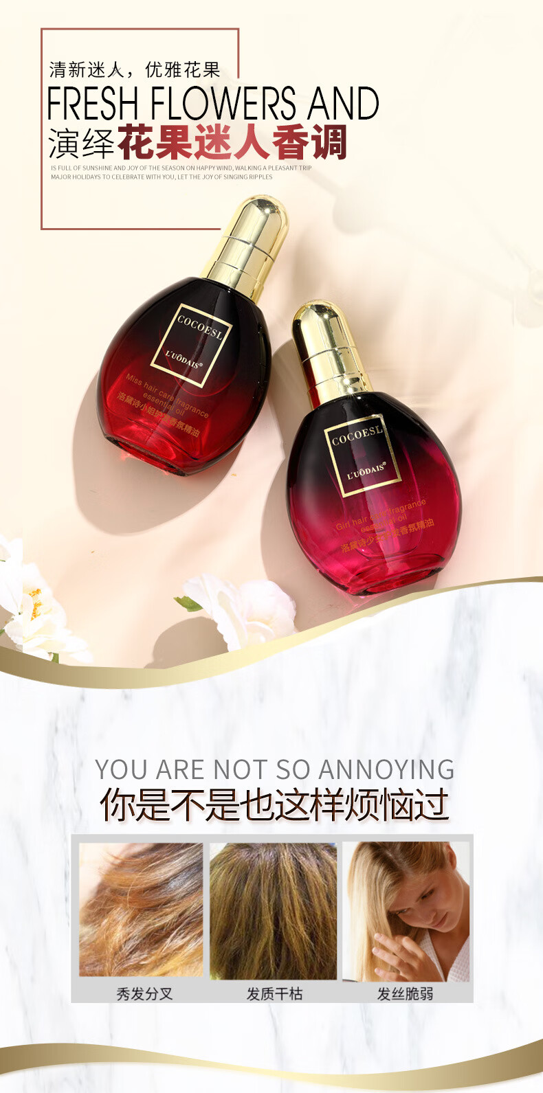 洛黛诗(L'UODAIS)免洗秀禾滋养柔顺护发精油改善毛躁受损发尾香水护发美容院同款 小姐香型(红瓶)【买1瓶送1瓶同款】