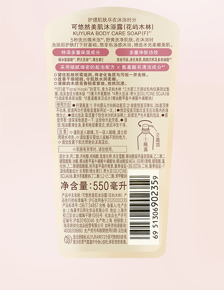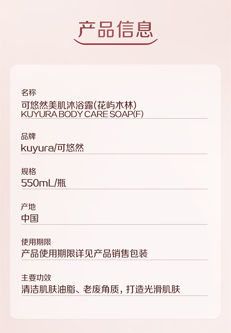 可悠然美肌花屿木林沐浴露550ml持久留香滋润保湿淋浴乳液男女士专用