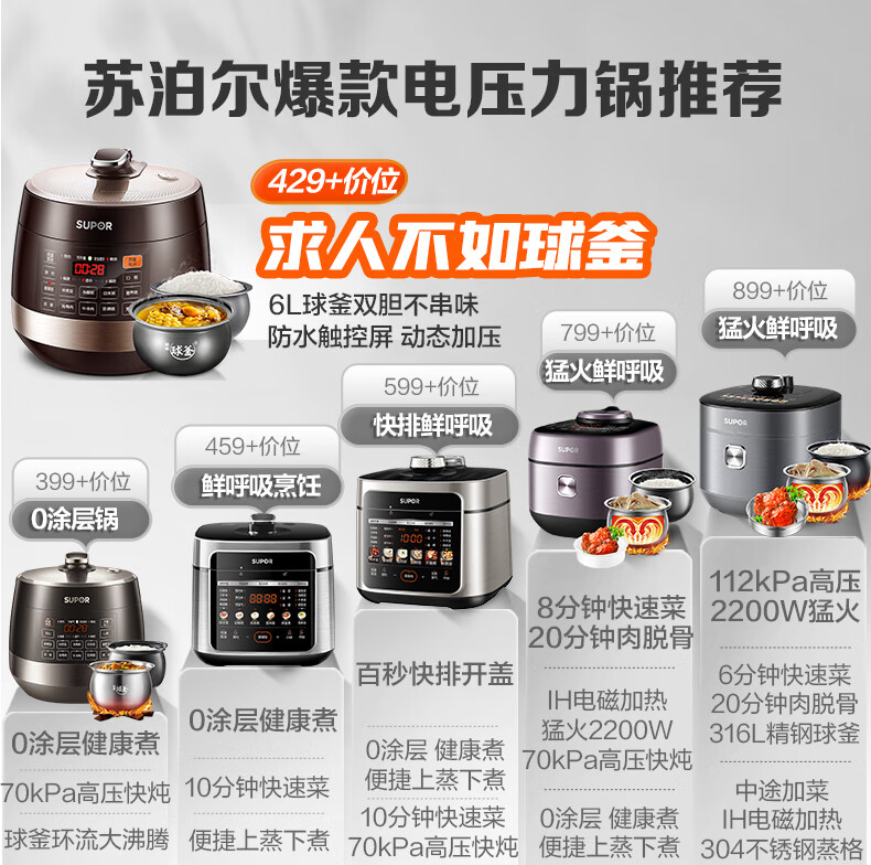 苏泊尔(SUPOR)【厨房好年货】全自动智能预约电压力锅 6L大容量 触控双球釜SY-60YC8001Q电饭煲高压锅6-8人
