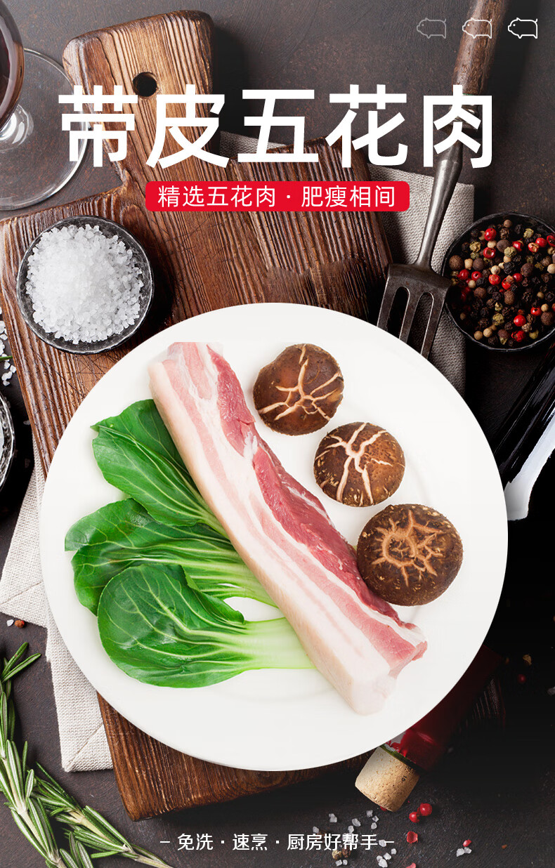双汇五花肉2斤 冷冻带皮五花肉净重2斤猪五花烤肉食材生猪肉烧烤食材
