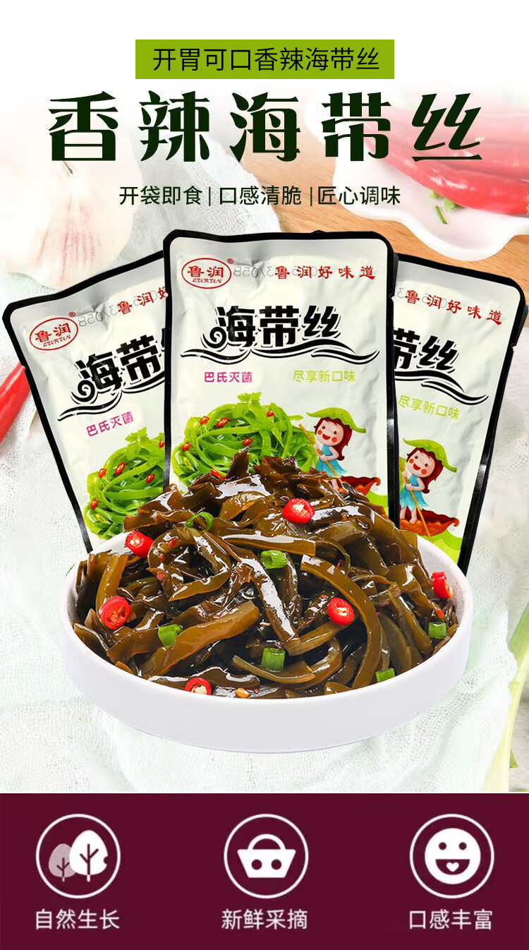 香辣海带丝即食凉拌菜独立包装开袋即食下饭爽口网红同款爆款美食 香辣海带丝3包装【共150克】