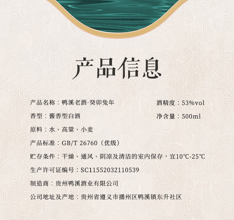 鸭溪癸卯兔年53度酱香型白酒鸭溪酱酒生肖纪念酒500ml送礼 品质收藏 53度 500mL 1瓶 (满2瓶赠礼袋)