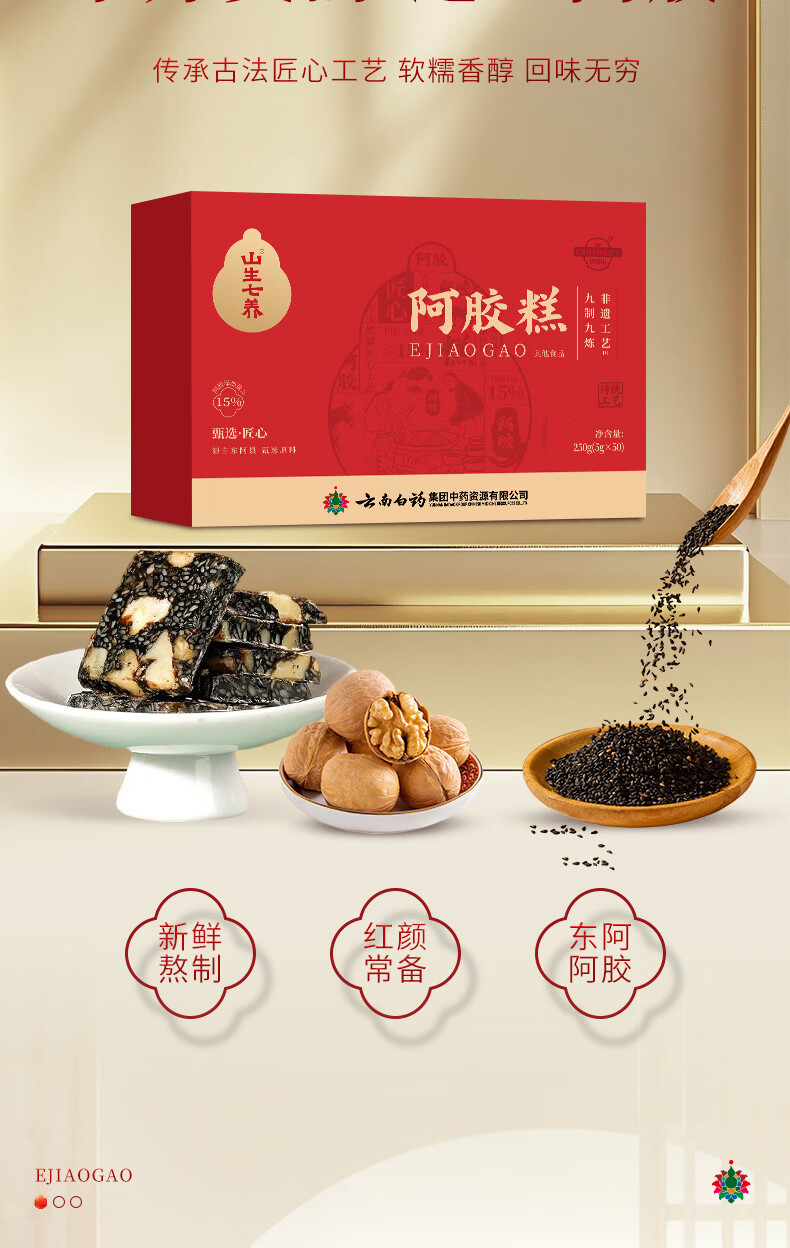 阿胶糕黑芝麻阿胶膏阿胶固元糕红枣枸杞滋补品东阿特产送礼长辈 【500克*1盒】阿胶糕