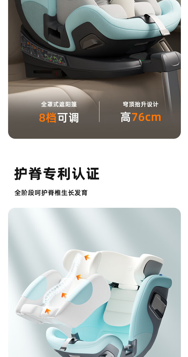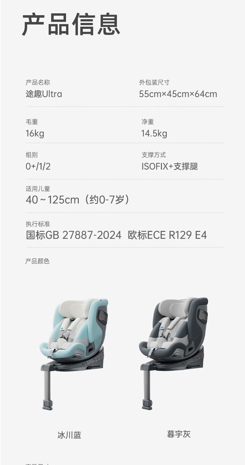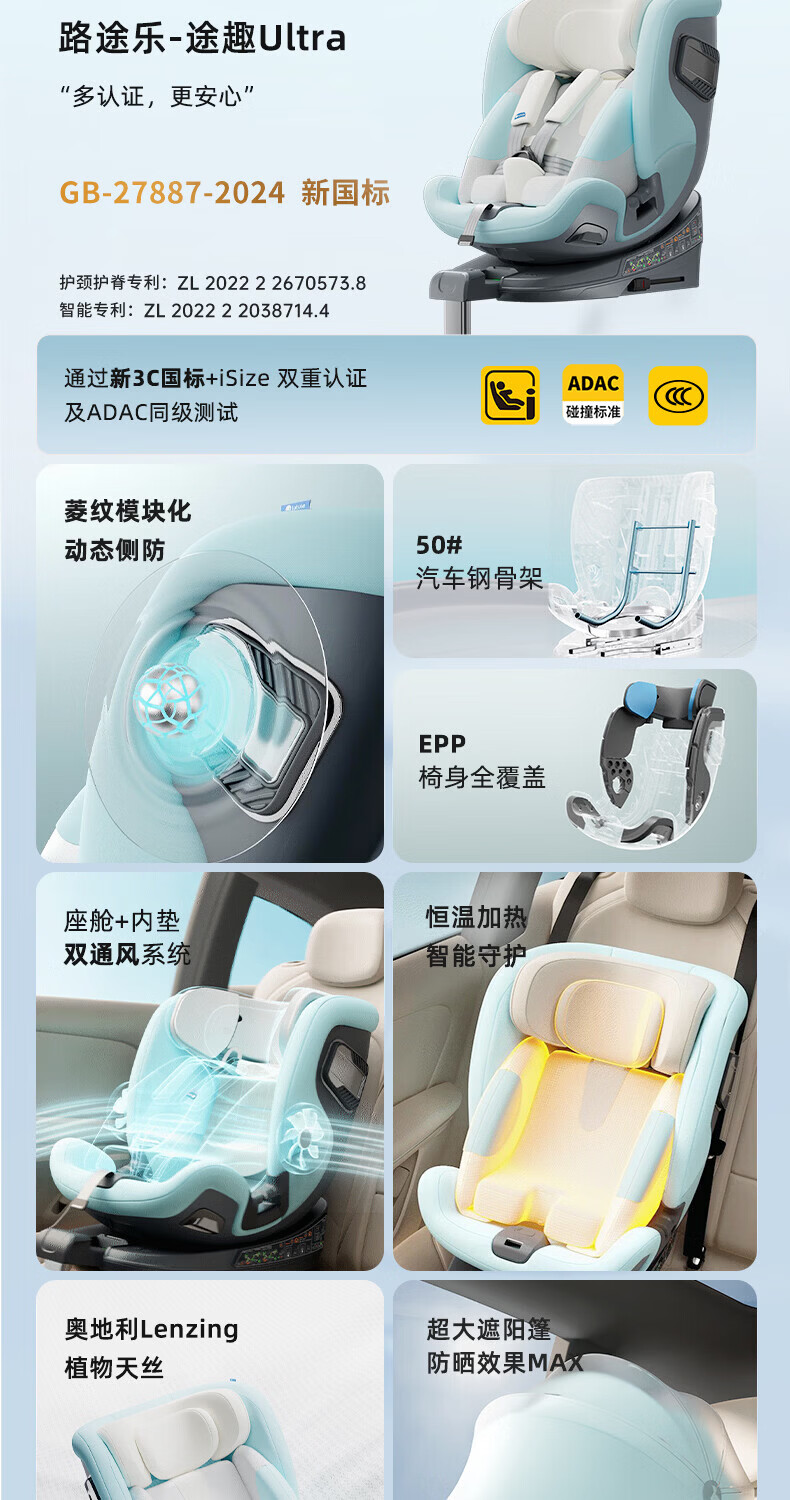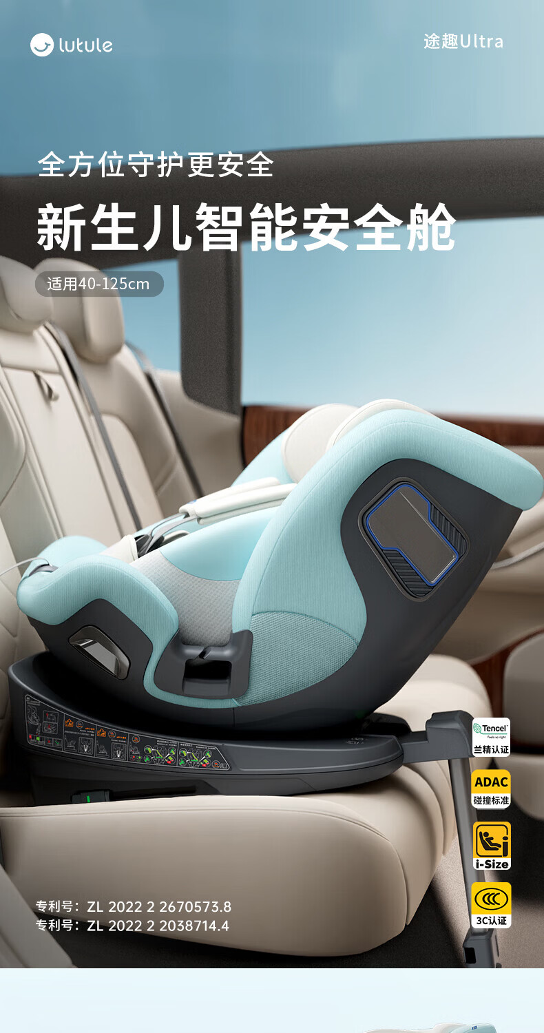 路途乐(lutule)途趣Ultra儿童安全座椅0-7岁新生婴儿宝宝新国标认证可坐可躺360 冰川蓝-尊享版【新国标认证】