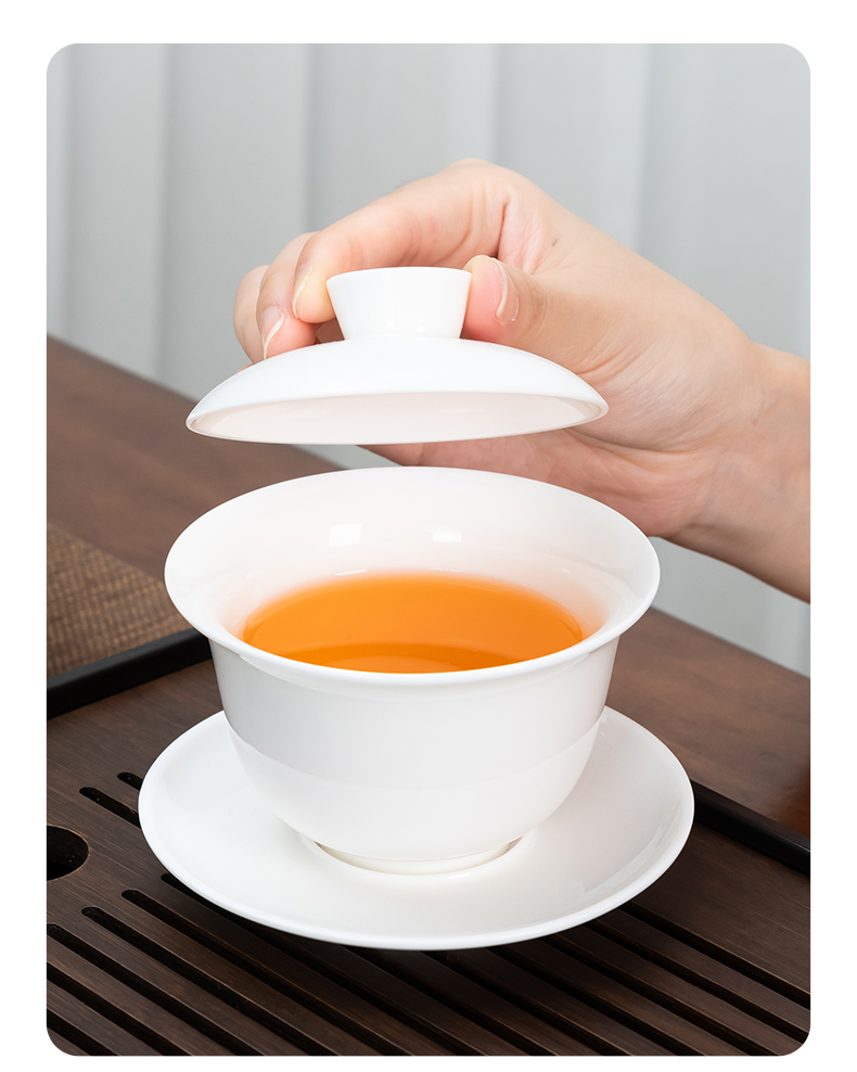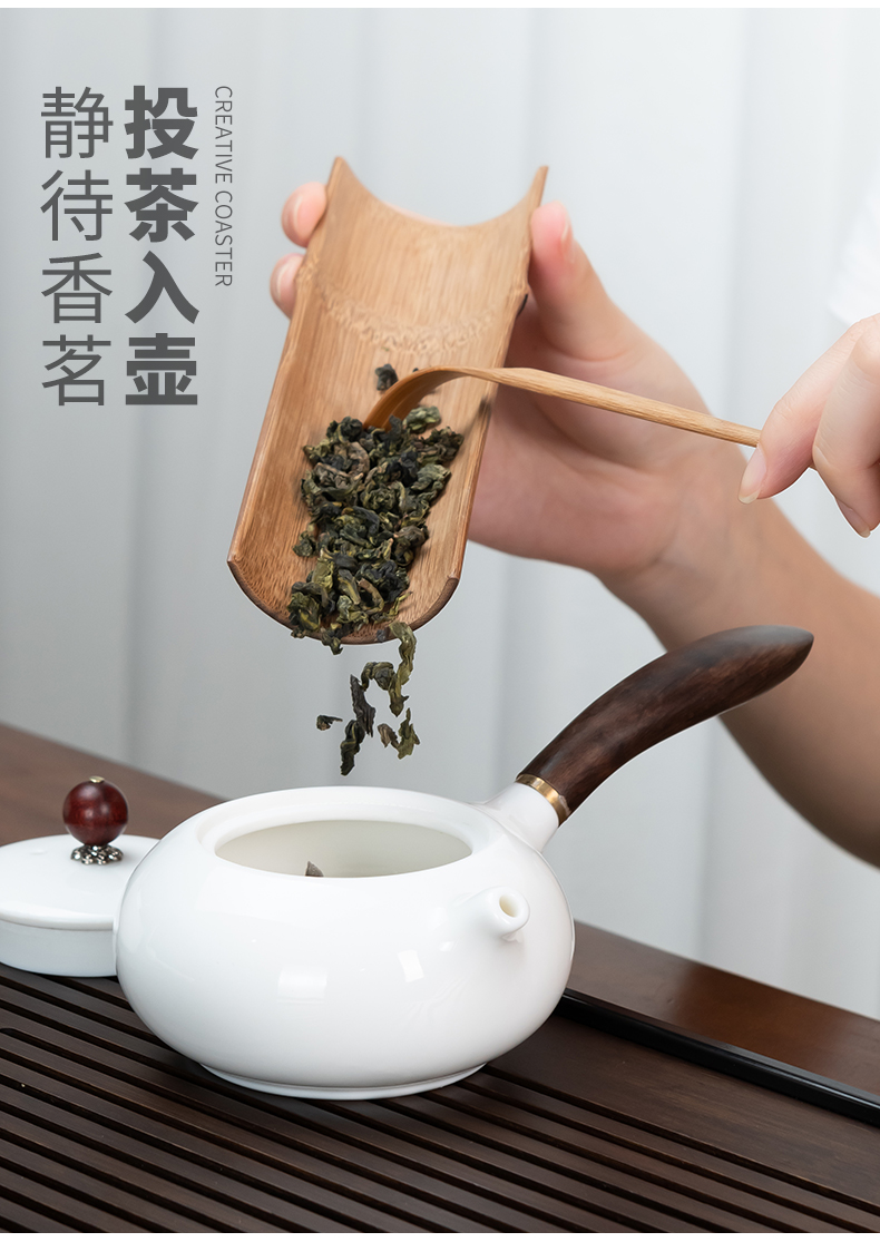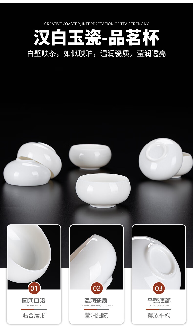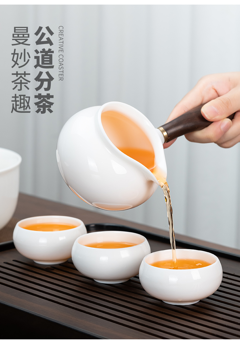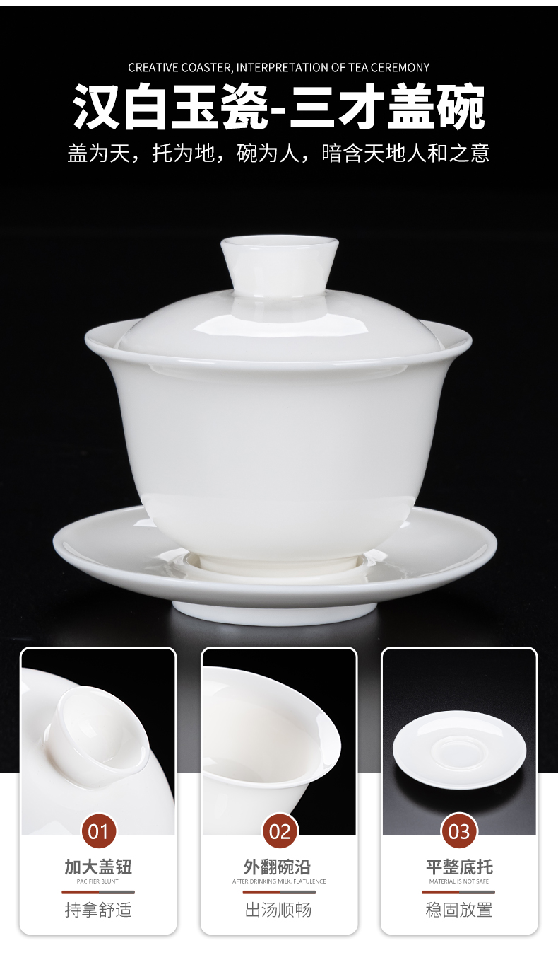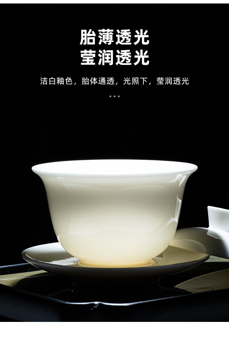 白瓷功夫茶具套装家用侧把德化高白玉瓷泡茶壶盖碗茶杯茶洗整套陶瓷描金 10头汉白玉(侧把-木)-罗汉杯-描金