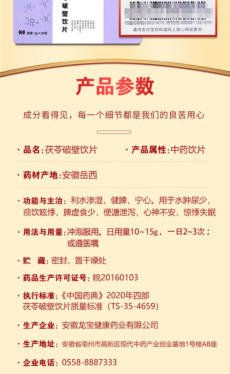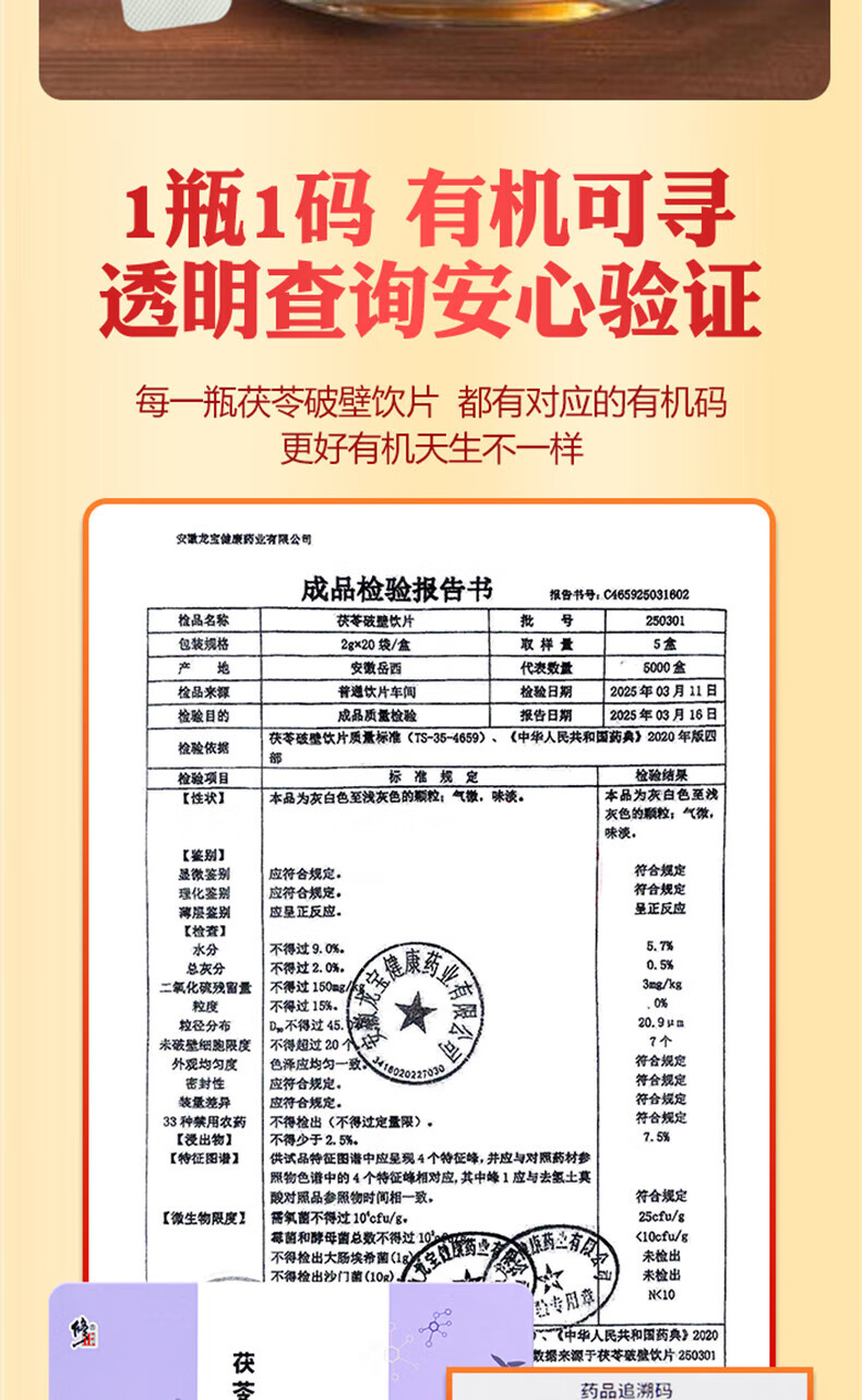 修正茯苓破壁饮片2g*20袋利水渗湿健脾宁心无熏硫泡水养生茶高吸收便携小包装