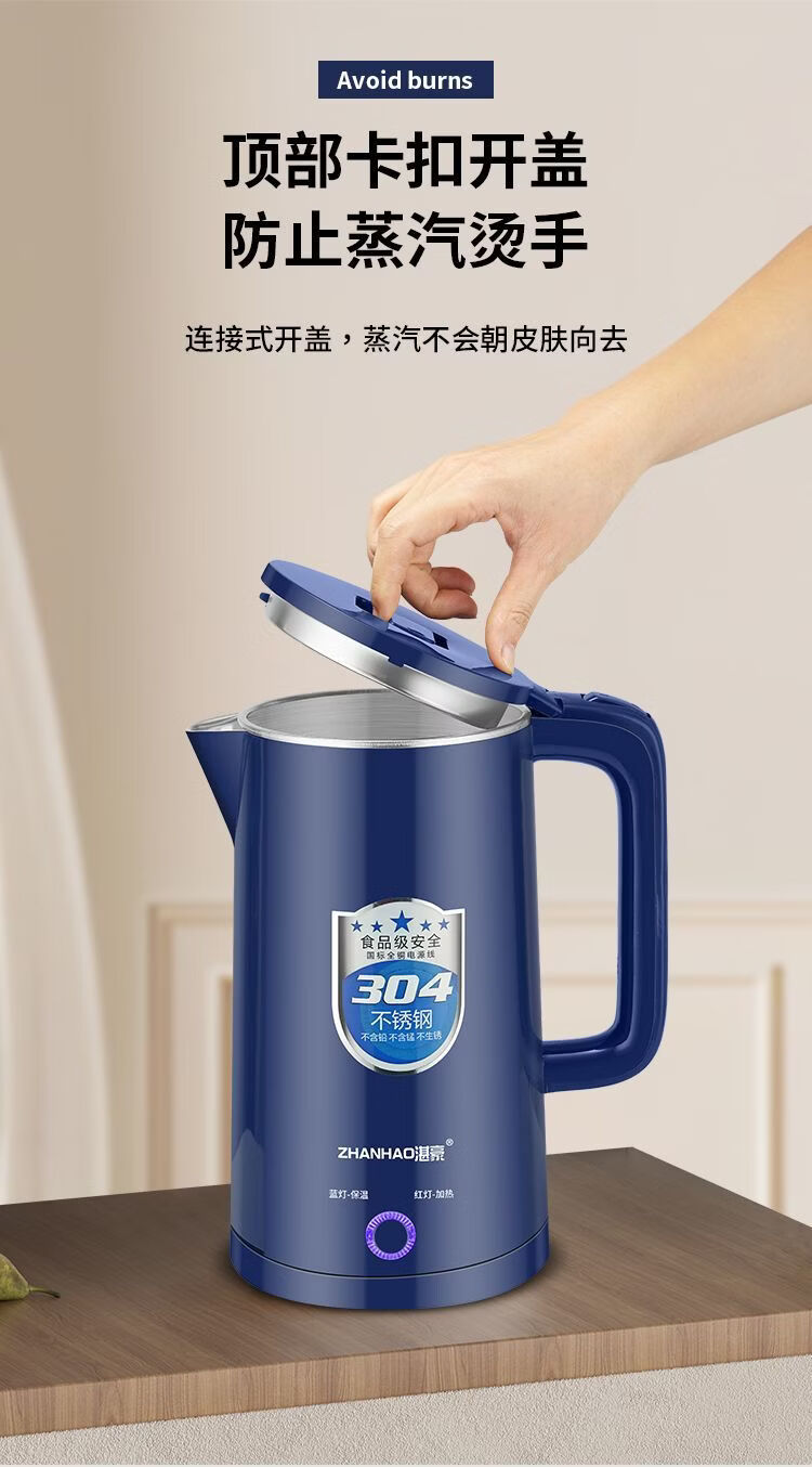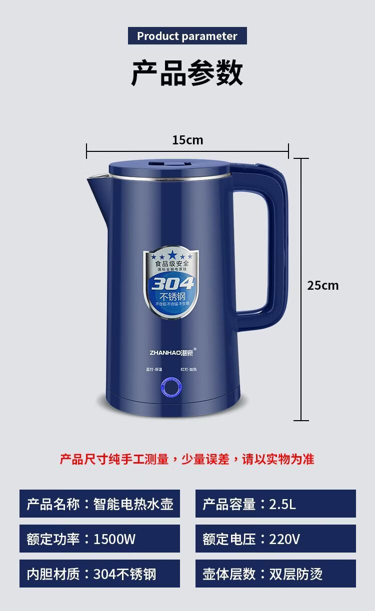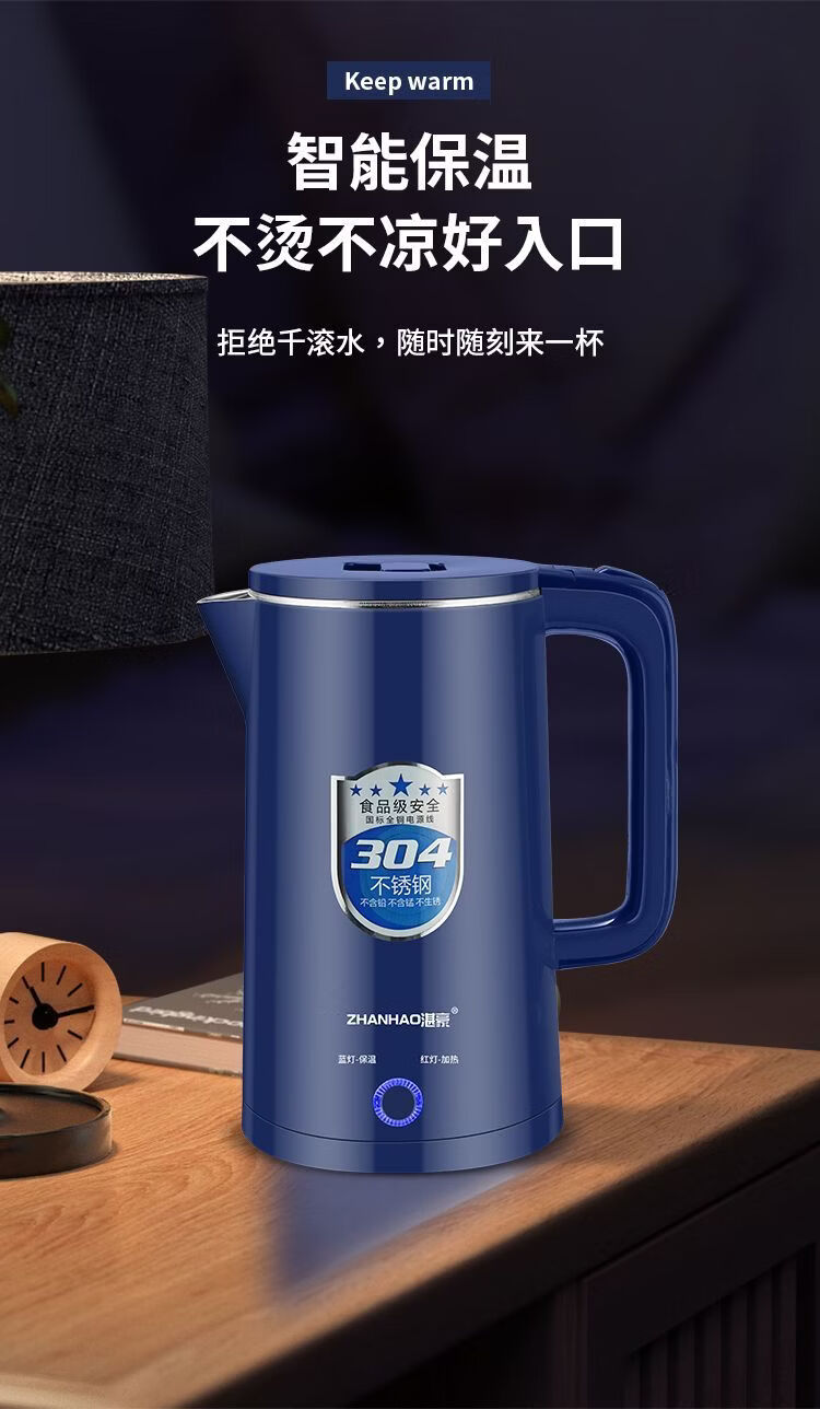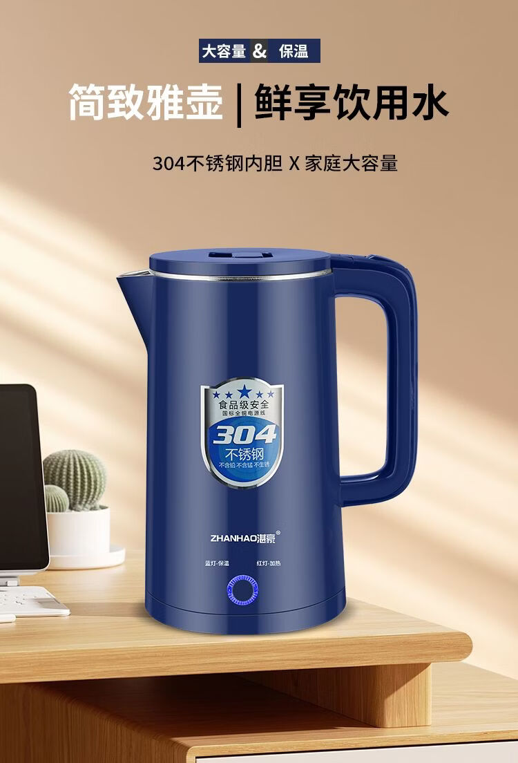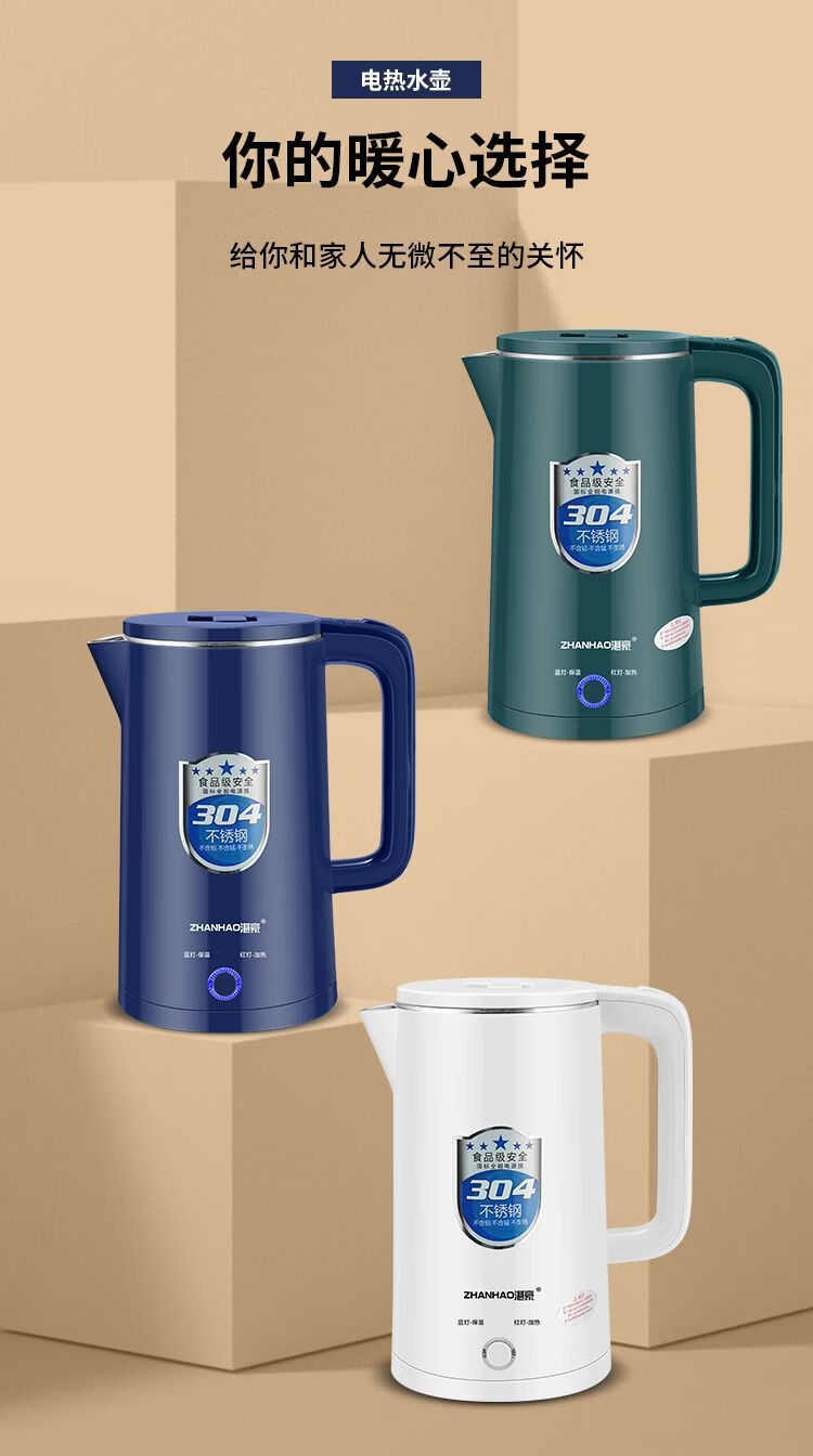 湛豪电热水壶304不锈钢大容量恒温烧水壶家用自动断电快速煮水壶 2.5L 白色+304不锈钢+2.5L+保温