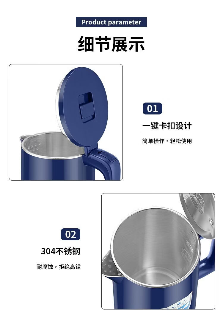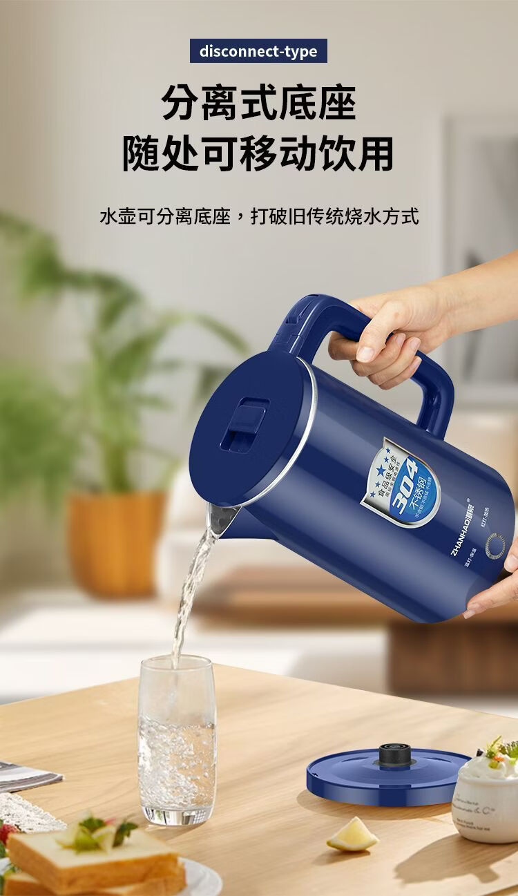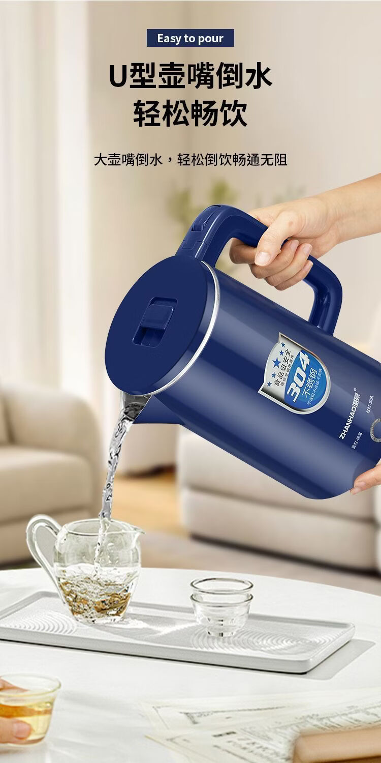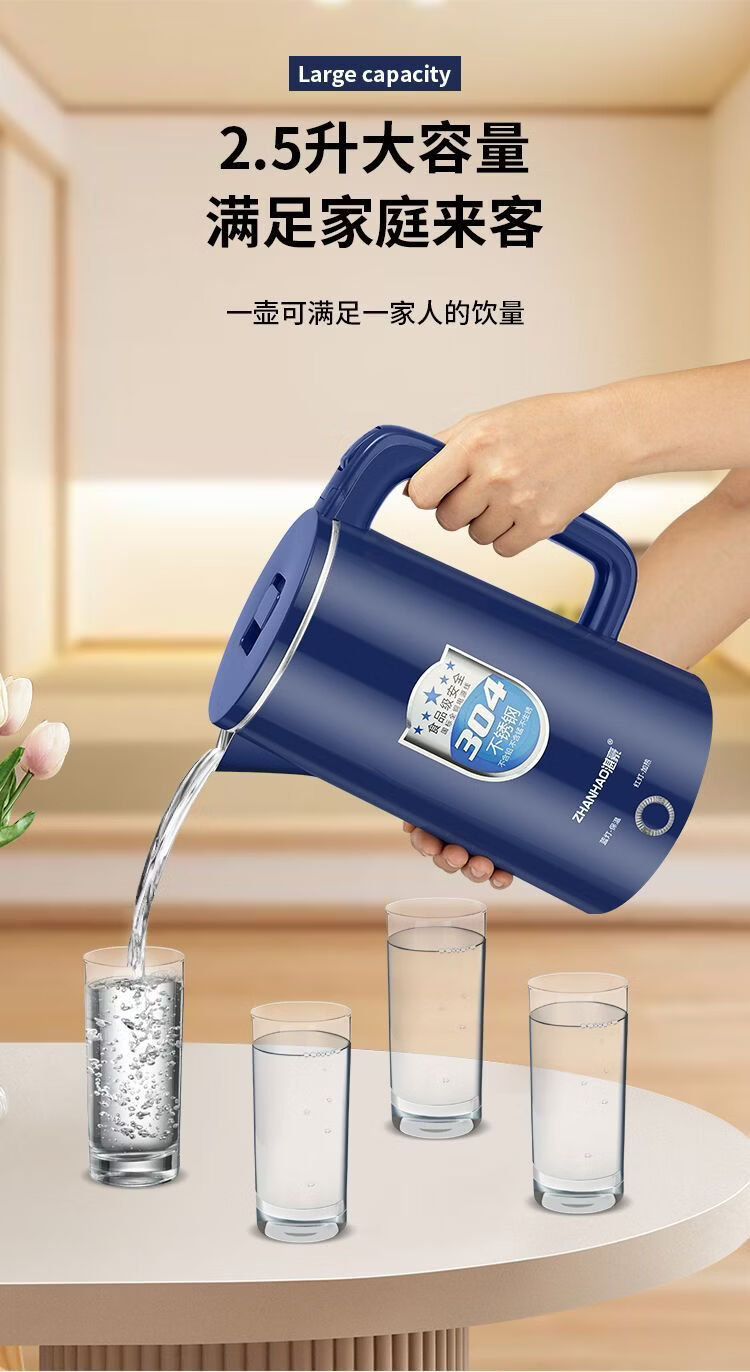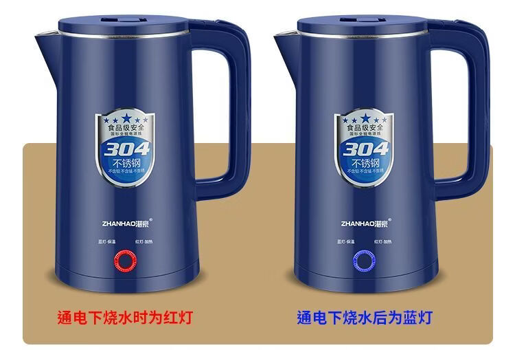 湛豪电热水壶304不锈钢大容量恒温烧水壶家用自动断电快速煮水壶 2.5L 白色+304不锈钢+2.5L+保温