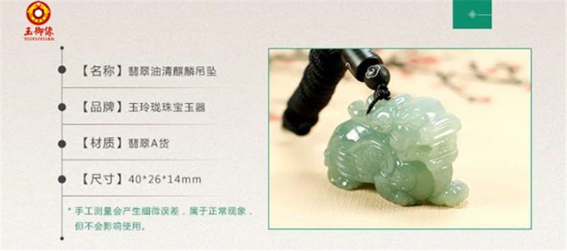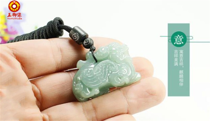 玉御缘 原创新款翡翠A货玉麒麟吊坠玉项链立体麒麟玉坠男女款礼物玉石玉佩挂件带证书