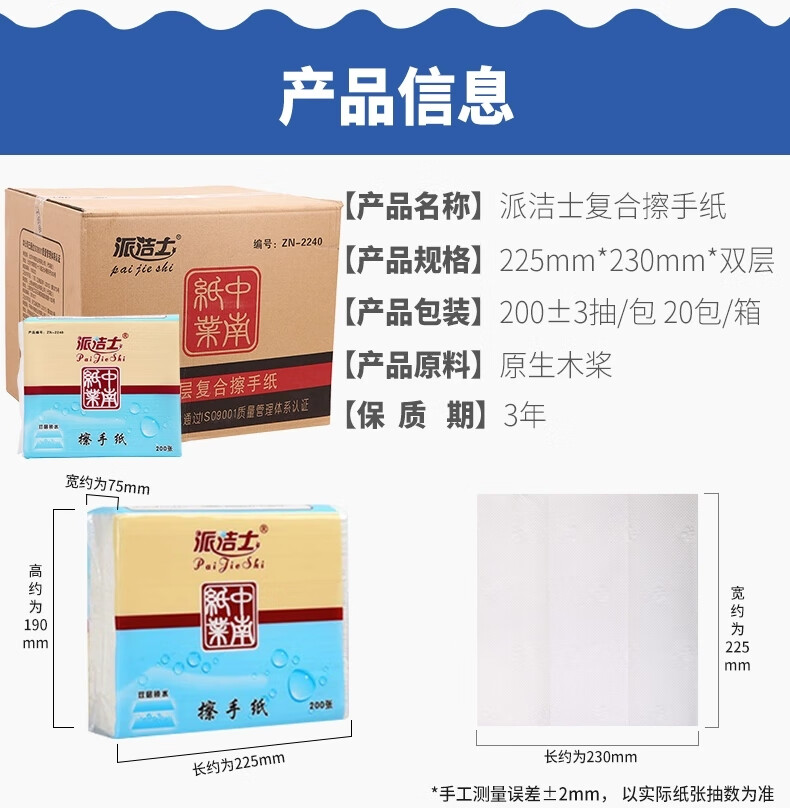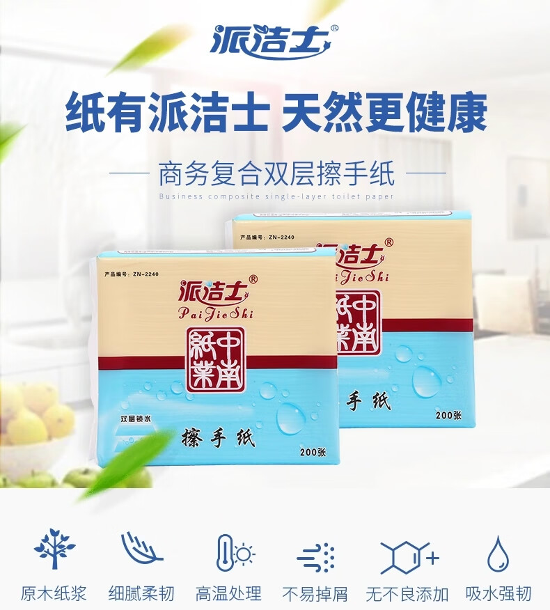派洁士双层复合擦手纸办公桌办公室银行专用纸巾厕纸吸水吸油厕所纸 20包派洁士1940【4000抽】