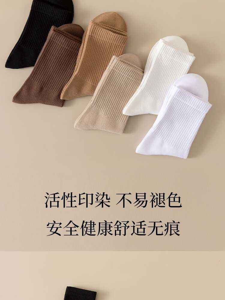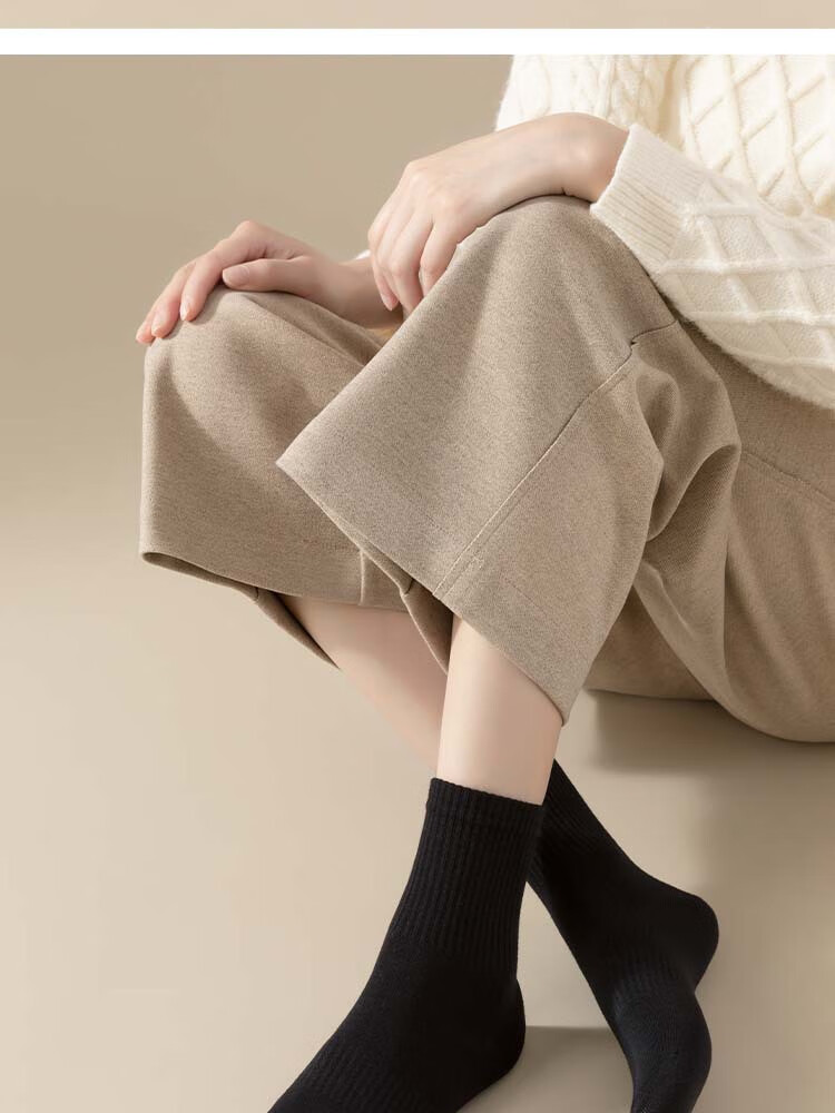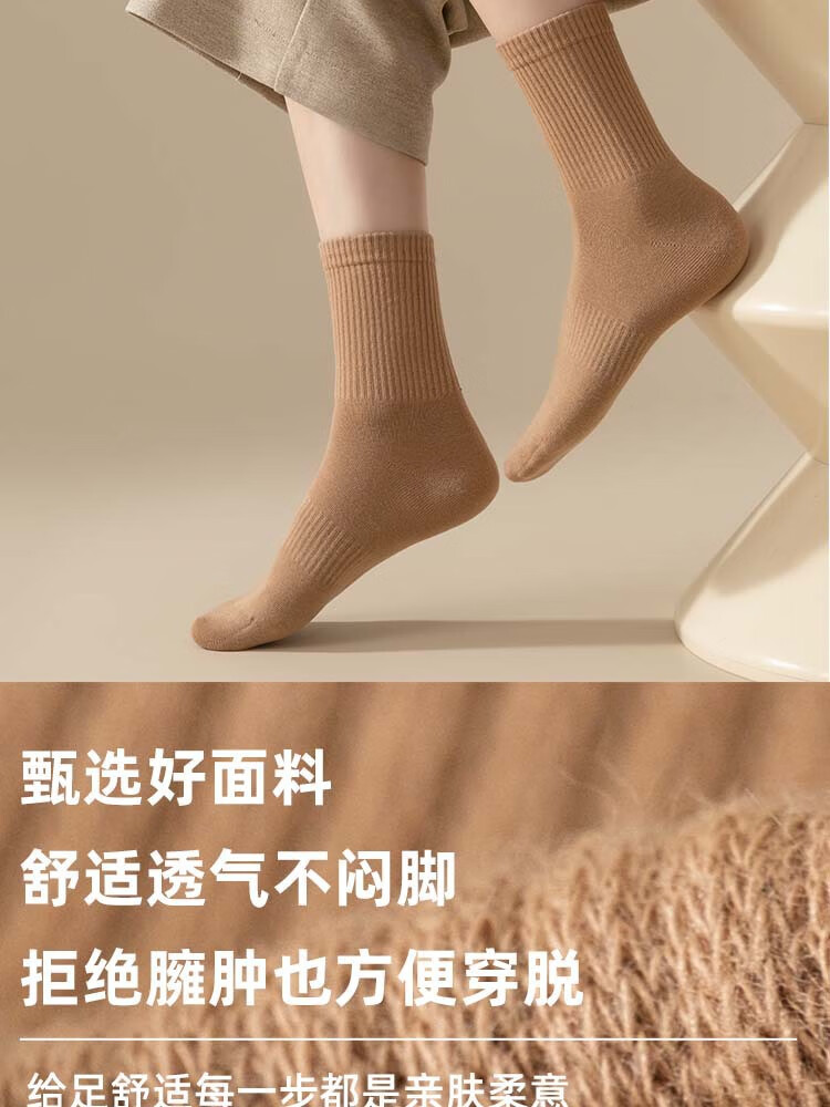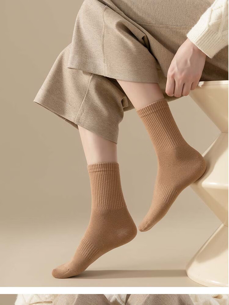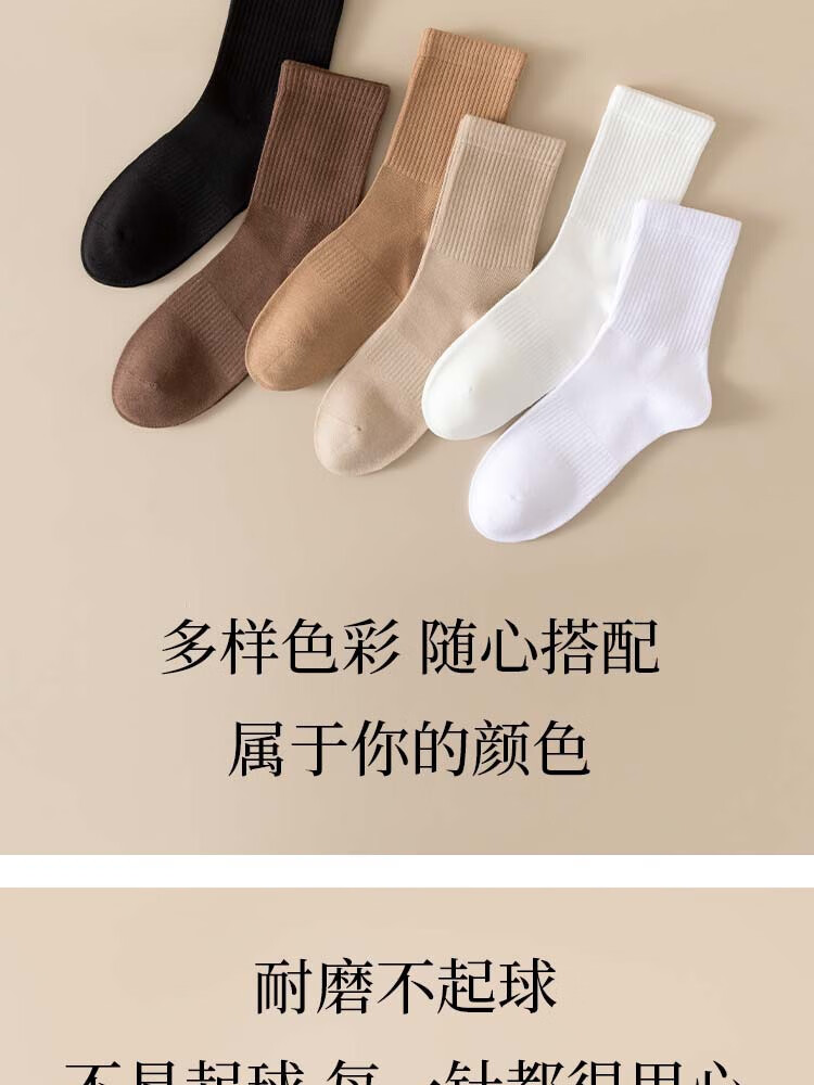 佐巴伦礼盒六双装袜子女秋冬中筒袜纯色防臭吸汗棉袜女高橡筋堆堆长筒袜 六双装//黑色+白色+米白+卡其+咖色+咖啡 均码 QR-21礼盒装粗条束腰堆堆袜