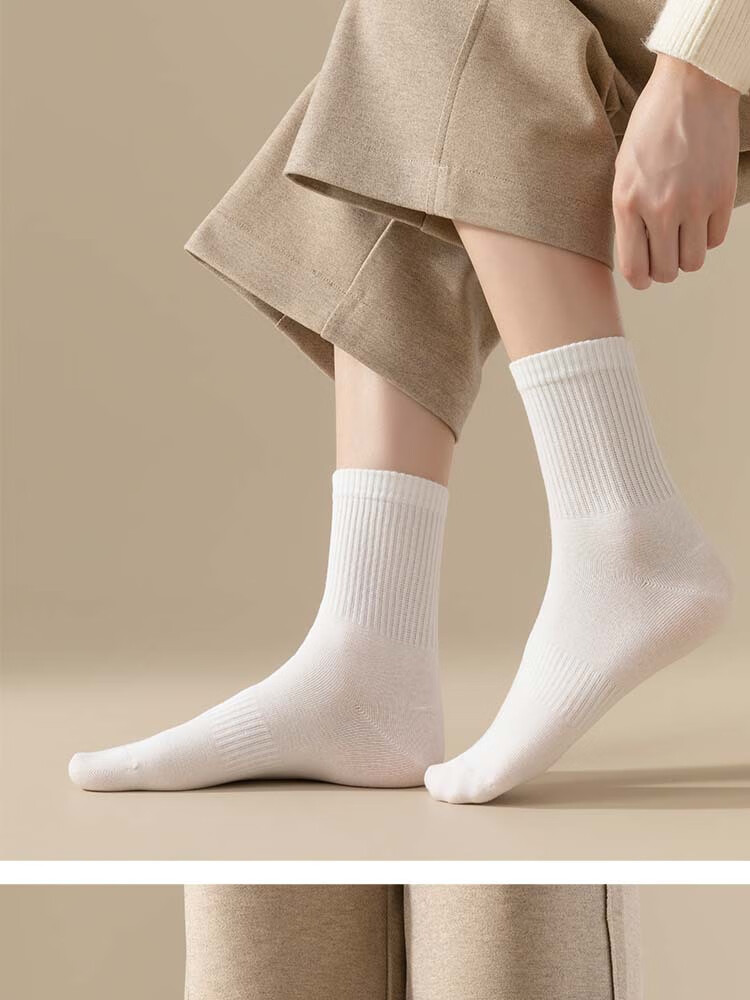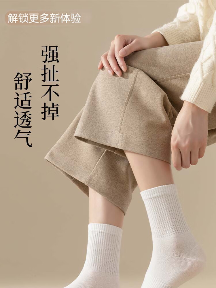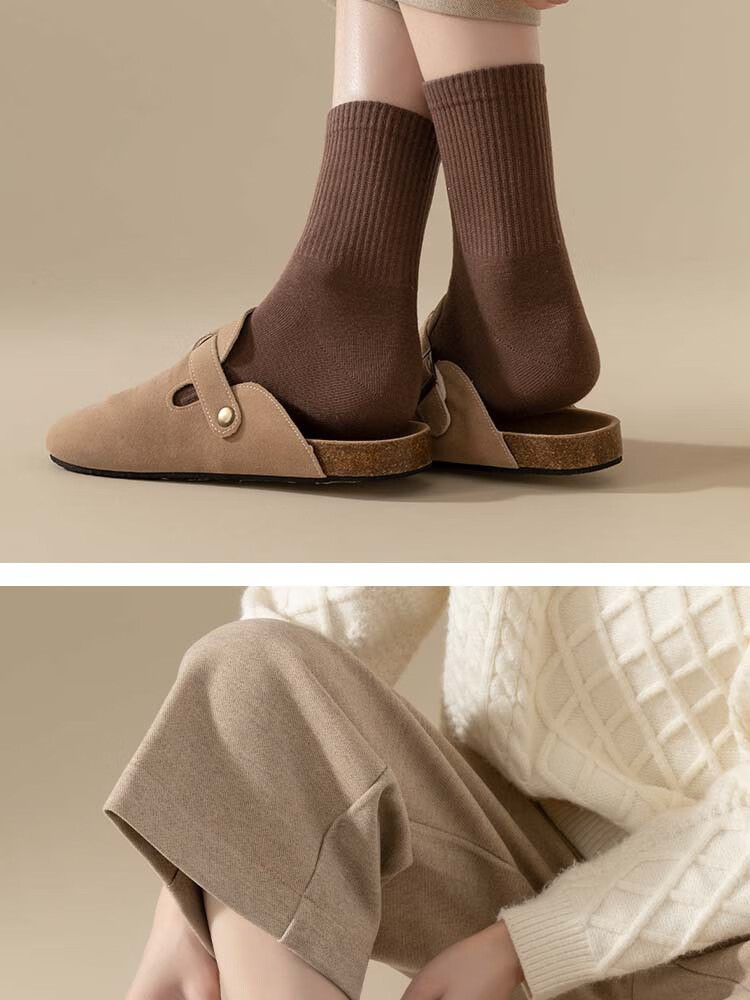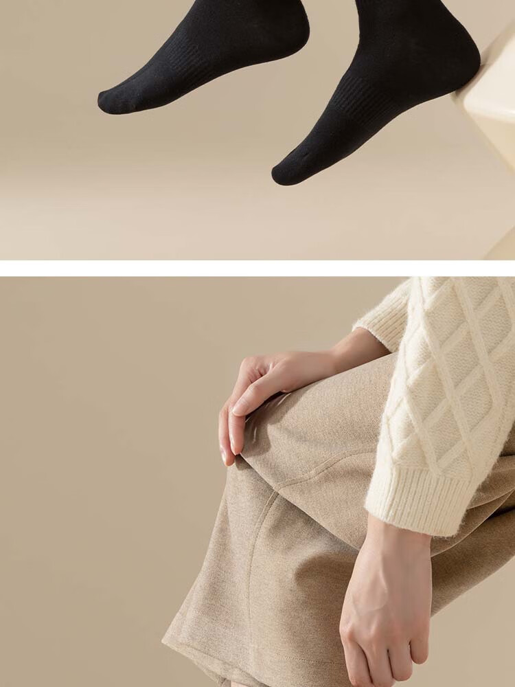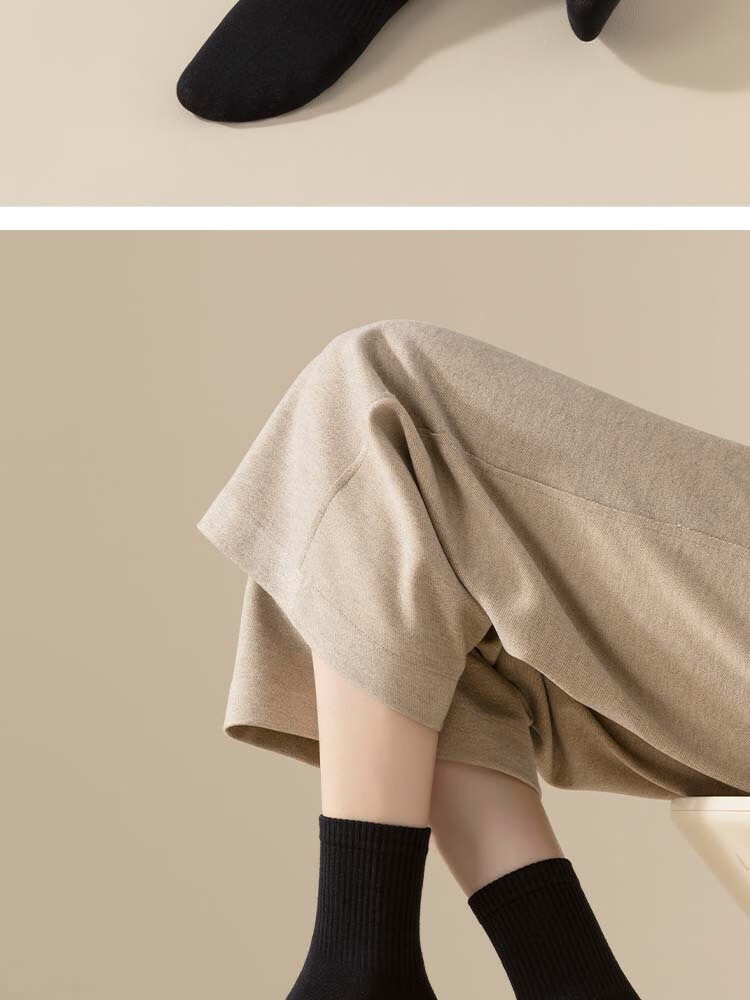 佐巴伦礼盒六双装袜子女秋冬中筒袜纯色防臭吸汗棉袜女高橡筋堆堆长筒袜 六双装//黑色+白色+米白+卡其+咖色+咖啡 均码 QR-21礼盒装粗条束腰堆堆袜