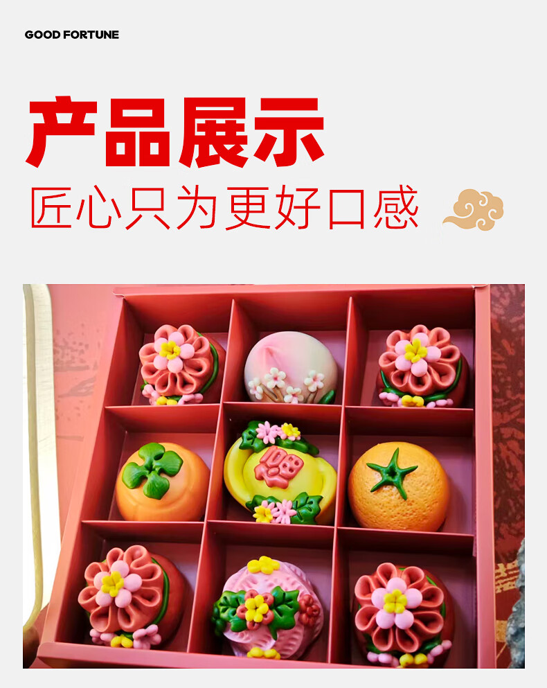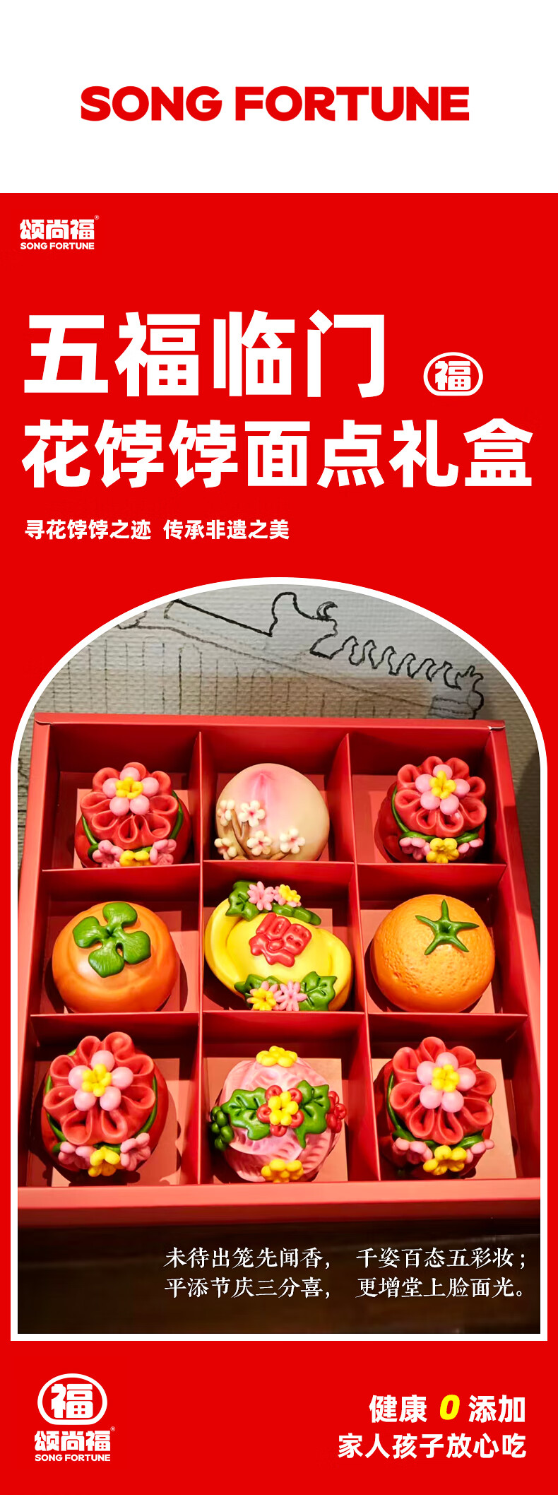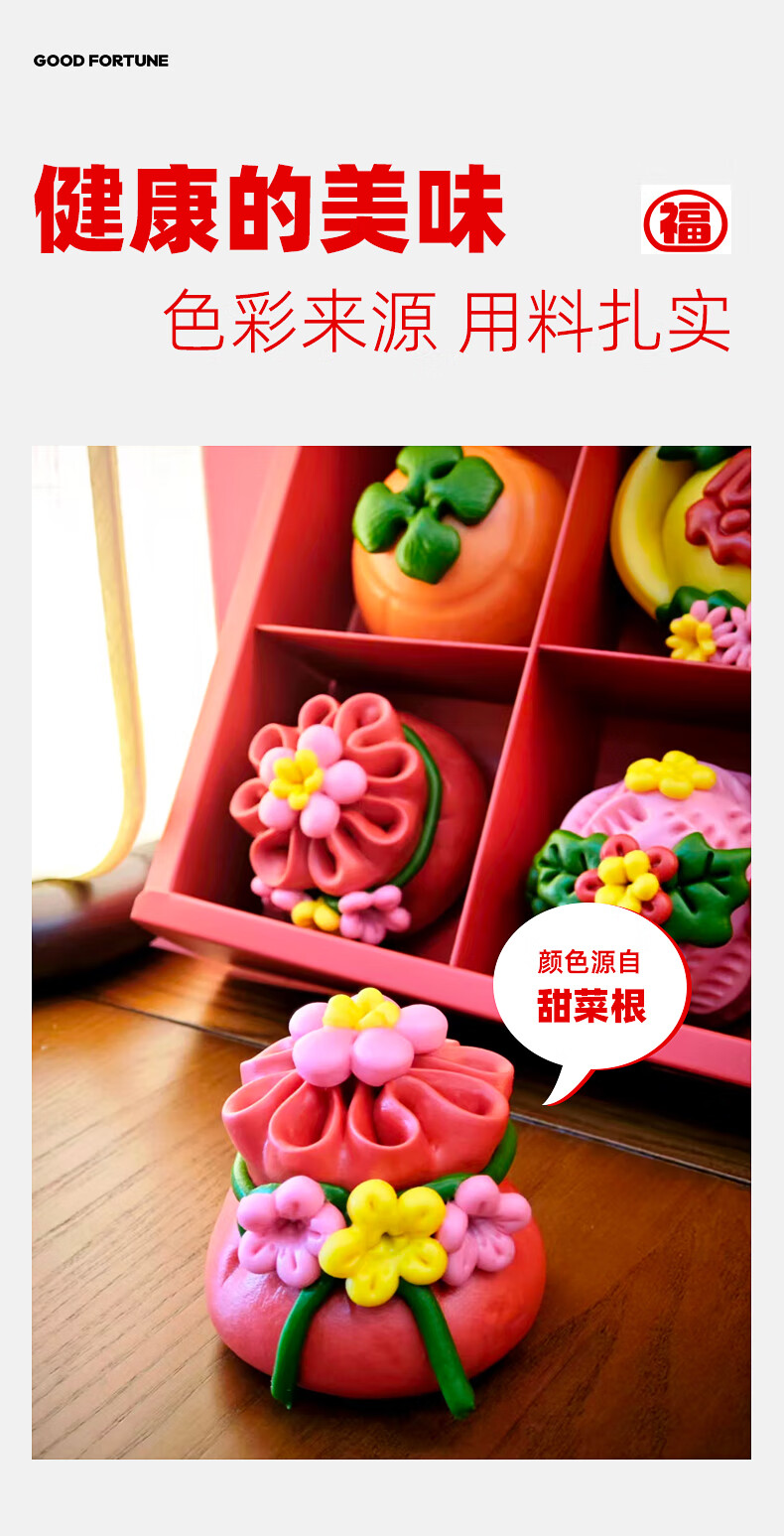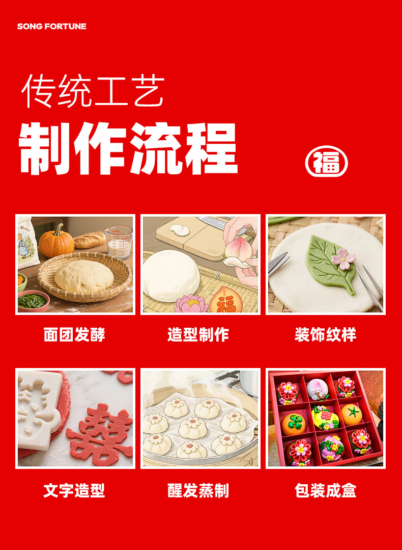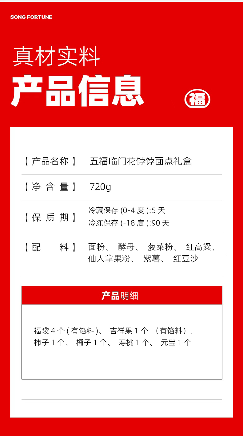 颂尚福面点点心礼盒花饽饽寿桃花馒头春节年货祝寿送礼 五福临门礼盒720g