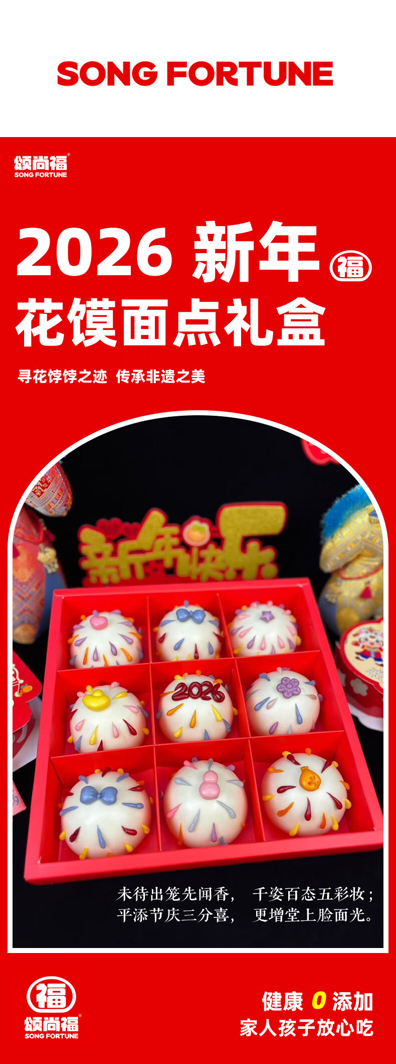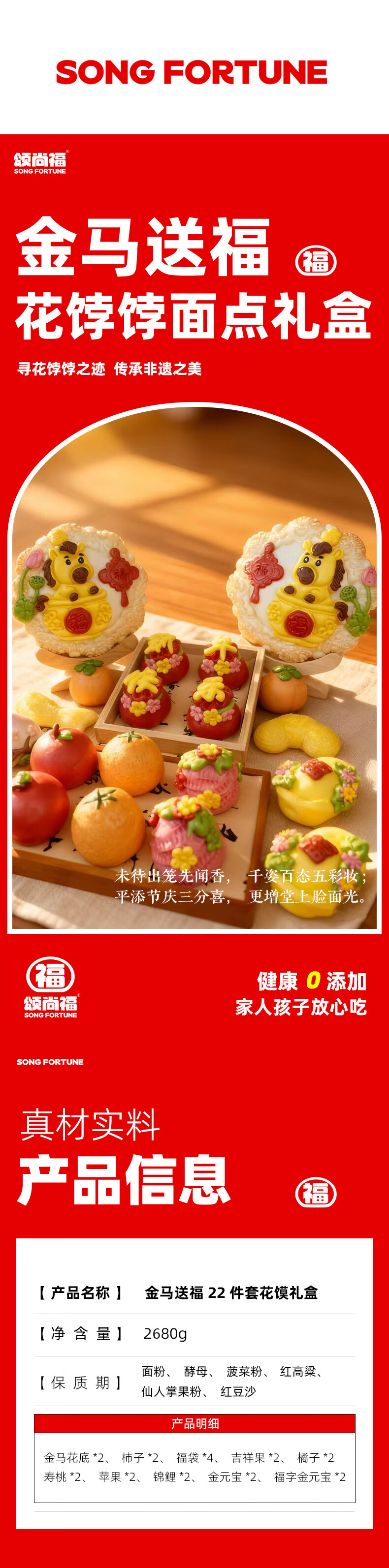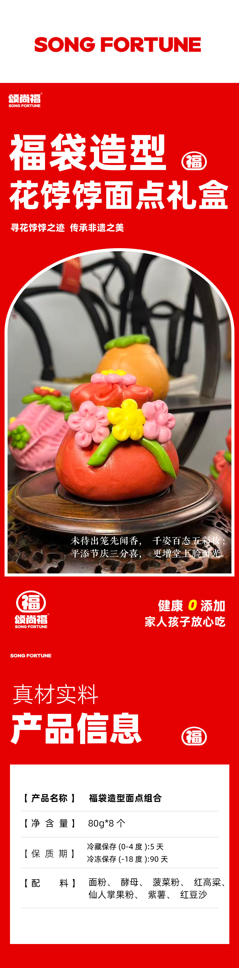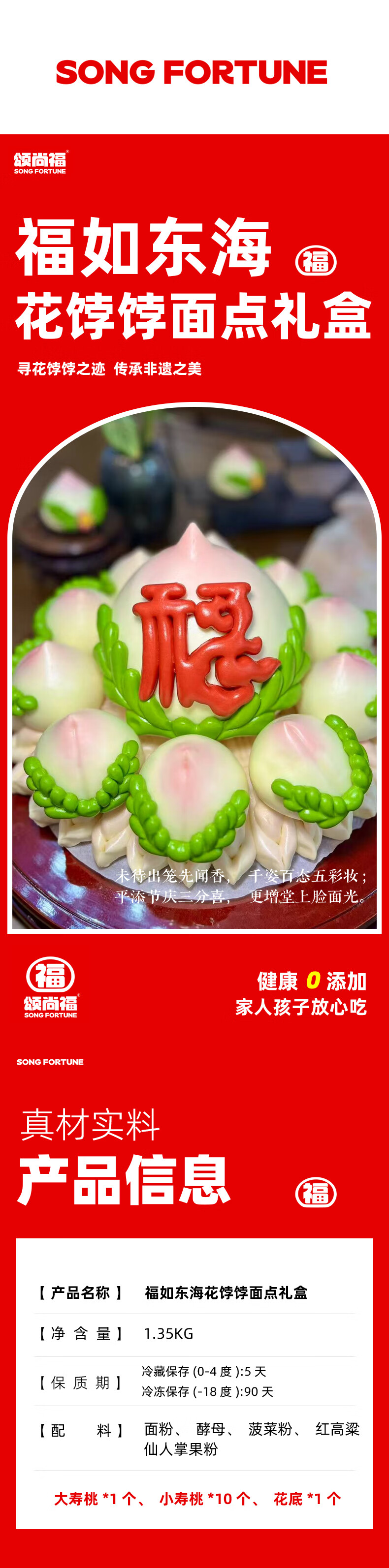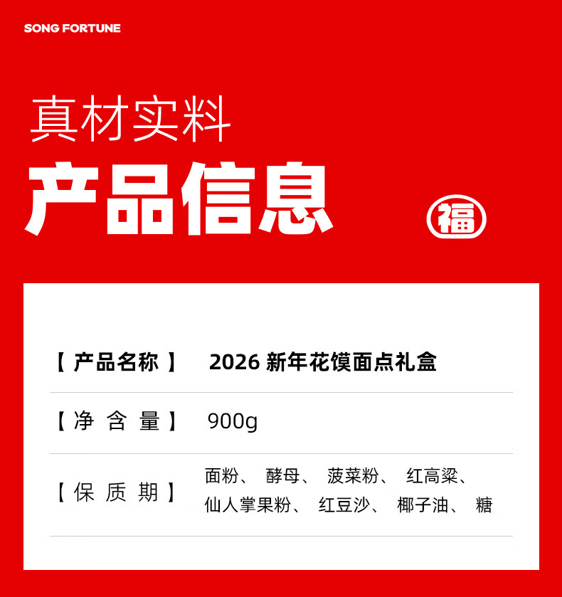 颂尚福面点点心礼盒花饽饽寿桃花馒头春节年货祝寿送礼 五福临门礼盒720g