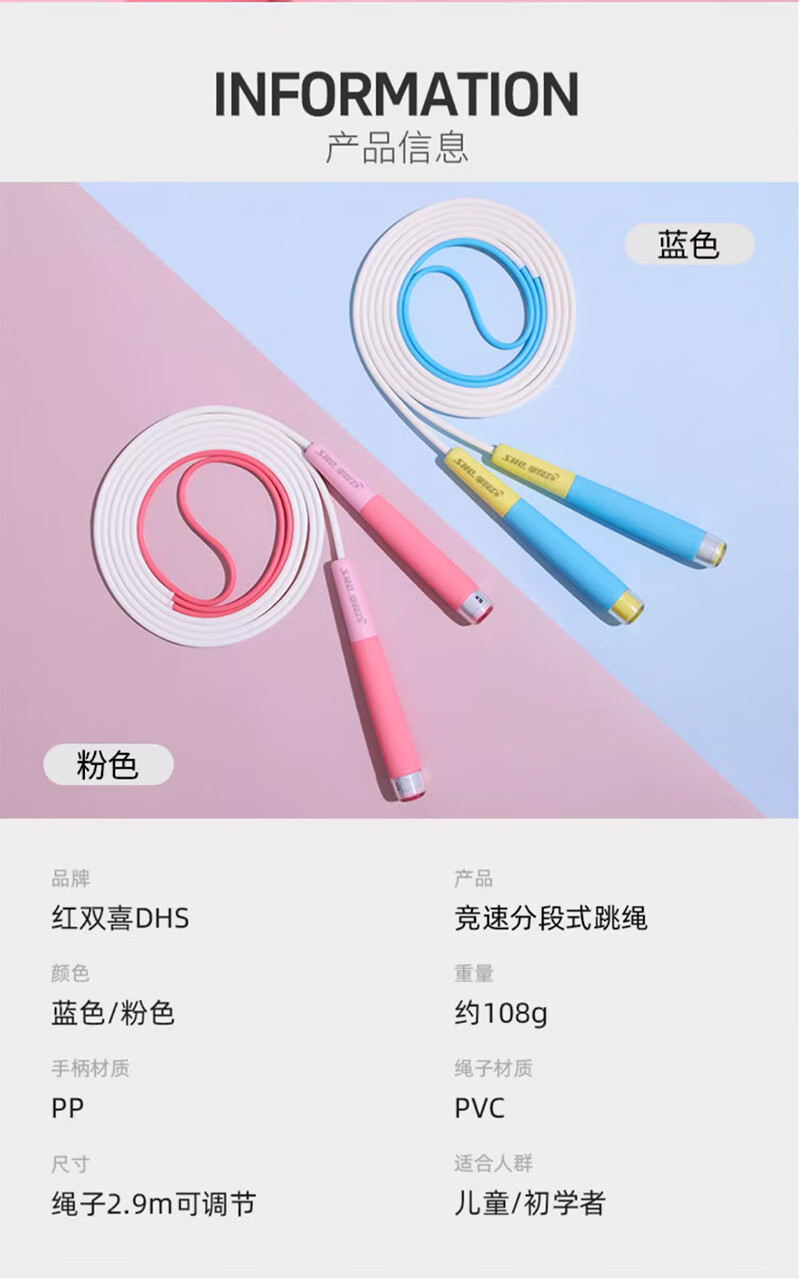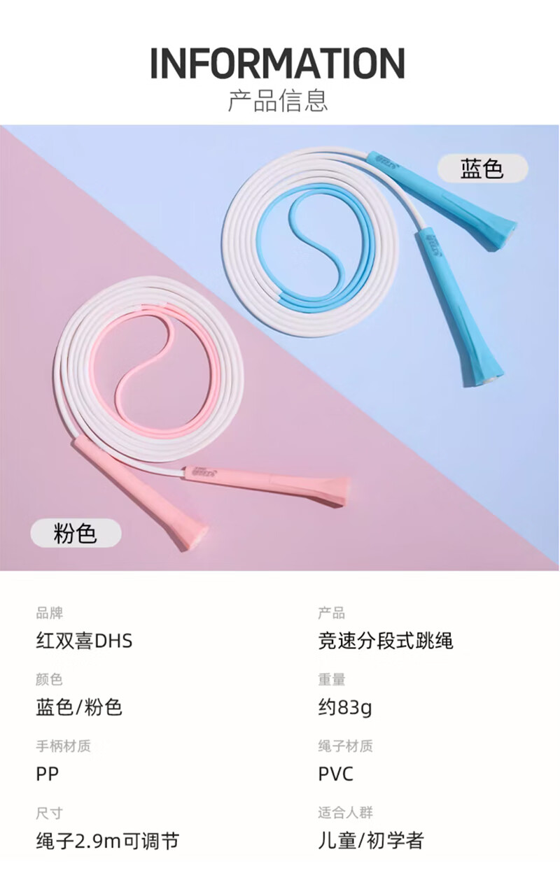 红双喜跳绳可调节环保PVC分段式竞速跳绳耐用不打结中小学生 分段式竞速跳绳(蓝)钻石型手柄