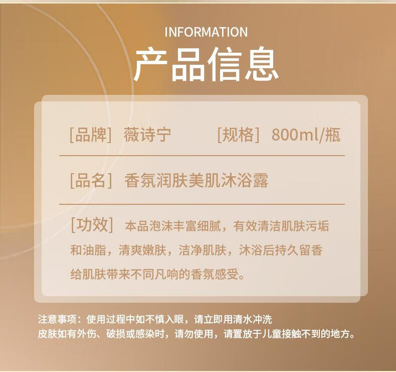 薇诗宁沐浴露京营微诗宁沐浴露香水香氛滋润美肌保湿 薇诗宁沐浴露 800ml 2瓶
