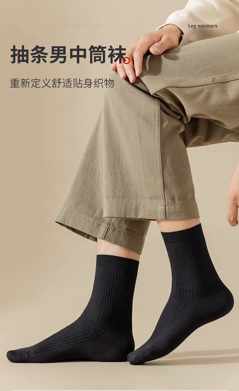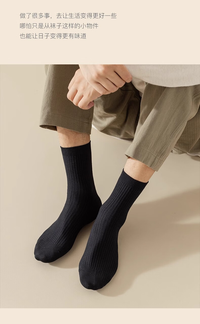 【甄选好物】袜子男纯色中筒袜春季防臭吸汗透气春夏薄款百搭黑色 【5双装】颜色随机 均码