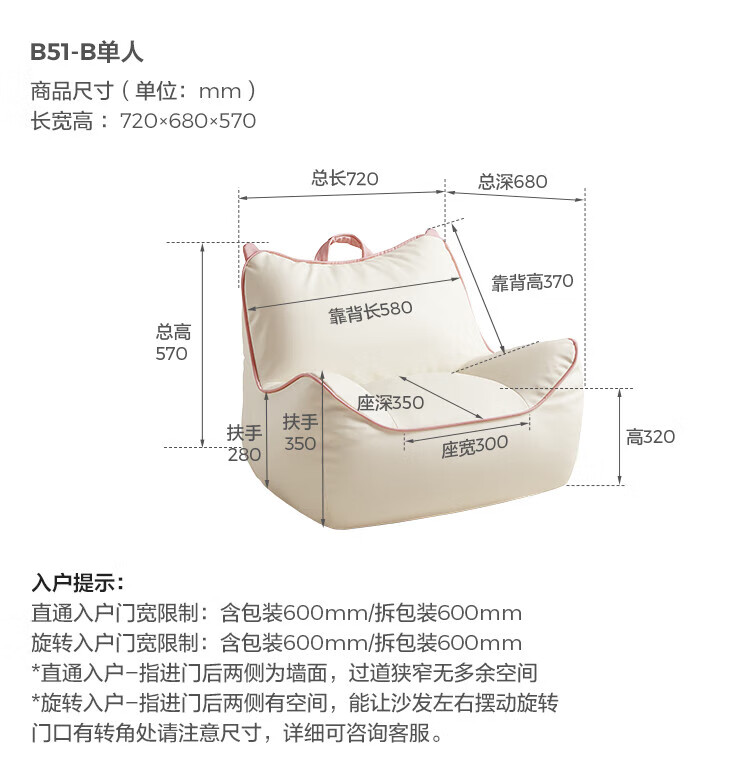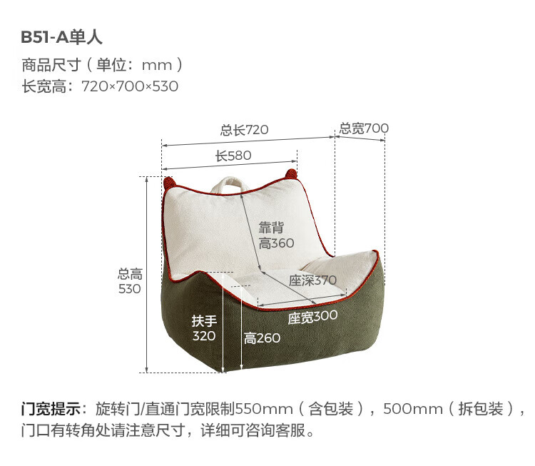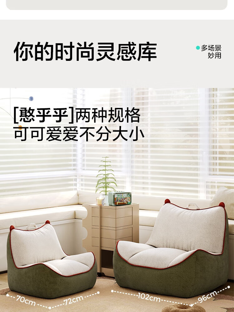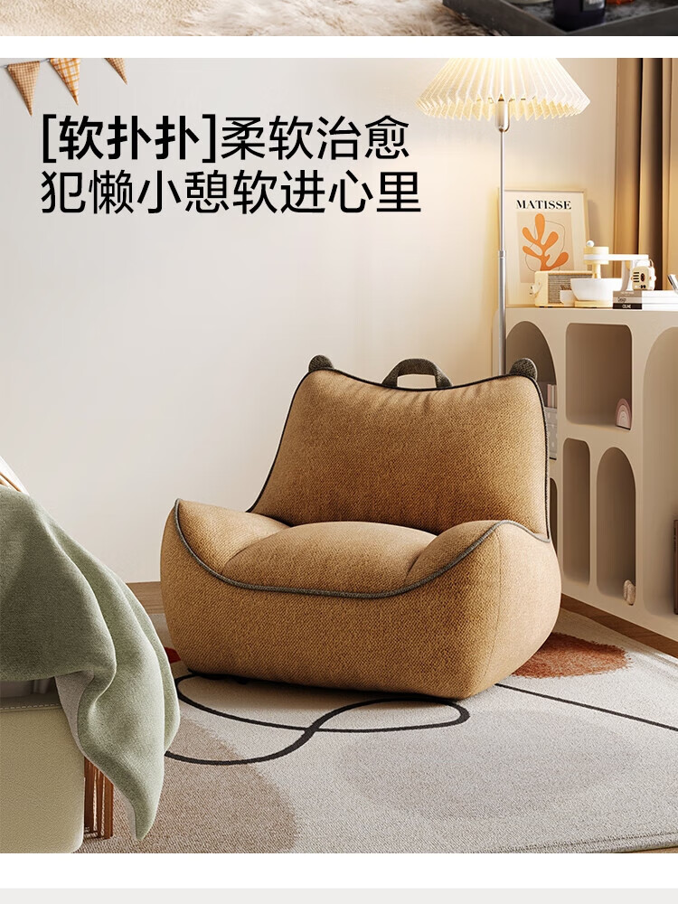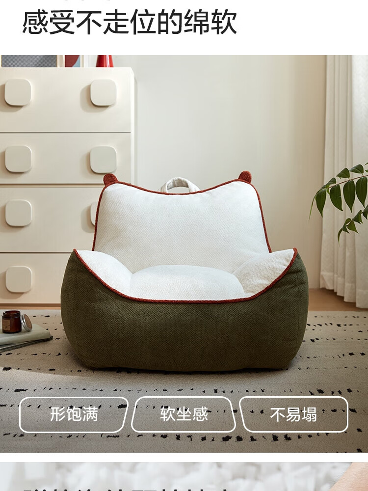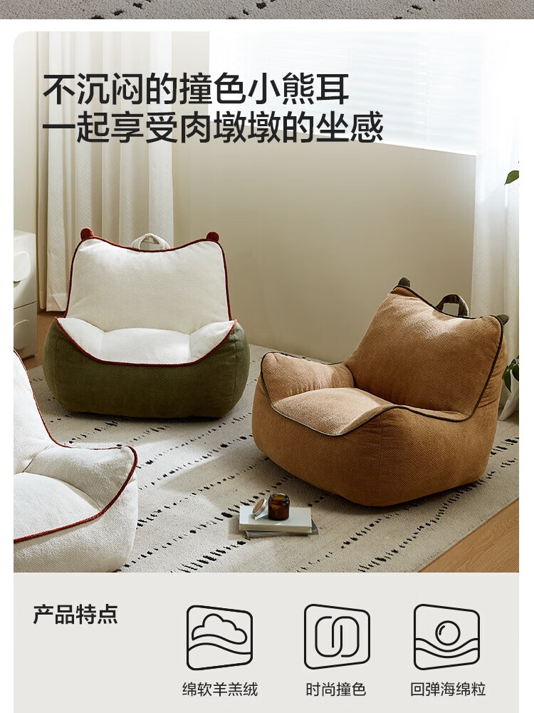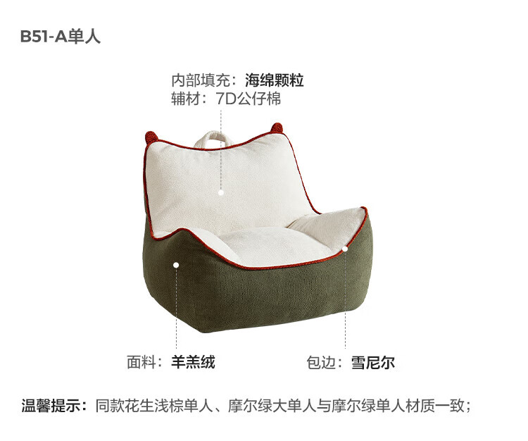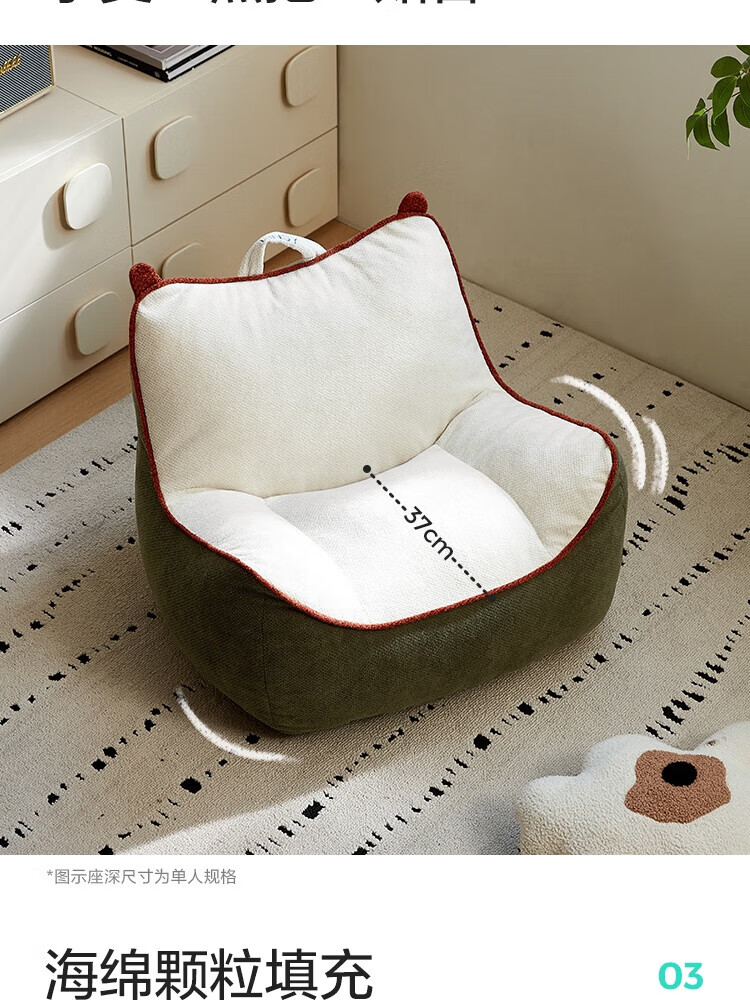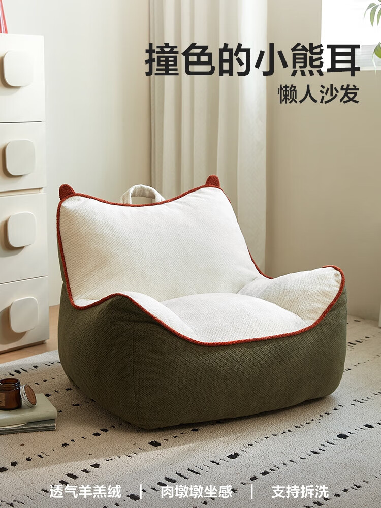 LINSY KIDS林氏家居单人沙发椅新休闲可拆卸小豆袋懒人沙发卧室客厅阳台B51 羊羔绒|可拆洗|0.72米|摩尔绿-A