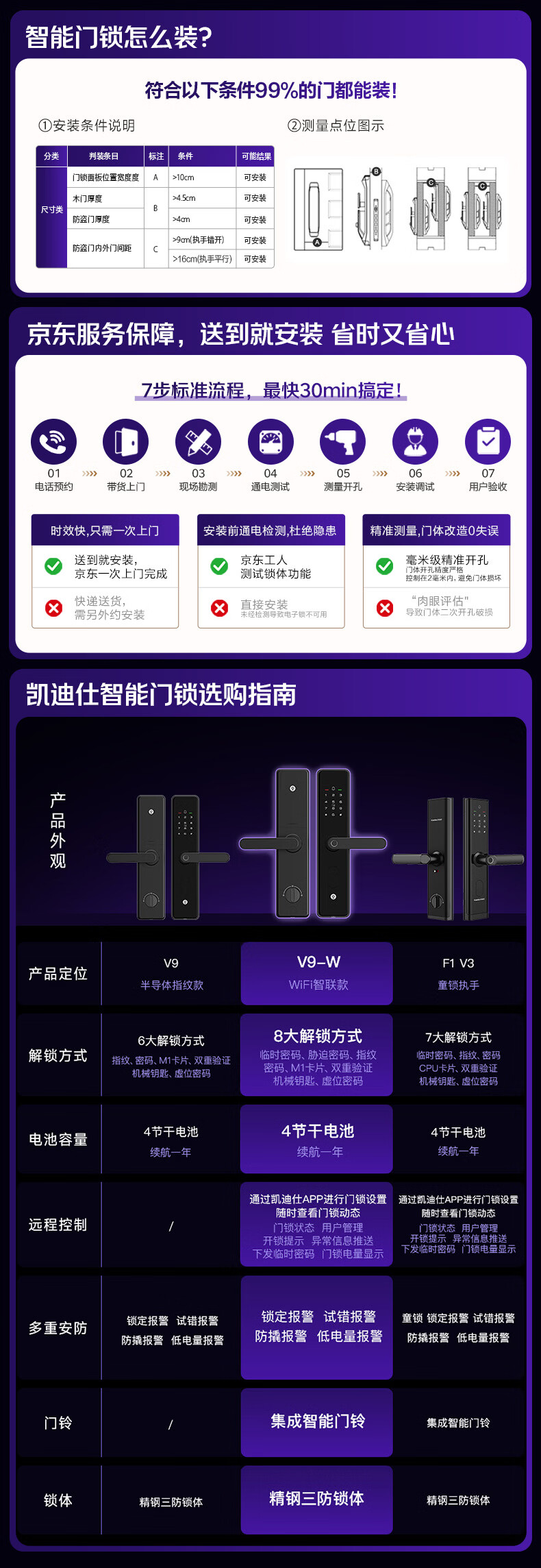 凯迪仕(KAADAS)智能门锁 指纹识别 防盗门锁密码锁 入户门电子智能锁 V9-W