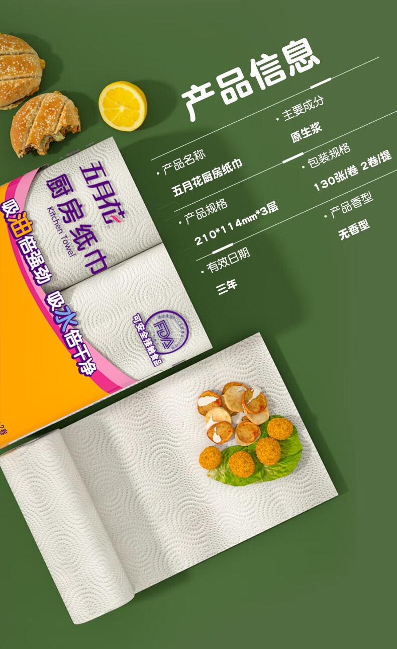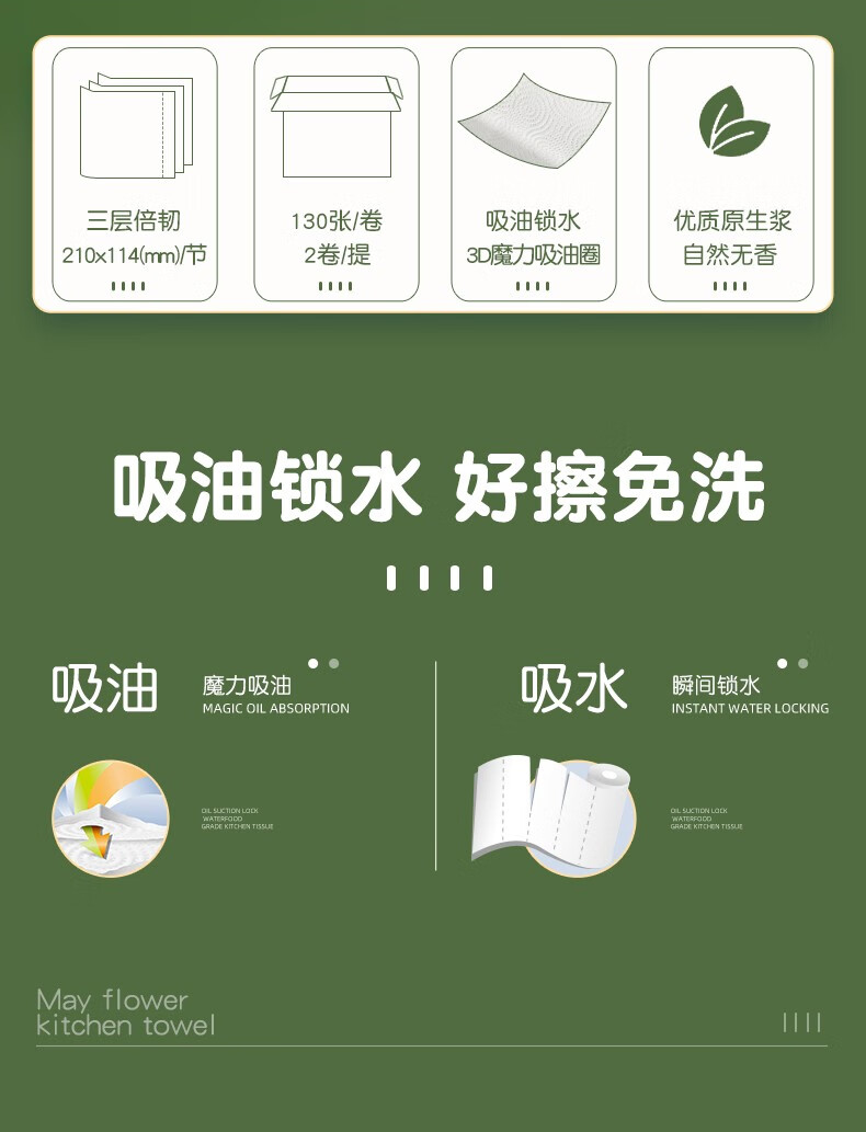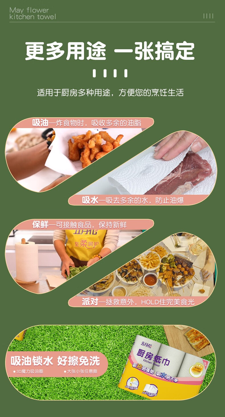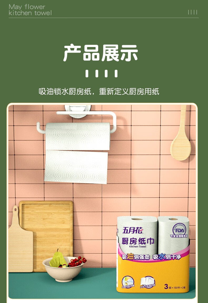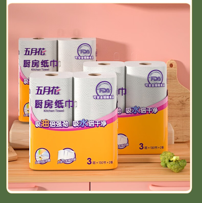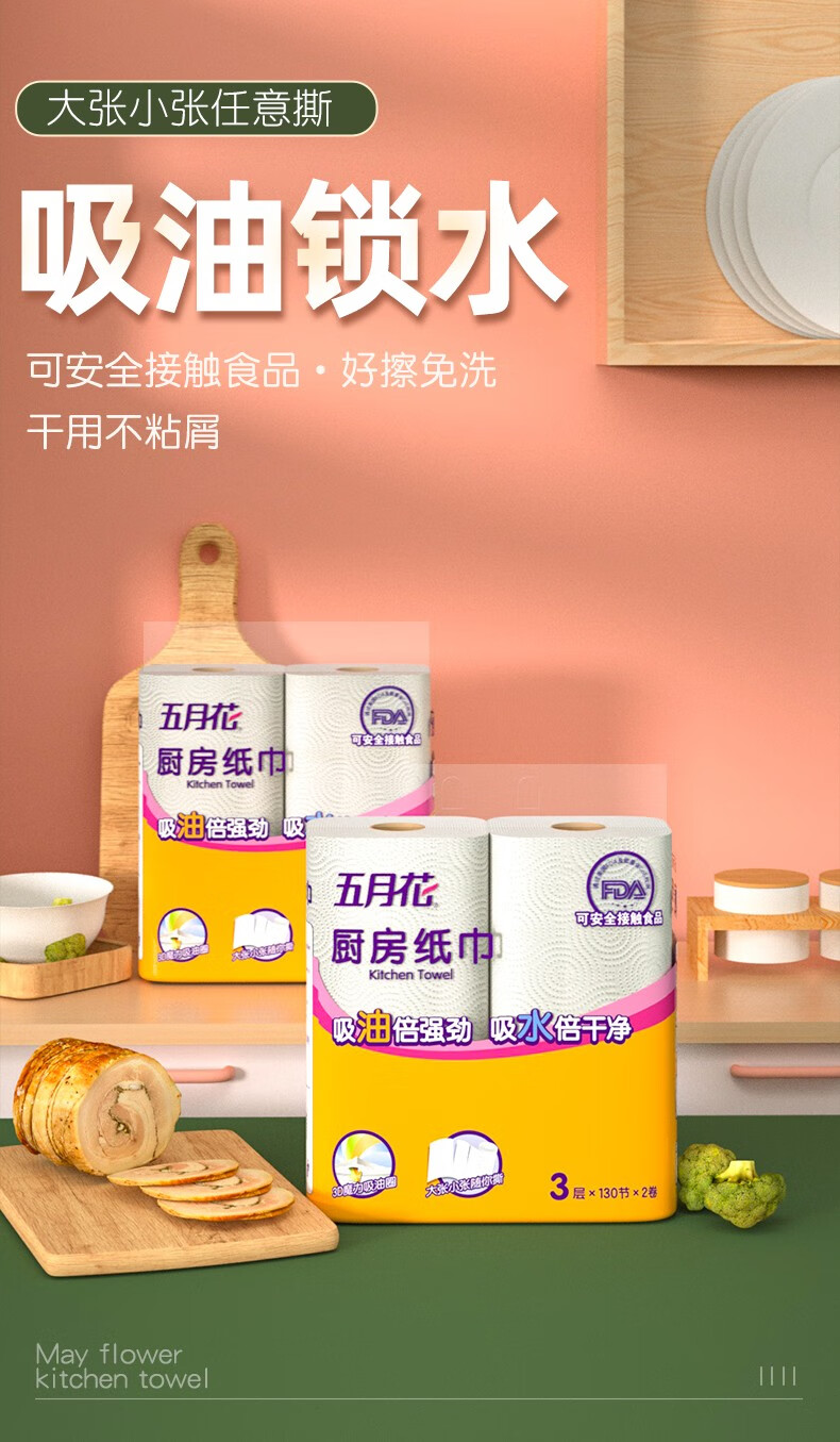 五月花(May Flower)厨房用纸厨房纸巾卫生纸吸油吸水纸擦手纸厨房卷纸3层130节 3层 120节*3卷