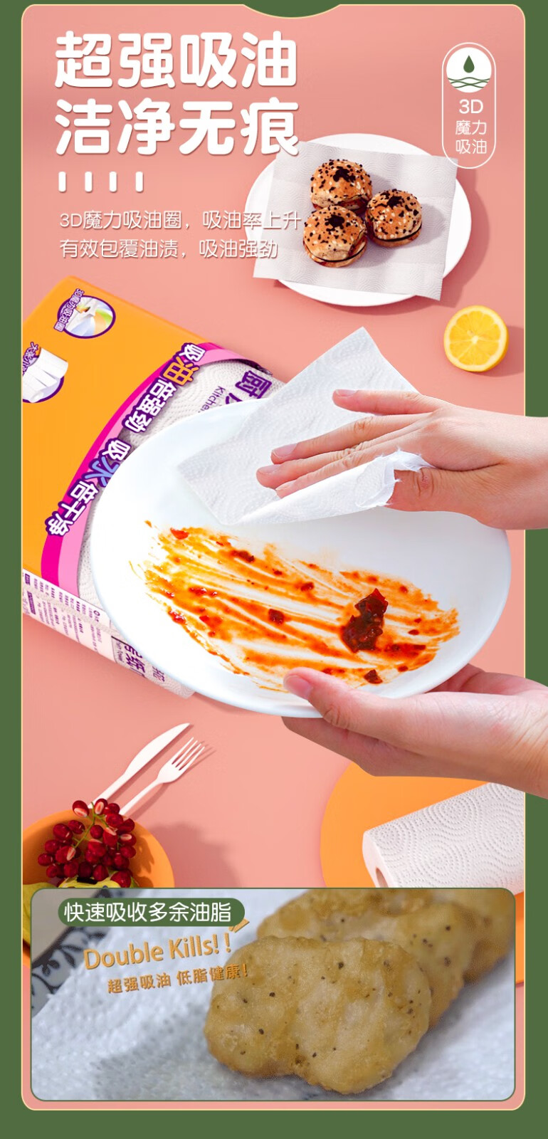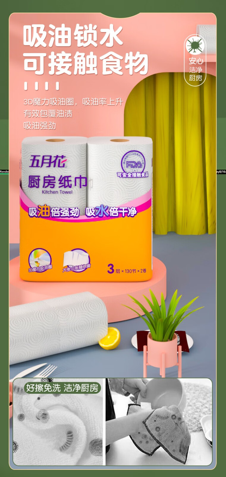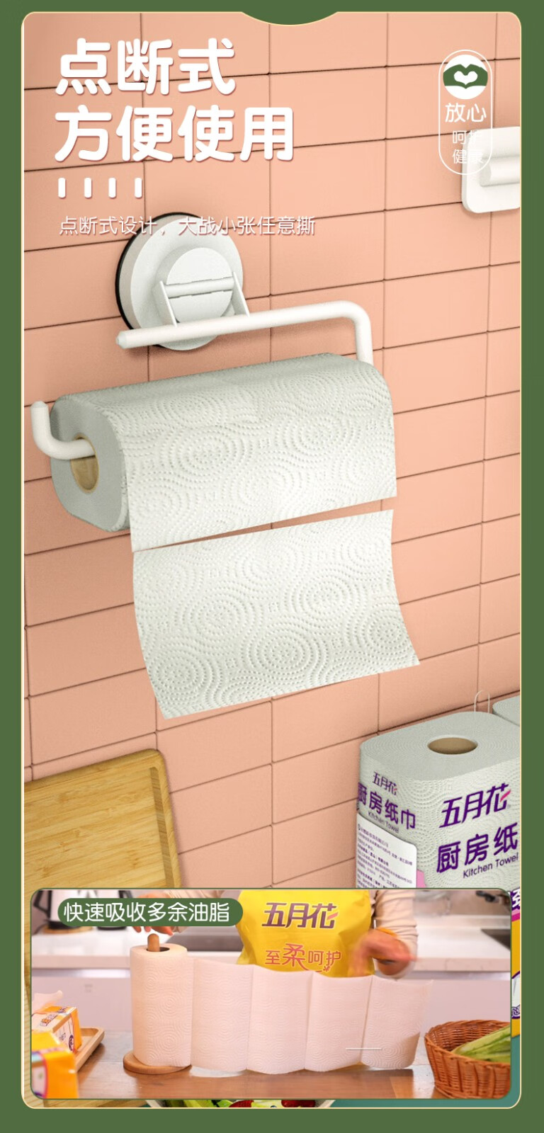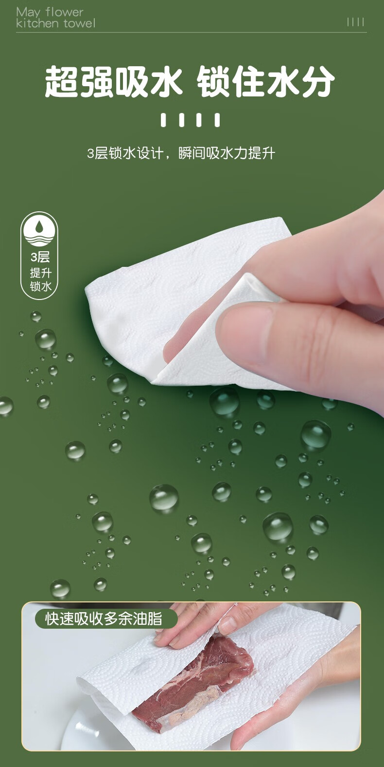 五月花(May Flower)厨房用纸厨房纸巾卫生纸吸油吸水纸擦手纸厨房卷纸3层130节 3层 120节*3卷