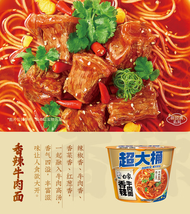白象方便面 超大桶香辣牛肉面139g*12桶 大面饼 泡面桶面 整箱