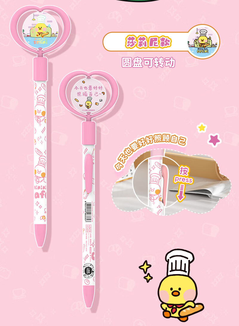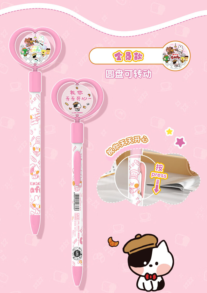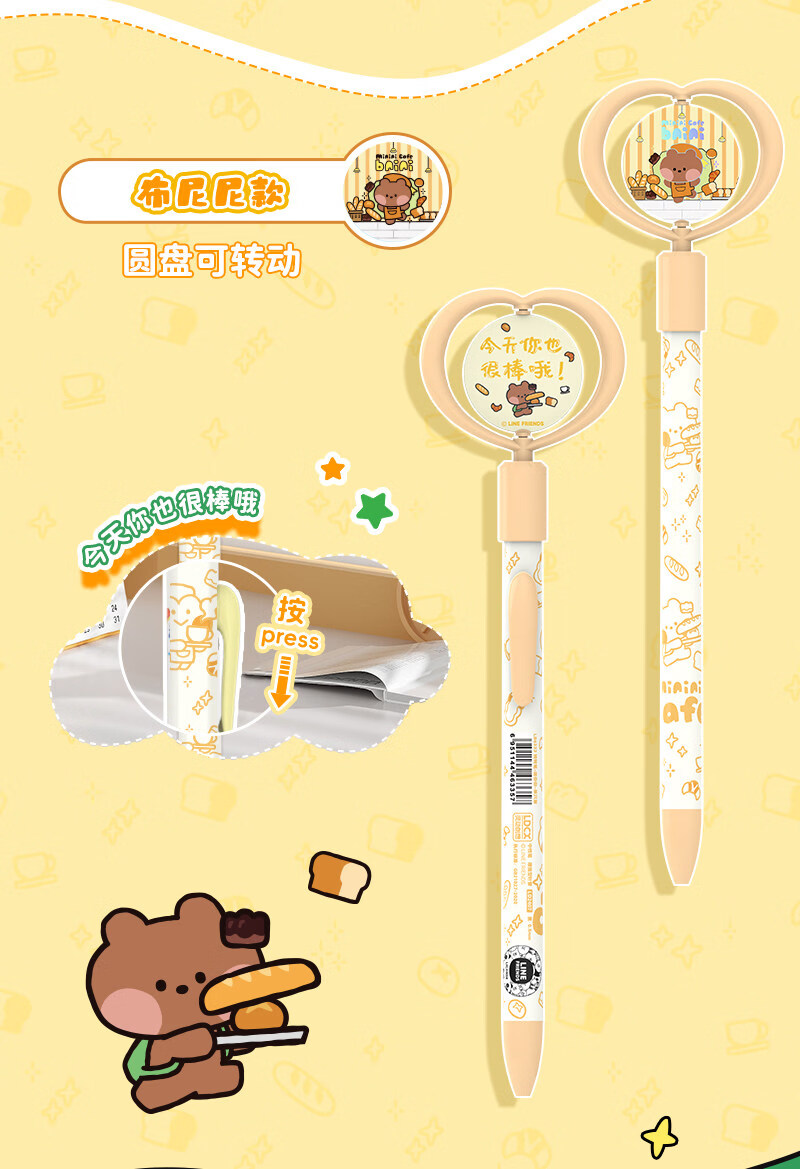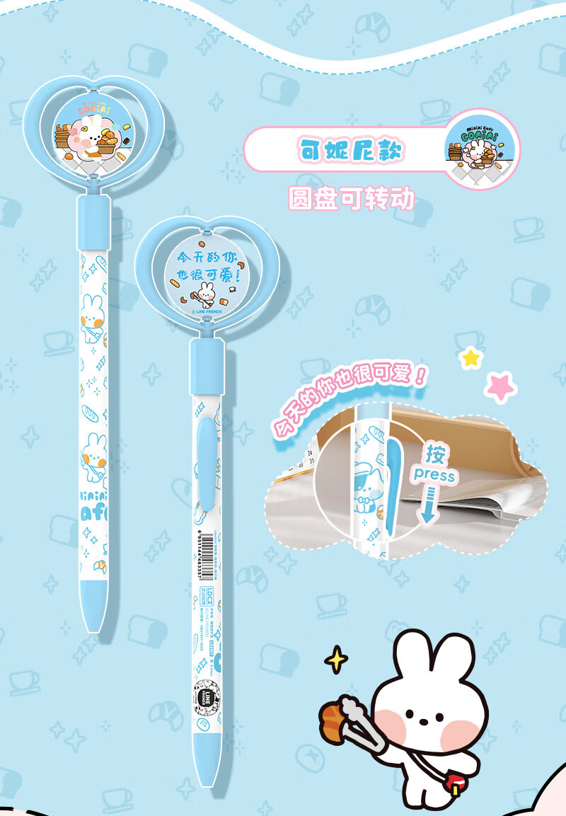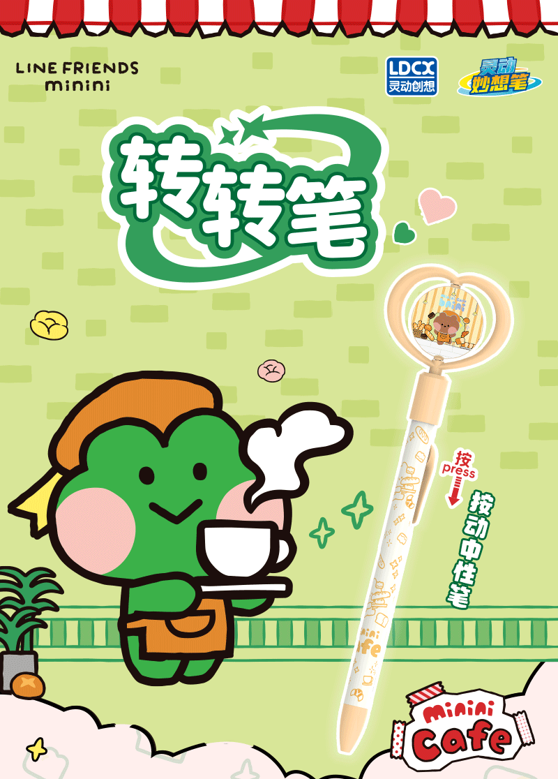 灵动创想(LDCX)迷你转转笔按动中性笔LINE FRIENDSminini联名高颜值黑色0.5mm签字笔小青蛙兔子女生学生刷题文具 转转笔-蛙里尼款