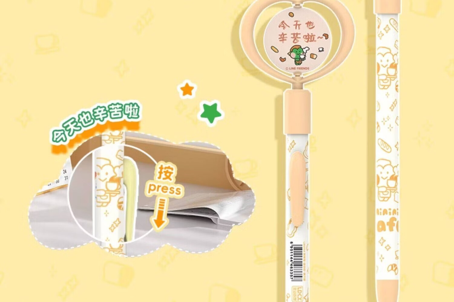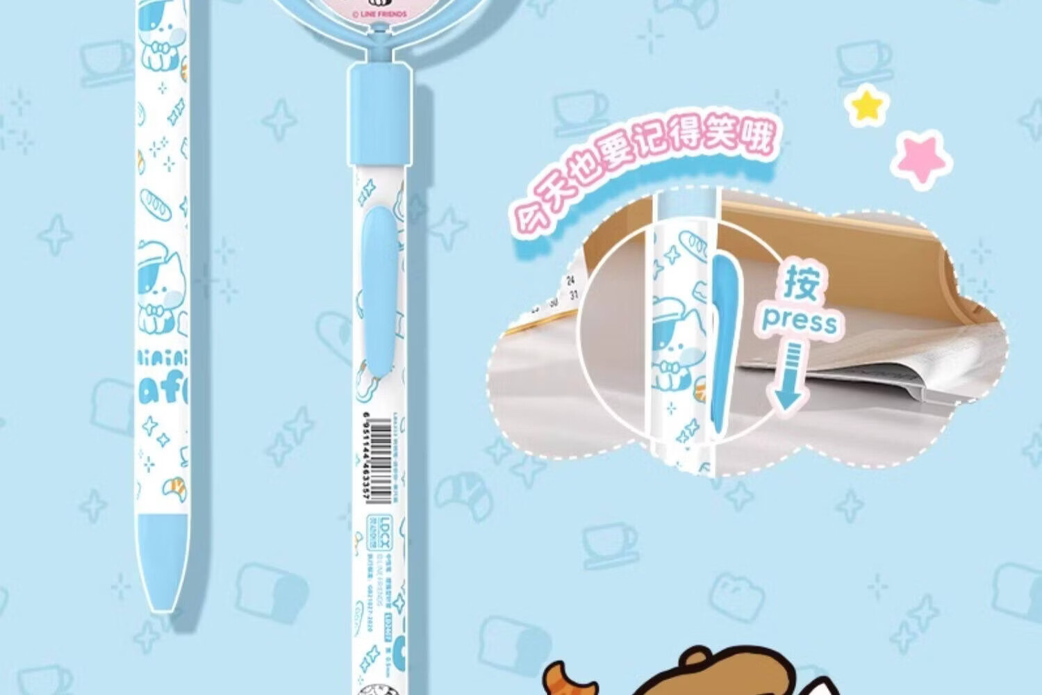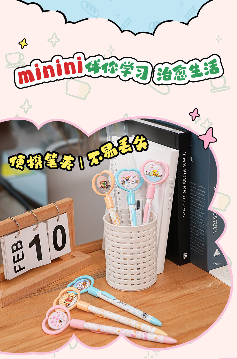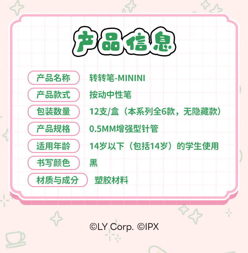 灵动创想(LDCX)迷你转转笔按动中性笔LINE FRIENDSminini联名高颜值黑色0.5mm签字笔小青蛙兔子女生学生刷题文具 转转笔-蛙里尼款