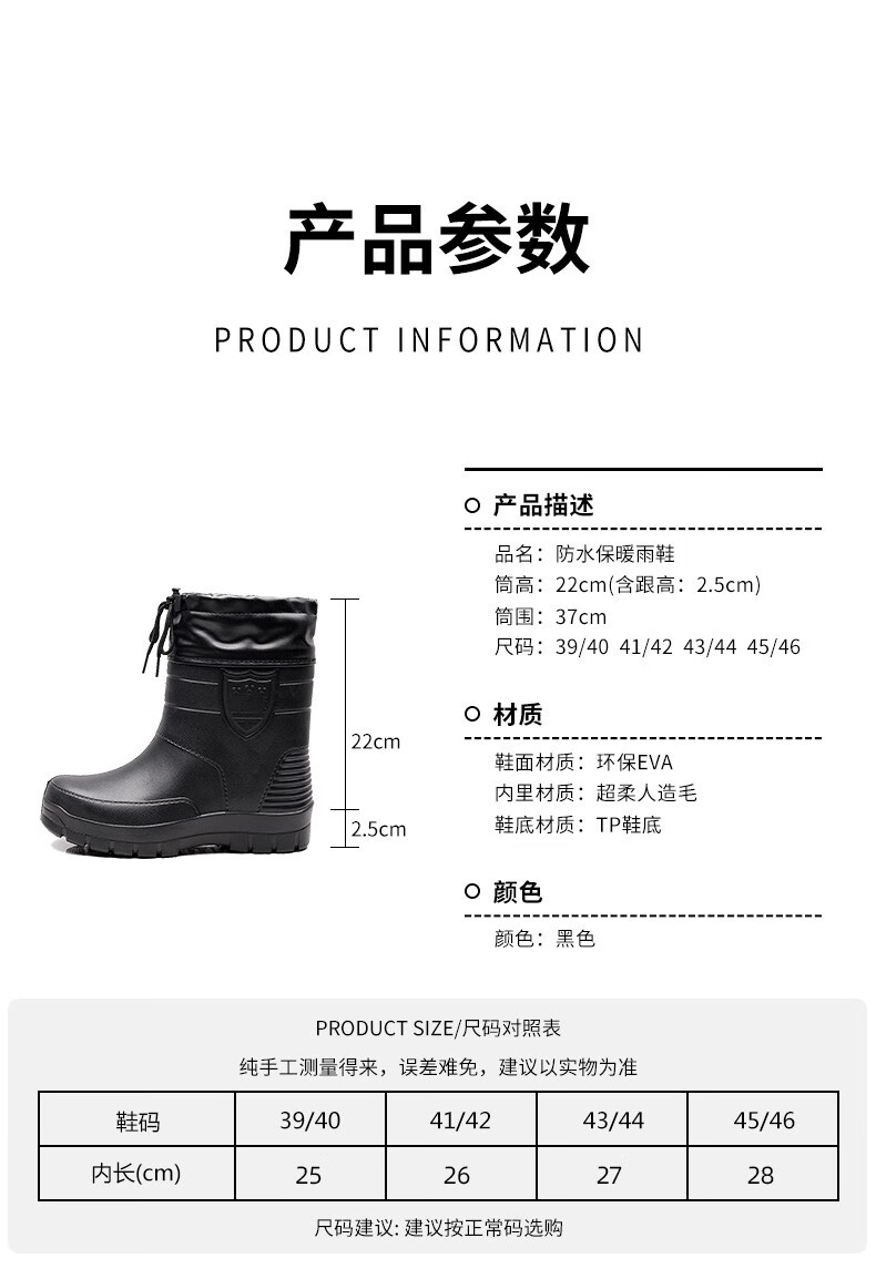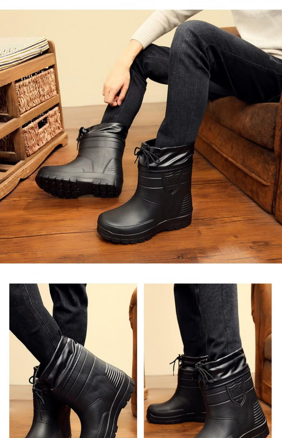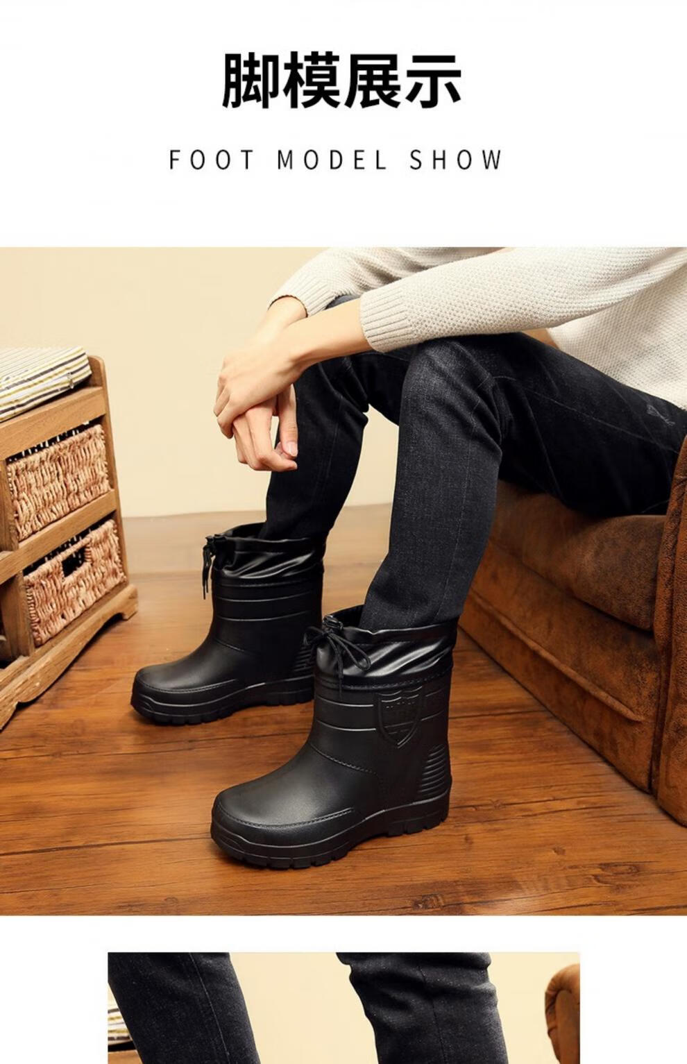 稻草人(MEXICAN)东北冬季加绒雨鞋男保暖一体防水防滑水鞋钓鱼泡沫加棉雨靴男冬款 【冬天加绒】中筒 39